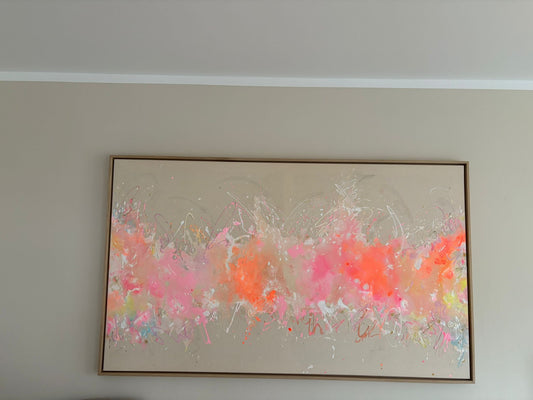 Danke für das Vorbeibringen von meinem Bild! Es passt super, an die vorgesehene Stelle. Dein gemaltes Bild sieht absolut fabelhaft aus. Die Leichtigkeit, die das Bild selbst ausstrahlt, ist es so schön wärmend und gleichzeitig übertragend.