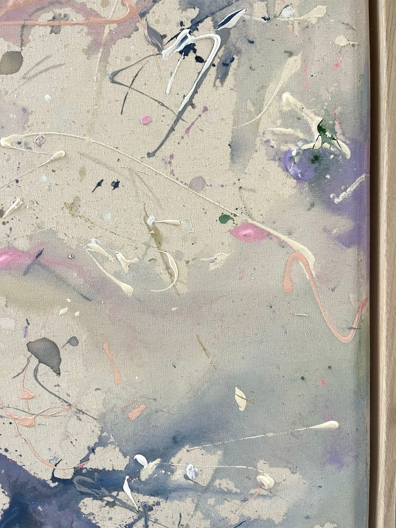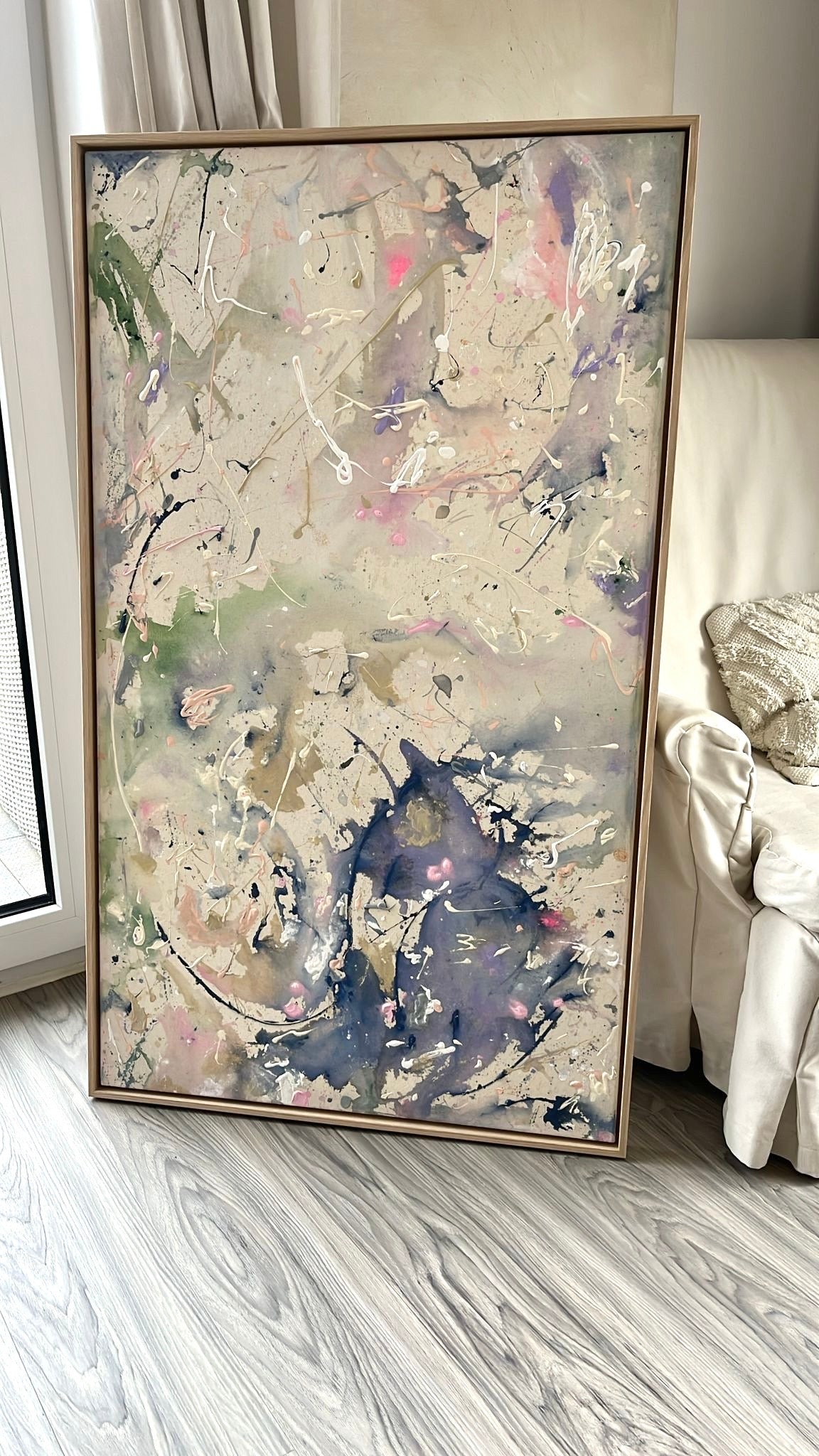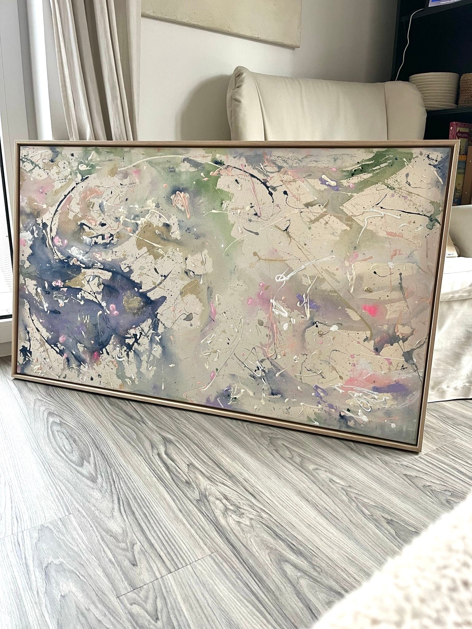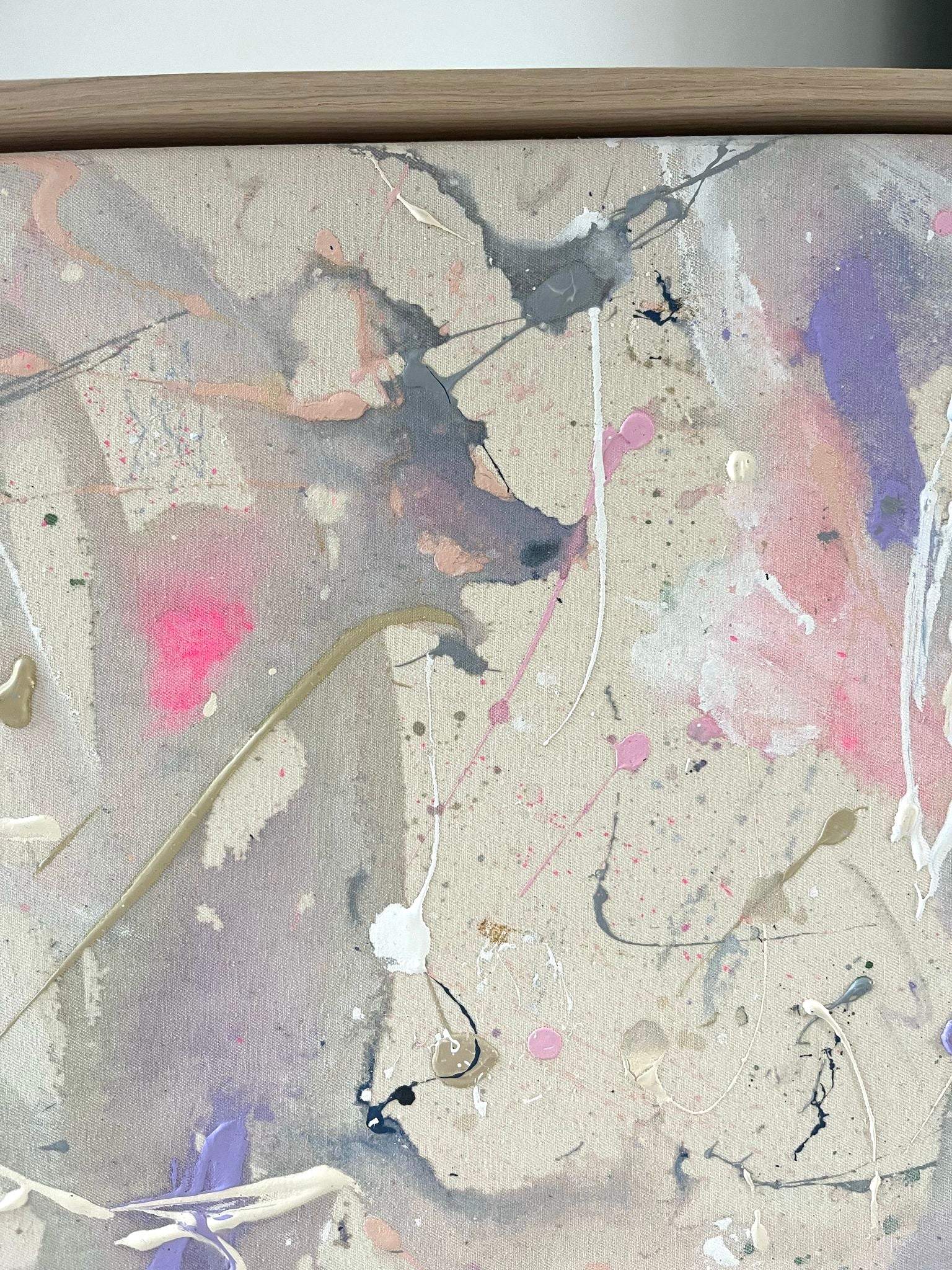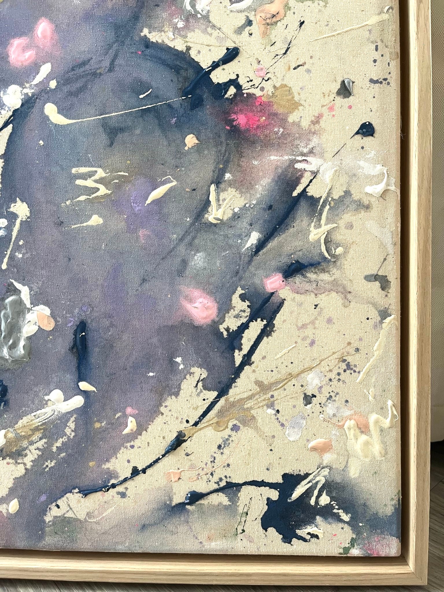 Hand-painted acrylic painting on canvas, including shadow gap frame in oak wood