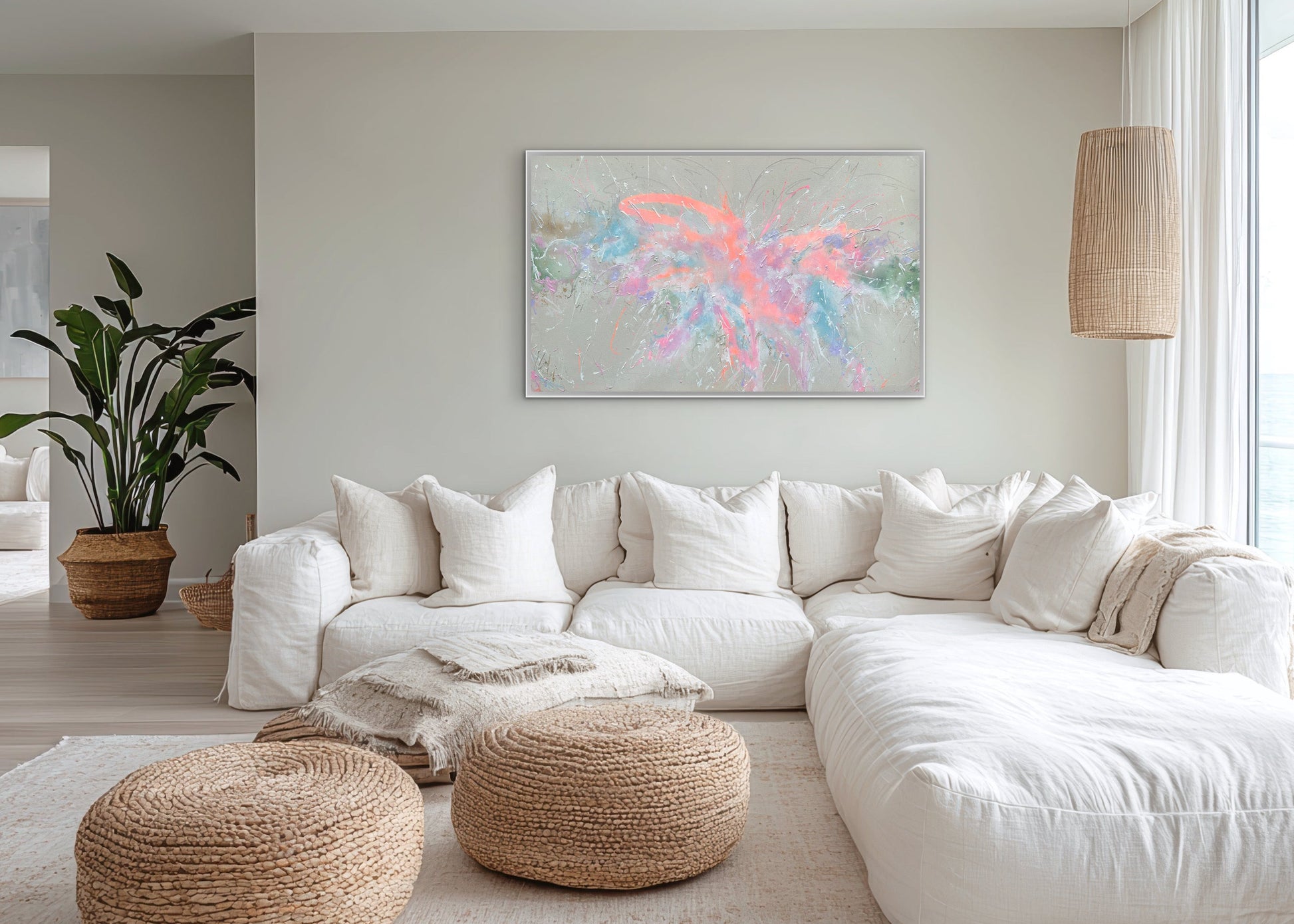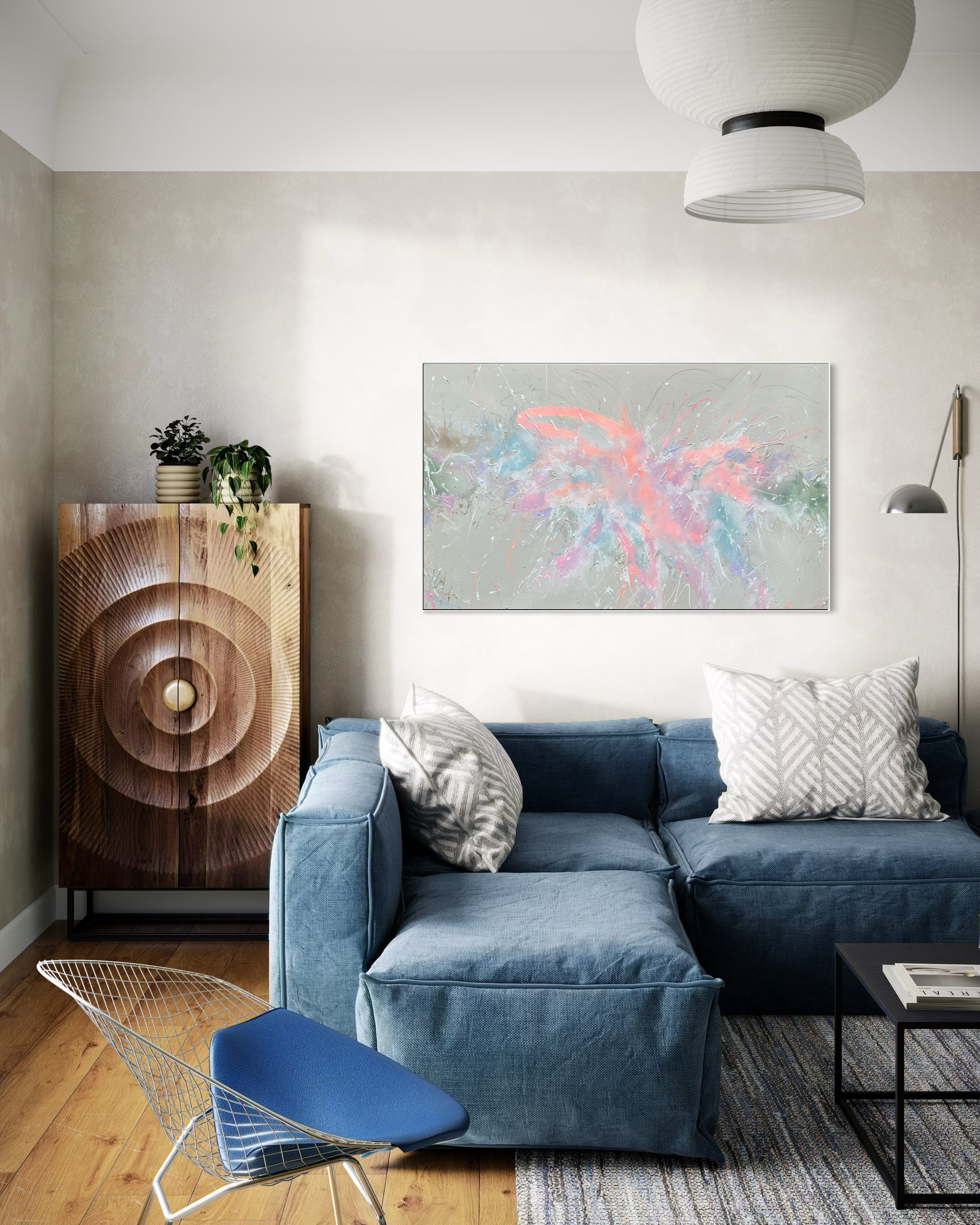 Jetzt gibt es nur noch zu sagen "WIR SIND BEGEISTERT"!!!! Das Werk wirkt im Original noch viel schöner und wir freuen uns jeden Tag aufs Neue darüber. Es hat unser Wohnzimmer richtig aufgewertet. Somit sind wir sehr sehr happy!!!
