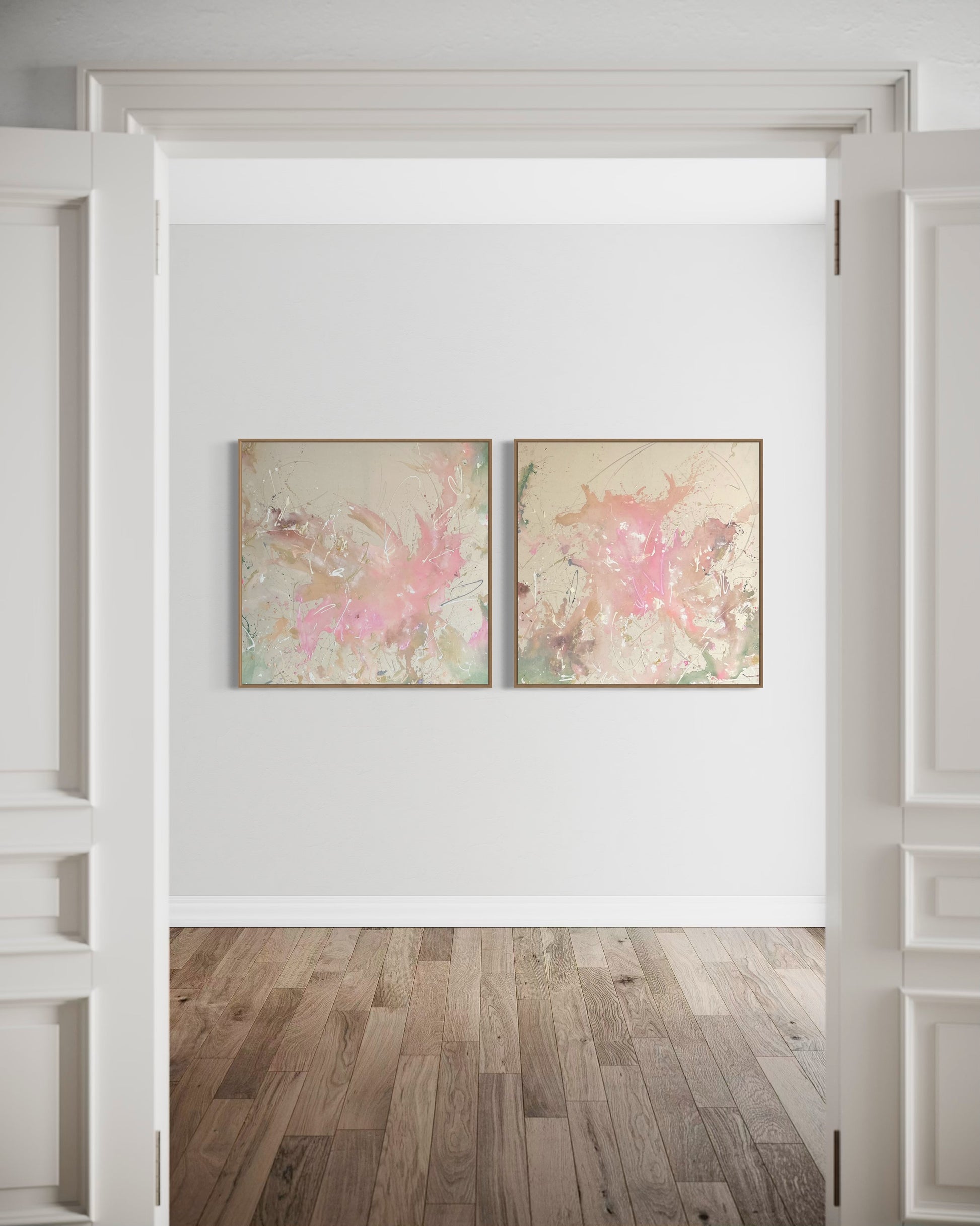 Hand-painted acrylic painting on canvas, including shadow gap frame in oak wood