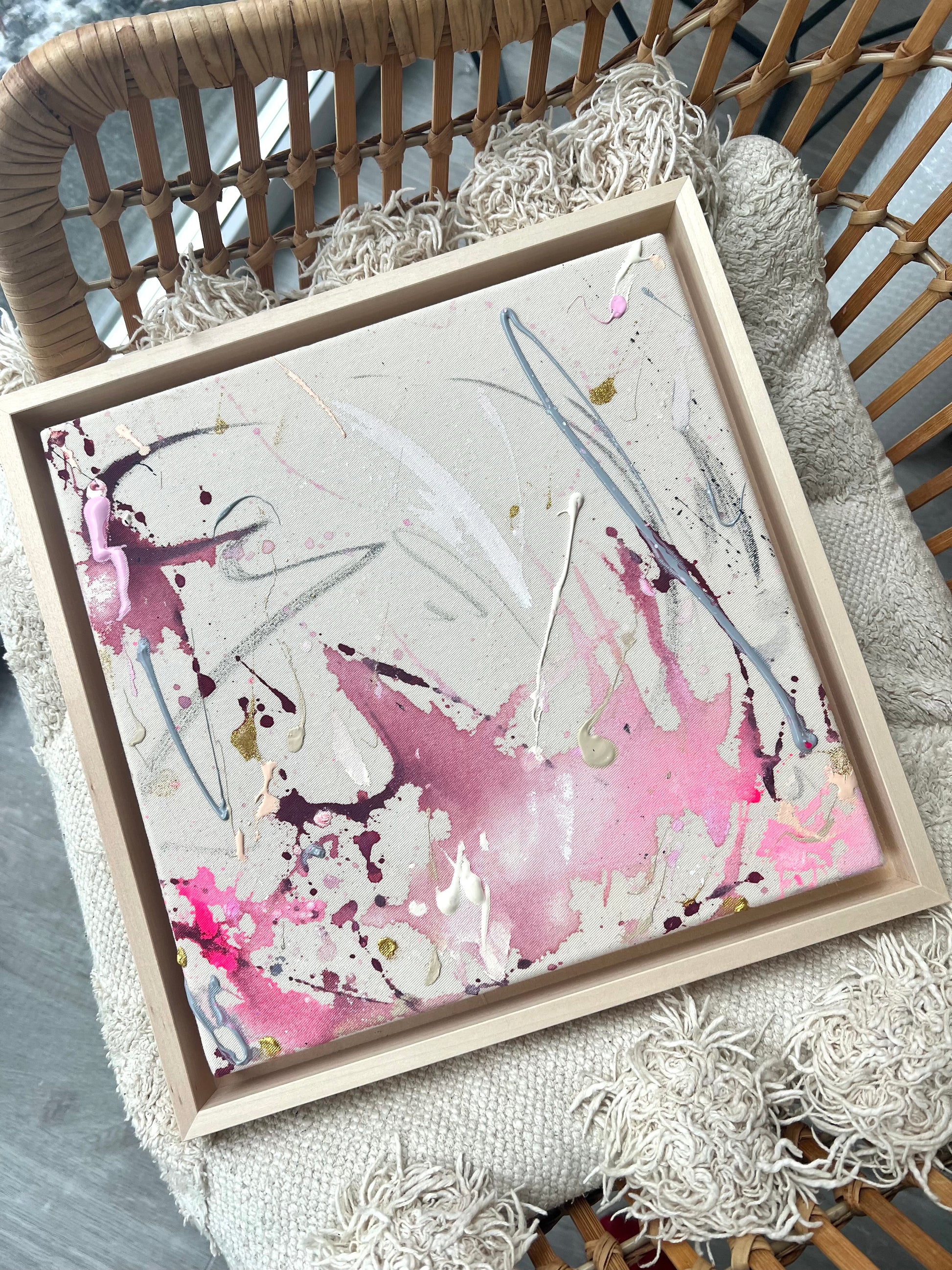 Hand-painted acrylic painting on canvas, including shadow gap frame in linden wood
