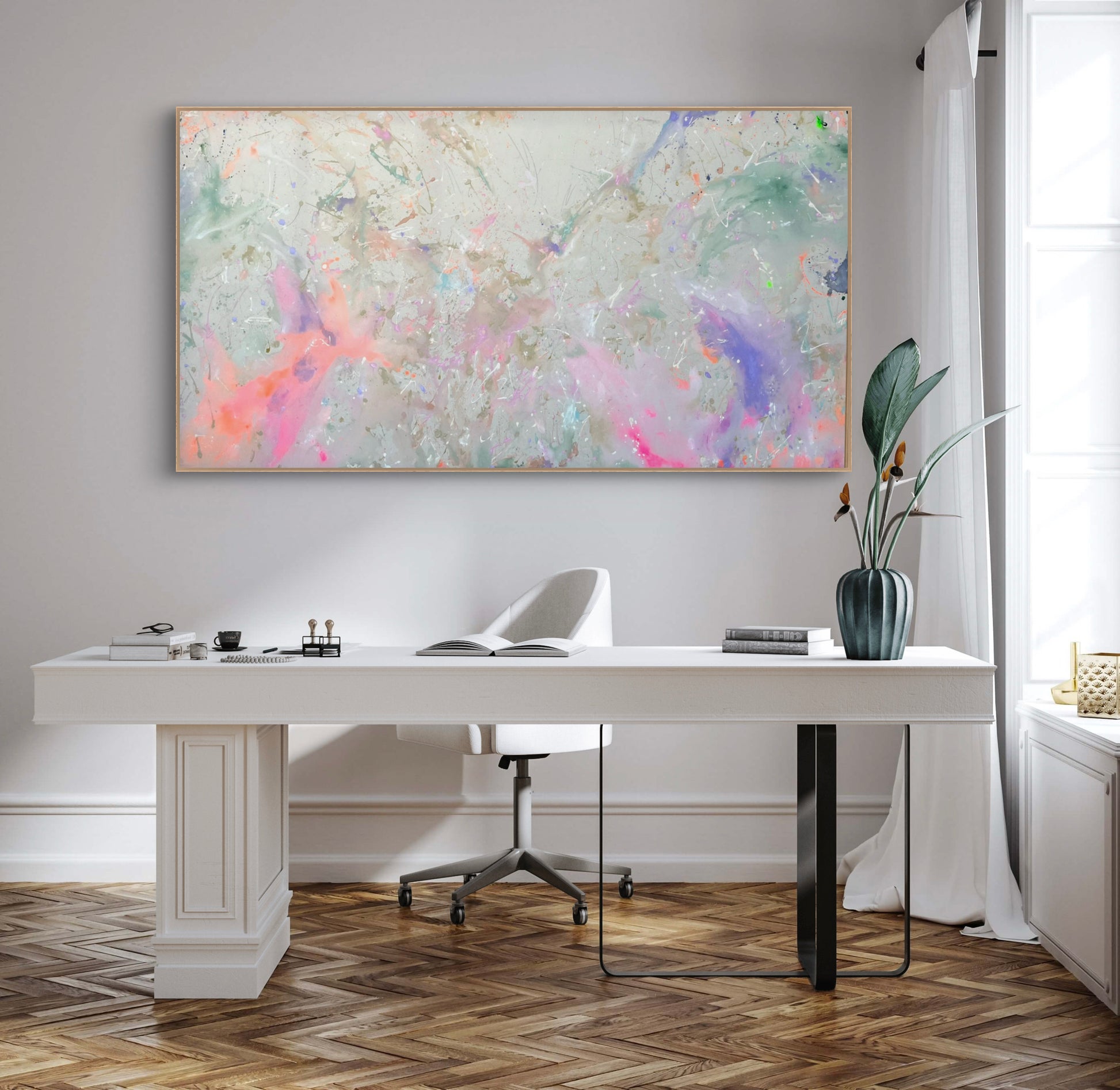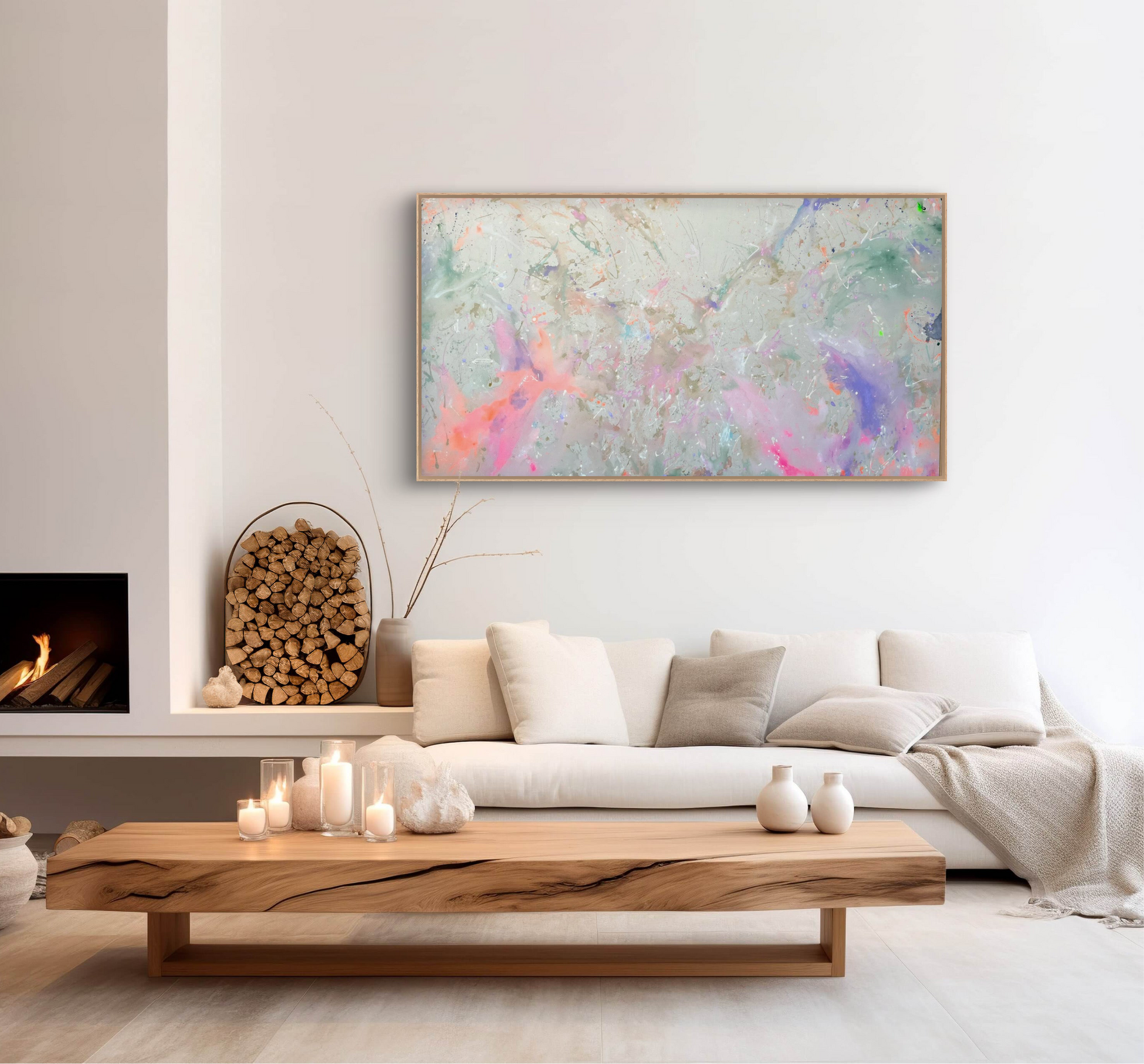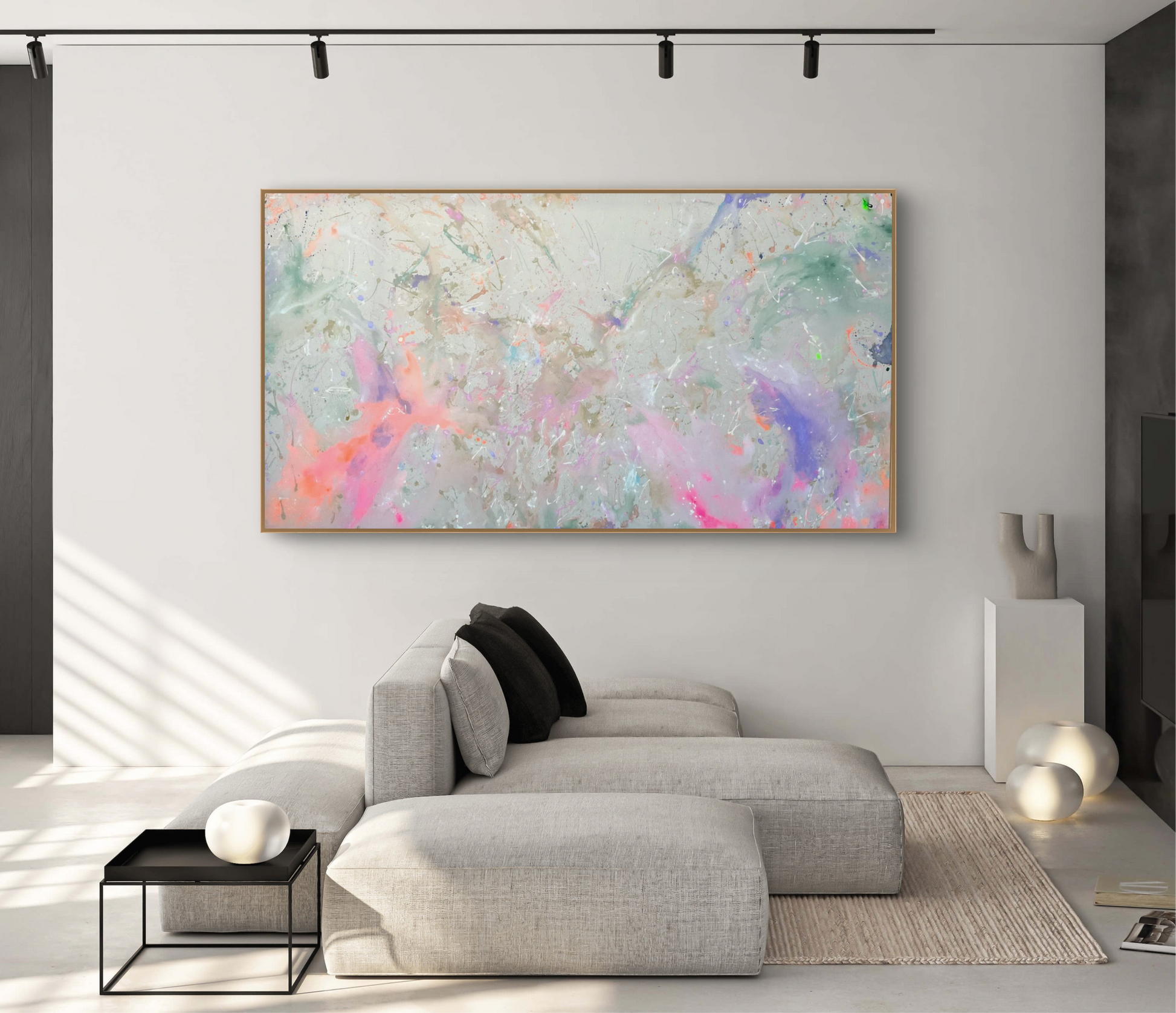 Hand-painted acrylic painting on canvas, including shadow gap frame in oak wood