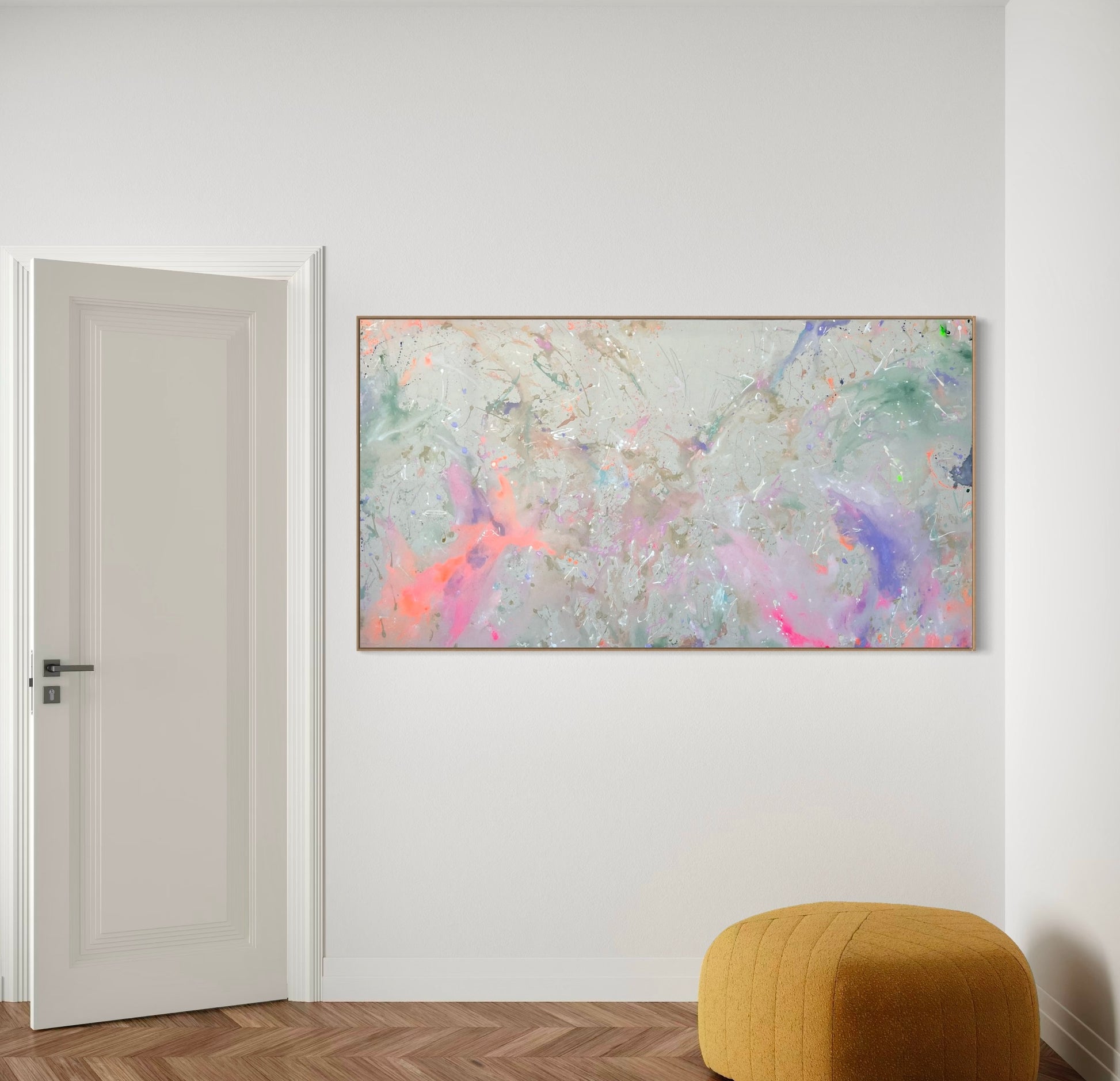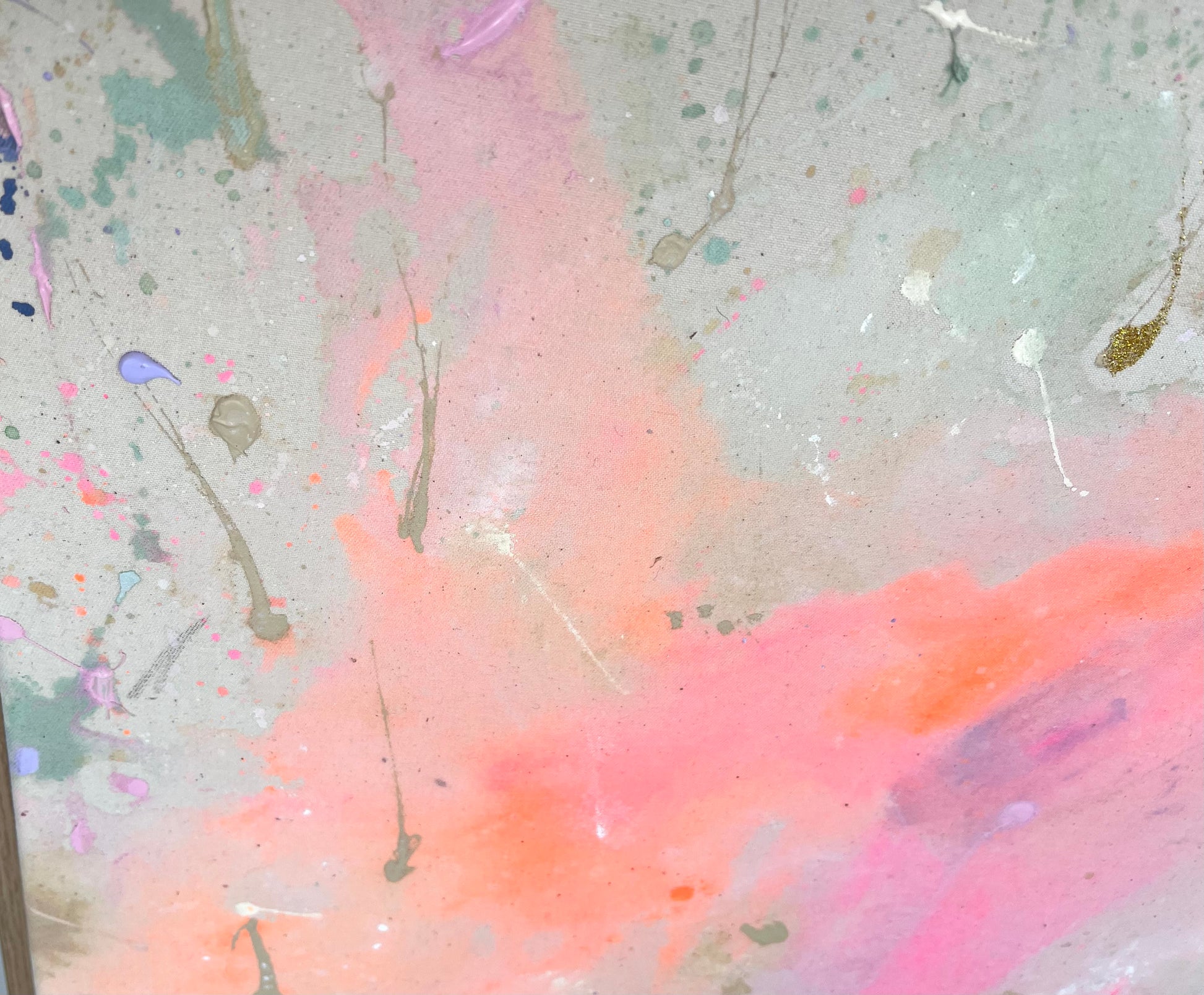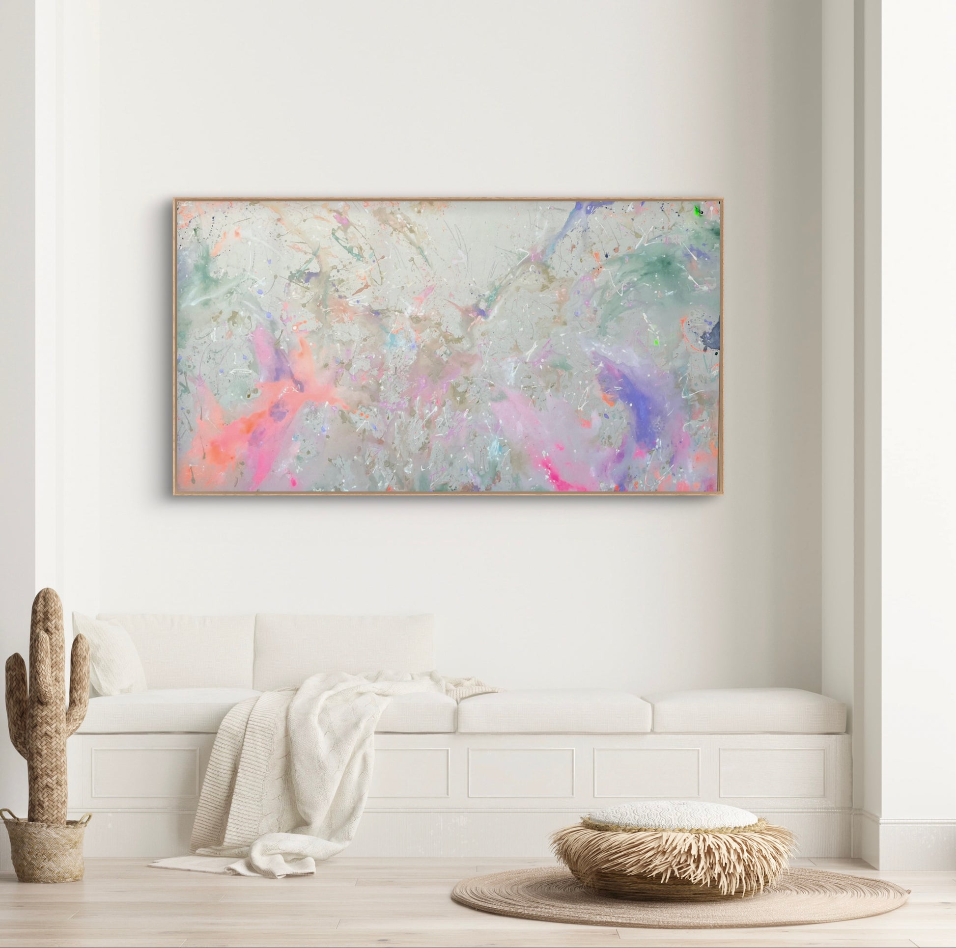 Hand-painted acrylic painting on canvas, including shadow gap frame in oak wood