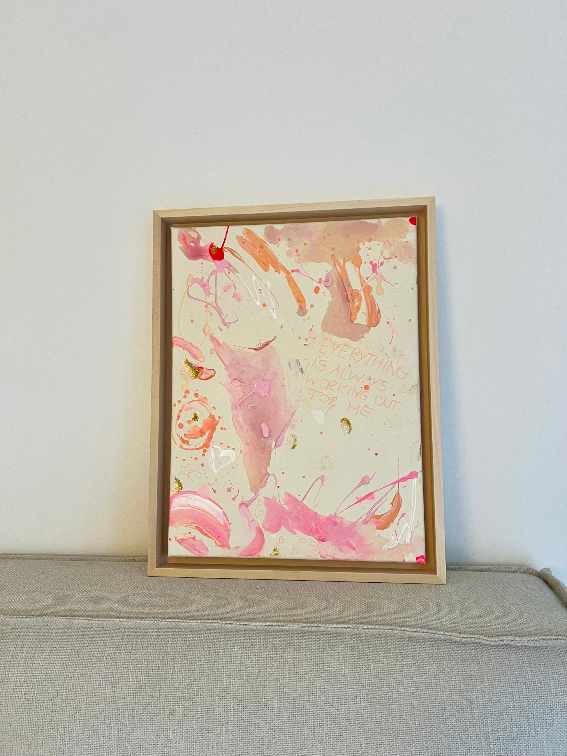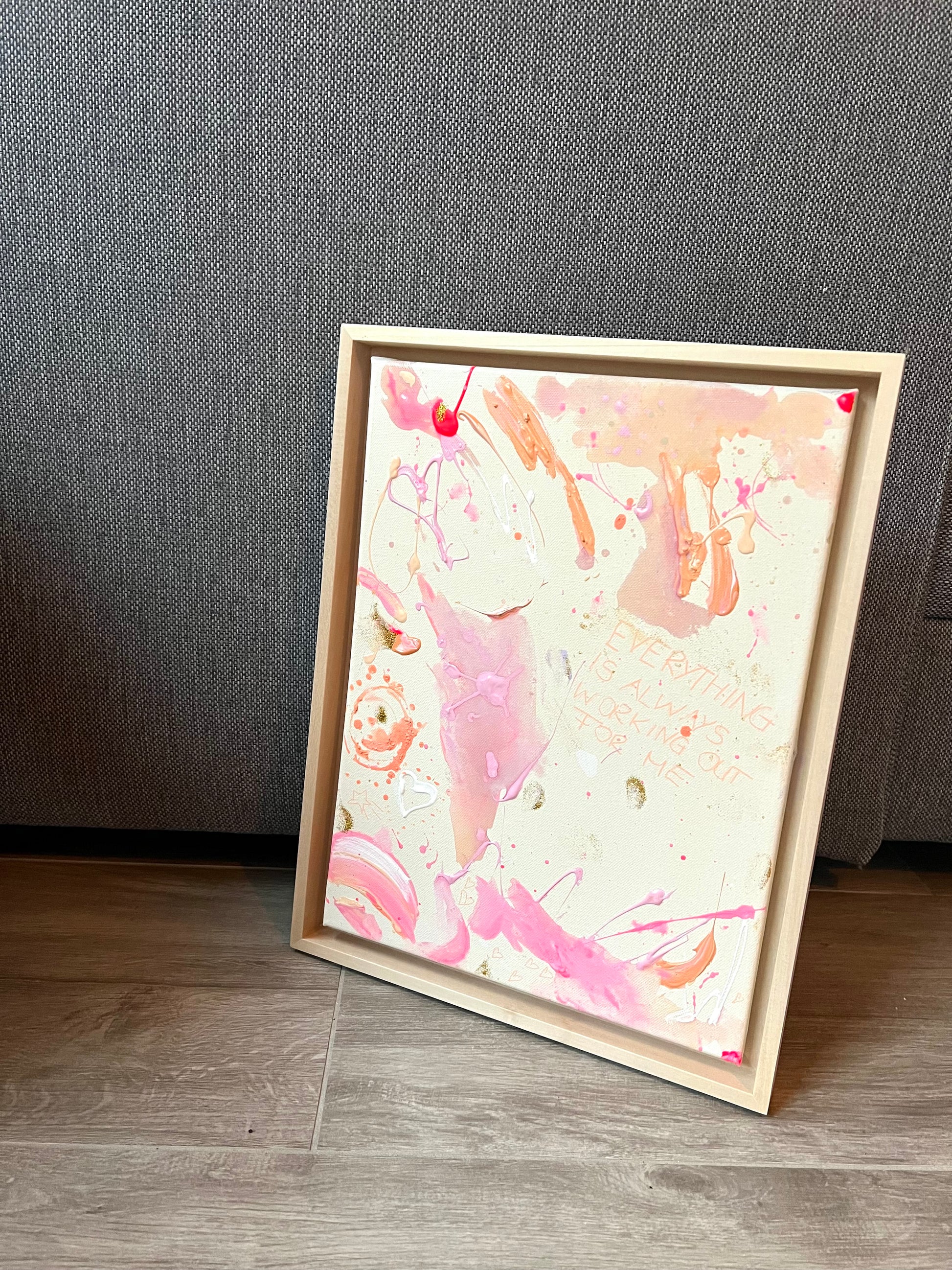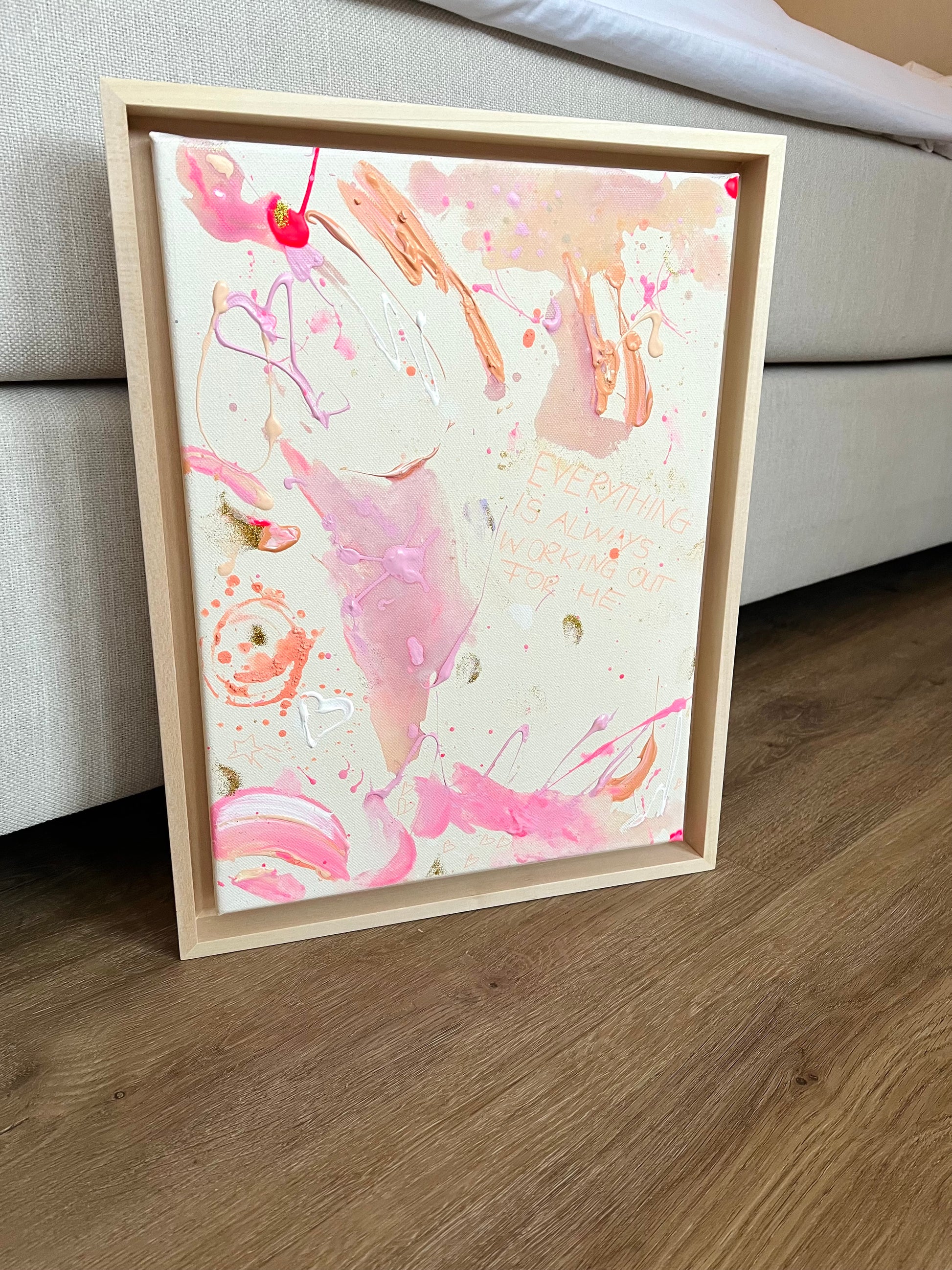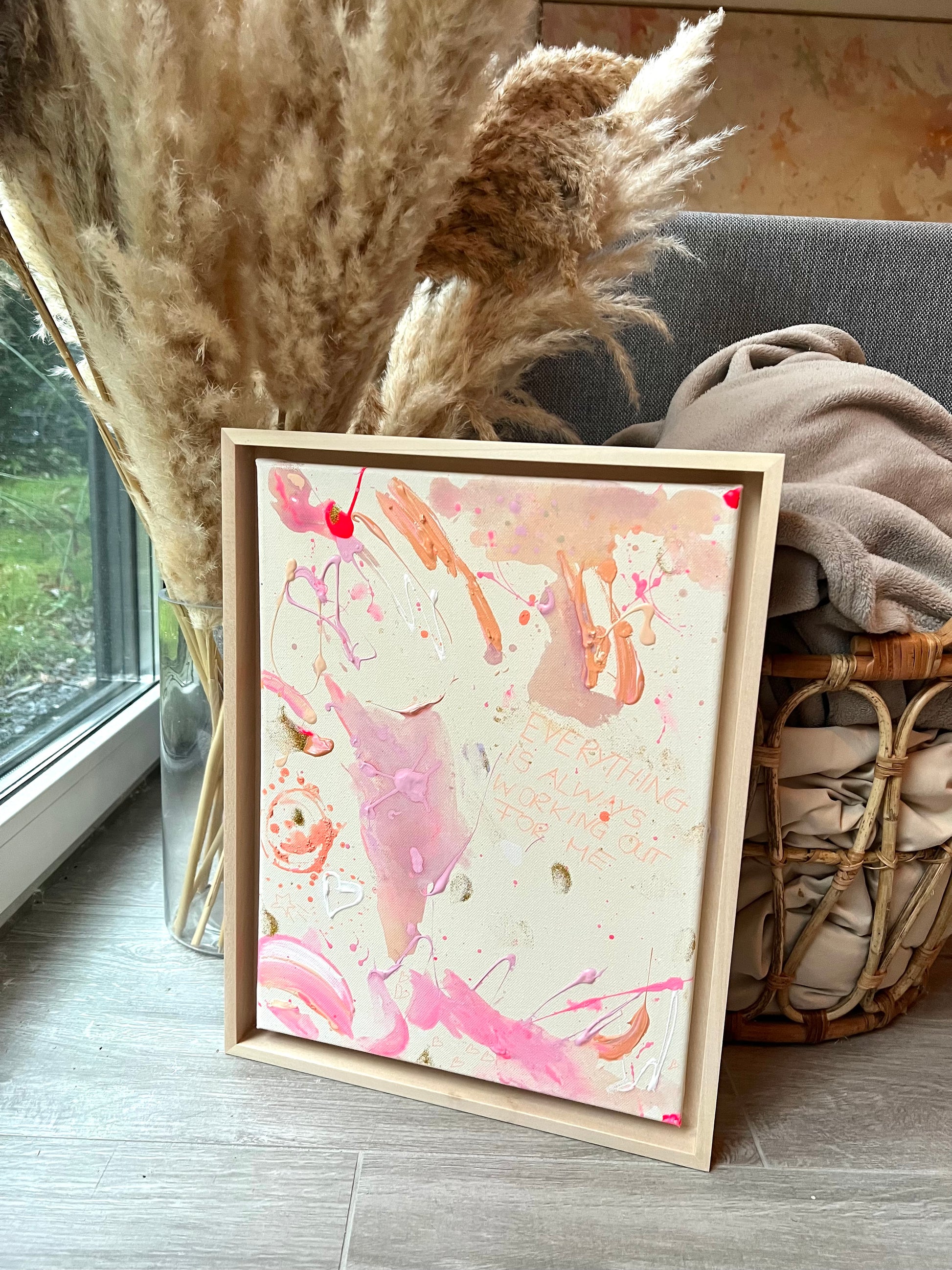 Hand-painted acrylic painting on canvas, including shadow gap frame in linden wood