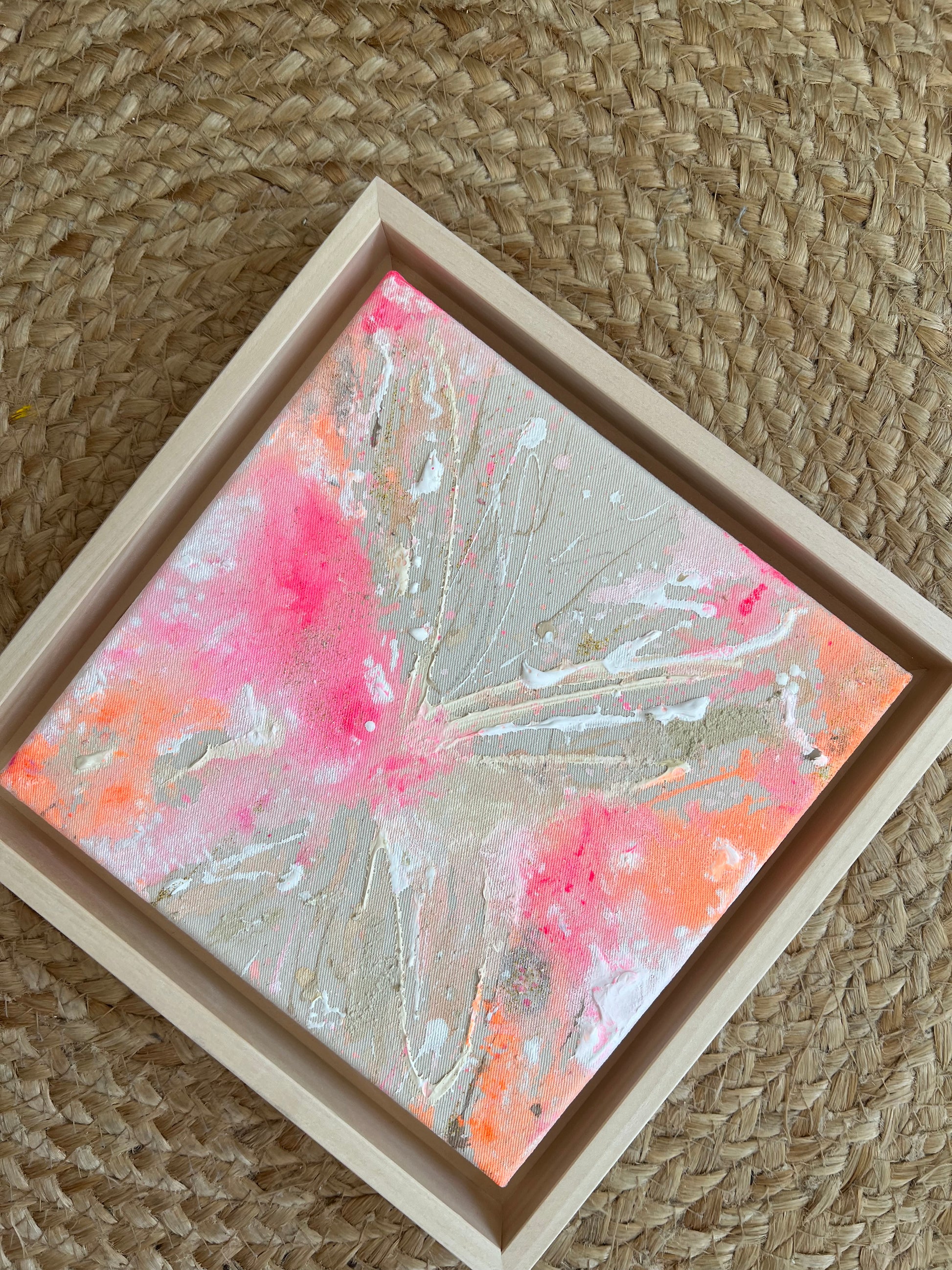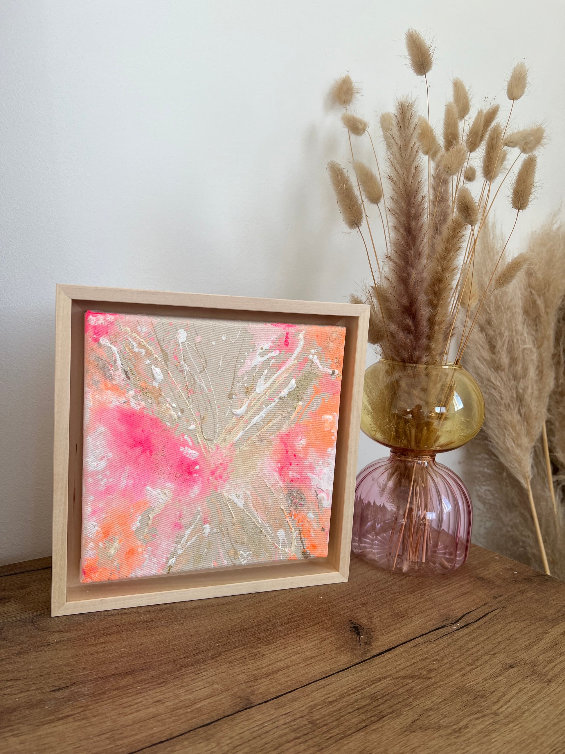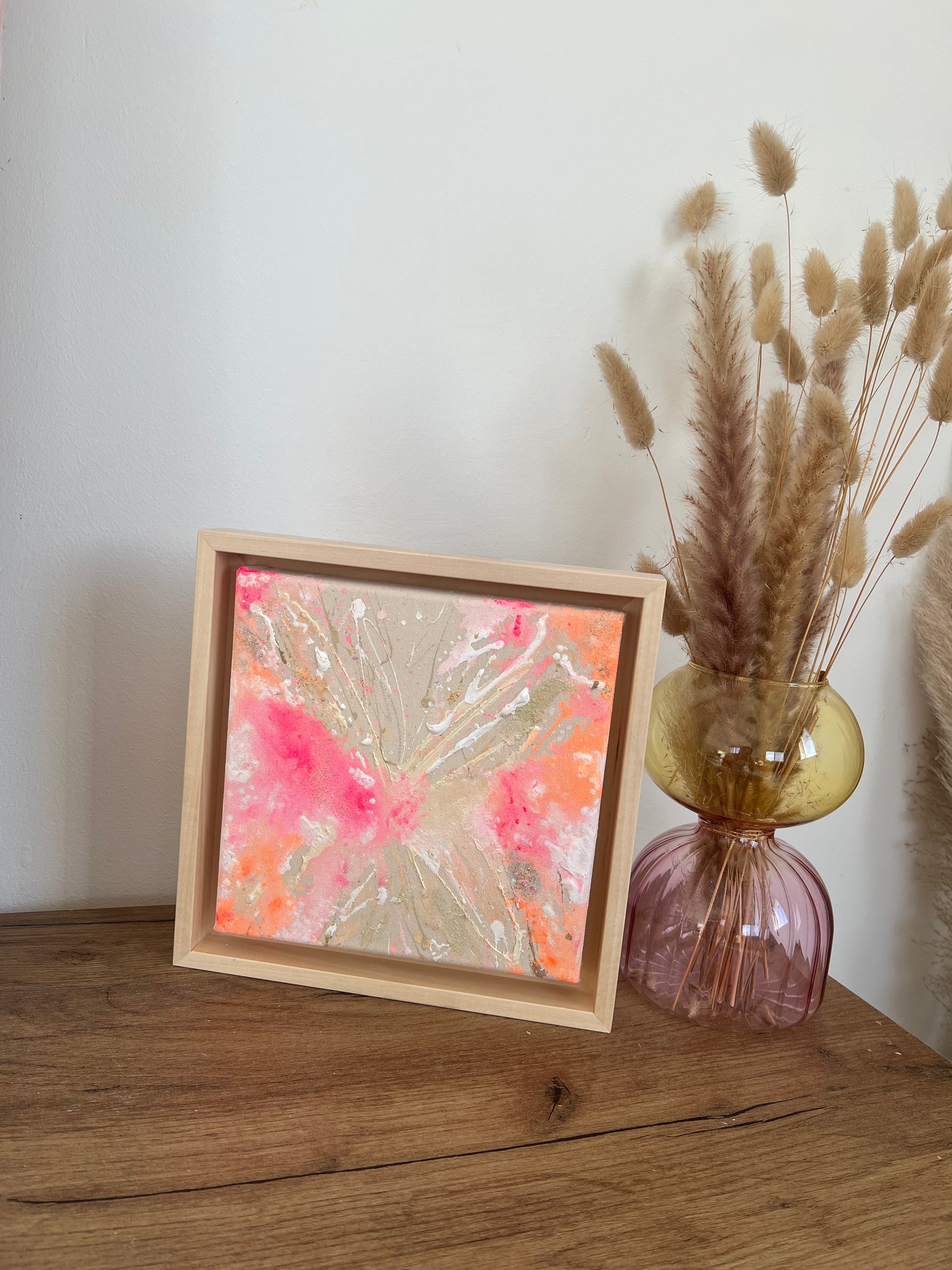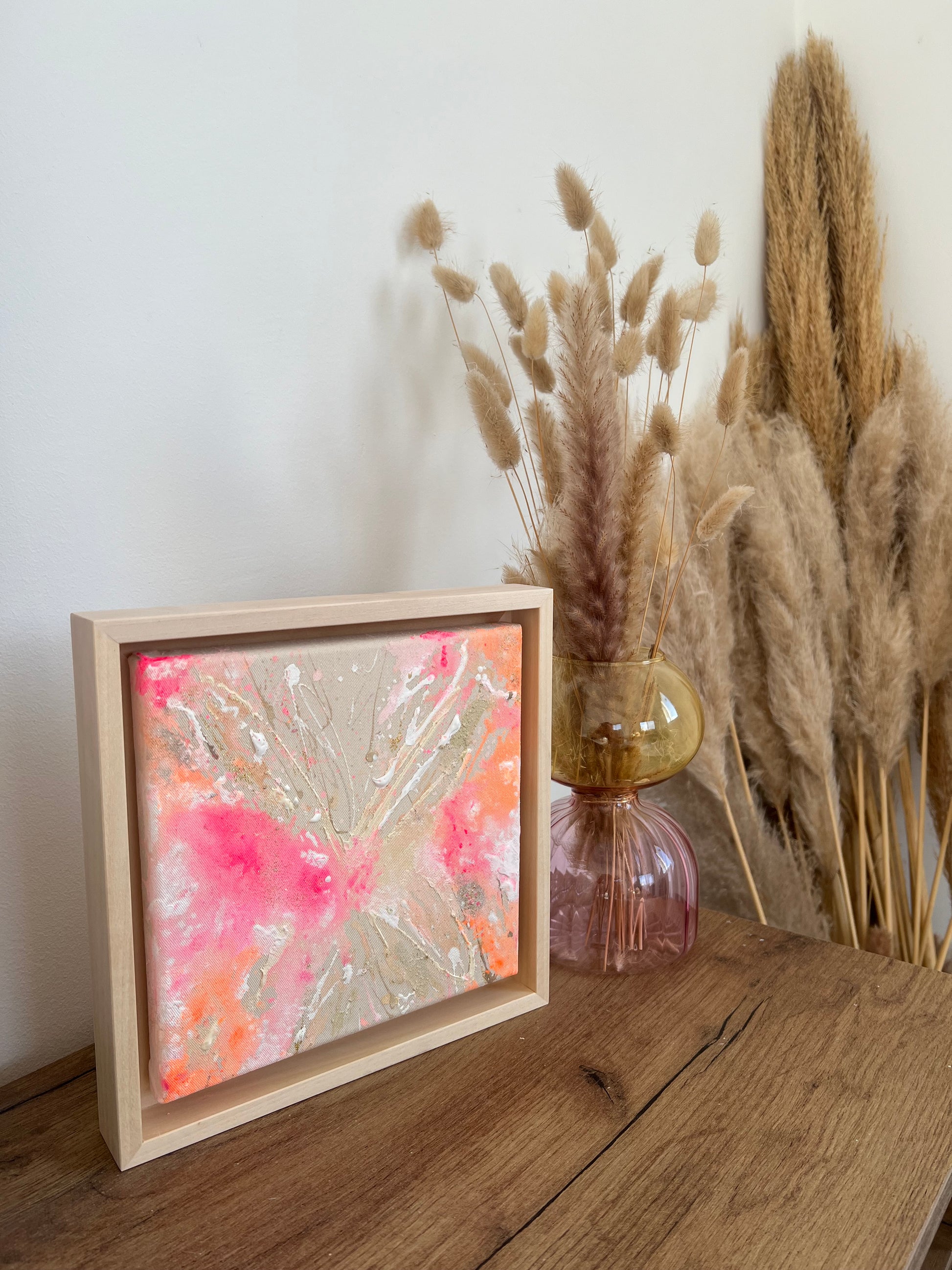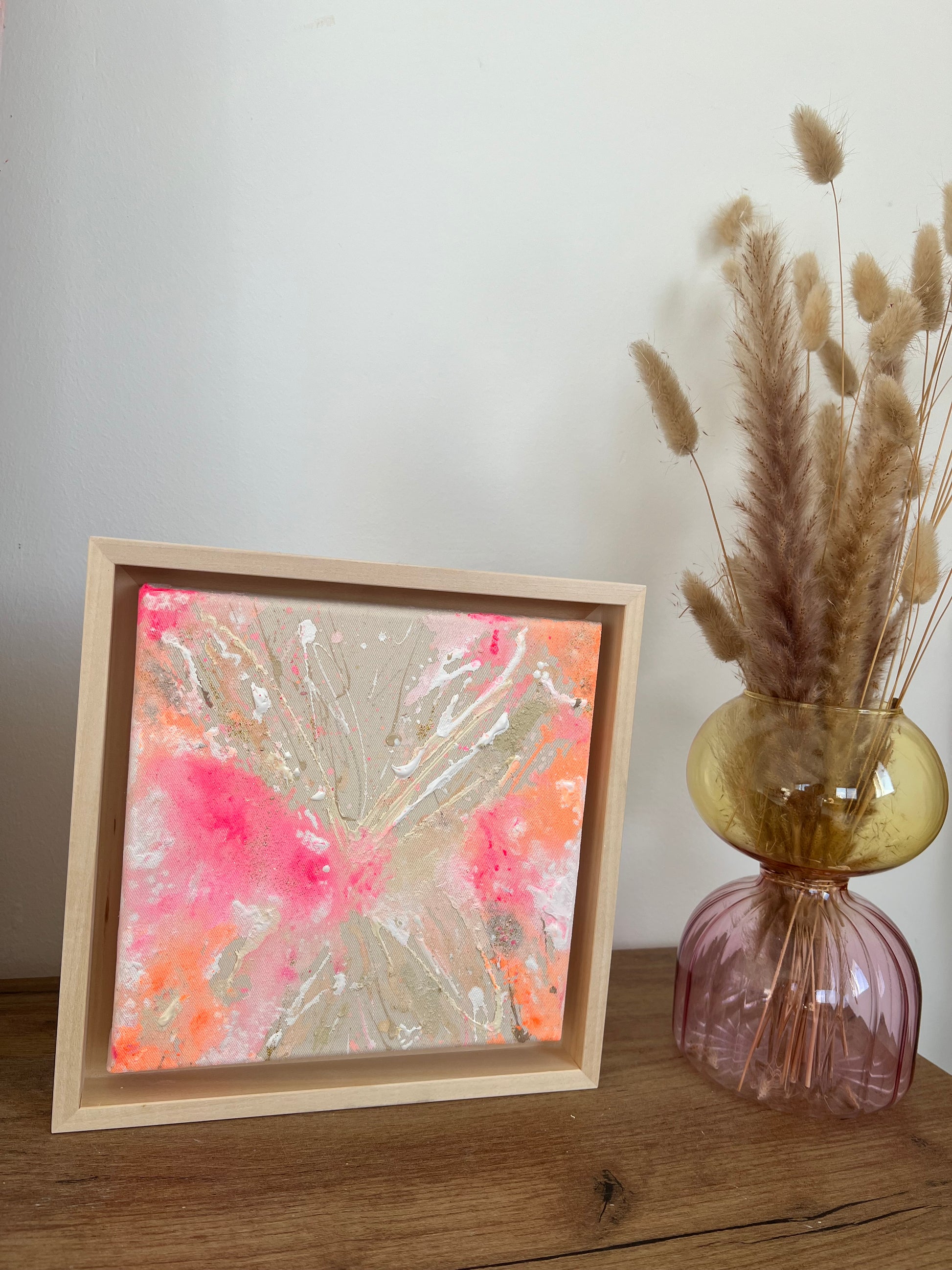 Handgemaltes Acrylgemälde auf Leinwand, inkl. Schattenfugenrahmen aus Lindenholz