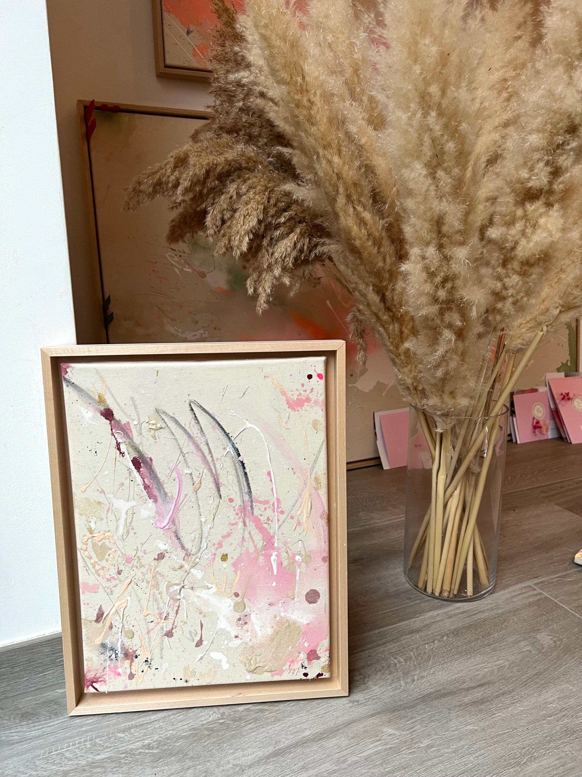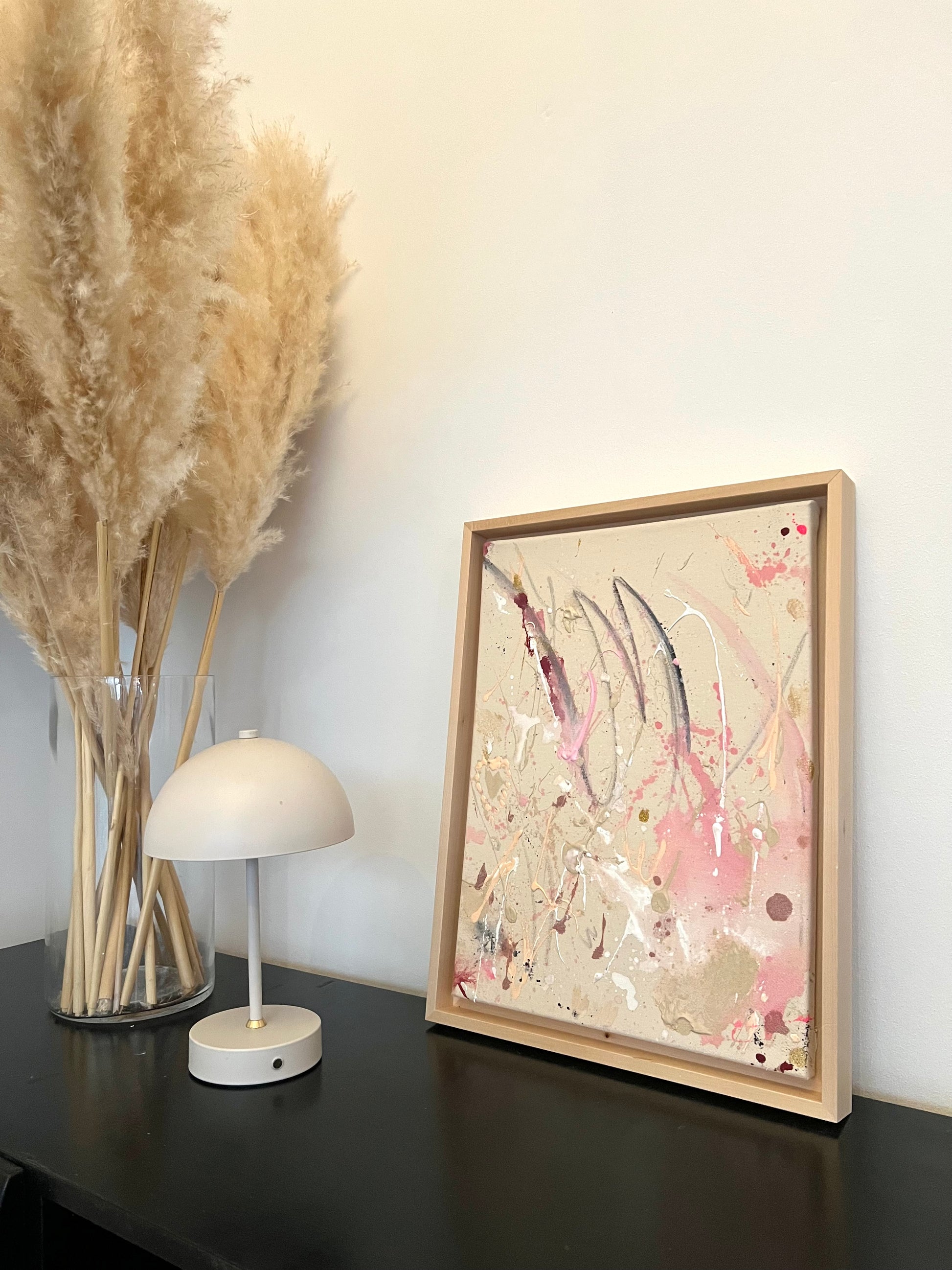 Hand-painted acrylic painting on canvas, including shadow gap frame