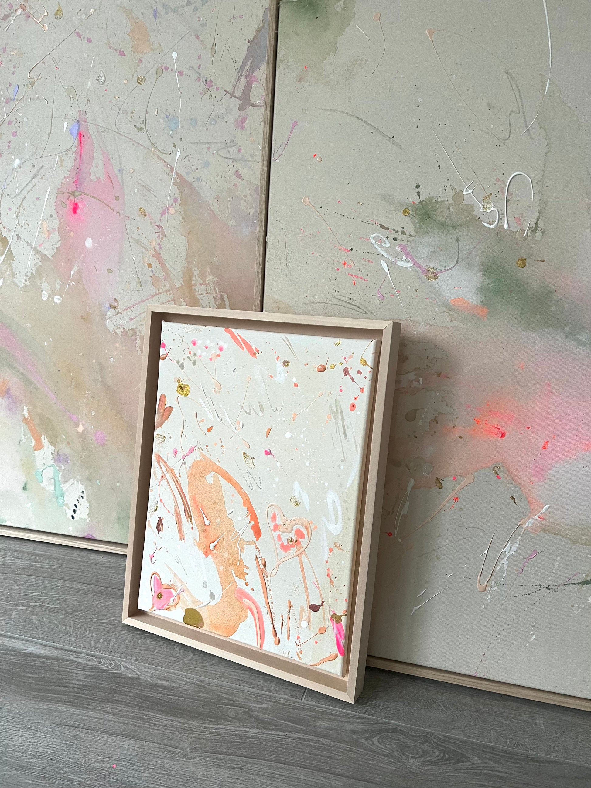 Hand-painted acrylic painting on canvas, including shadow gap frame in linden wood