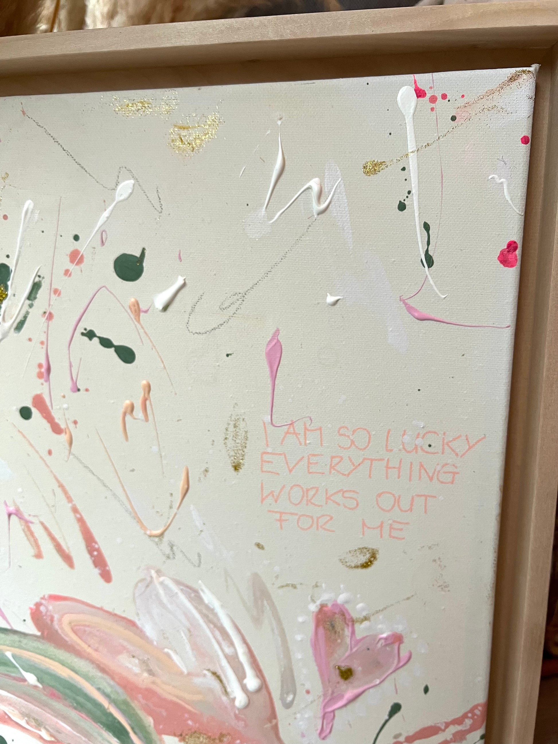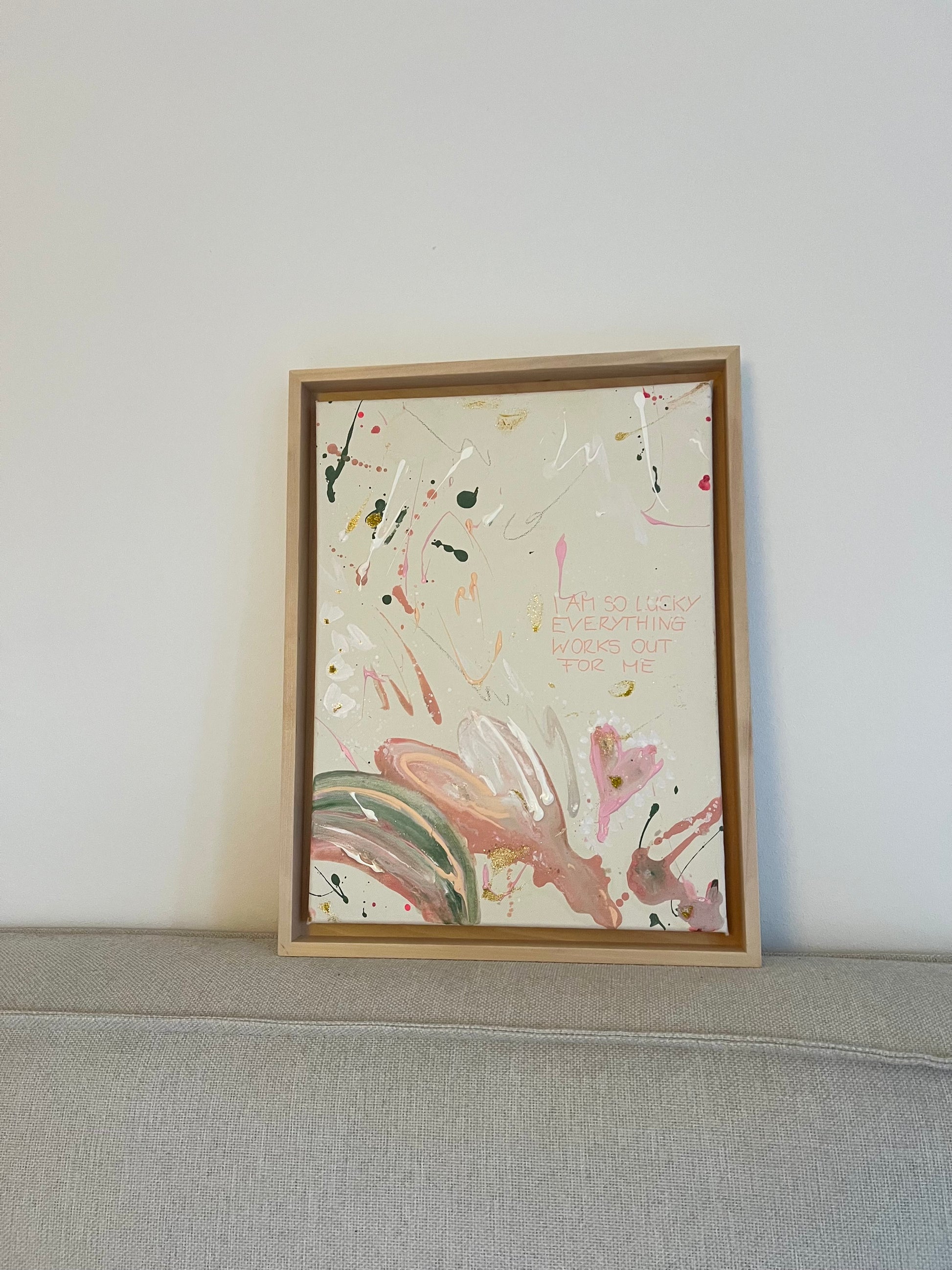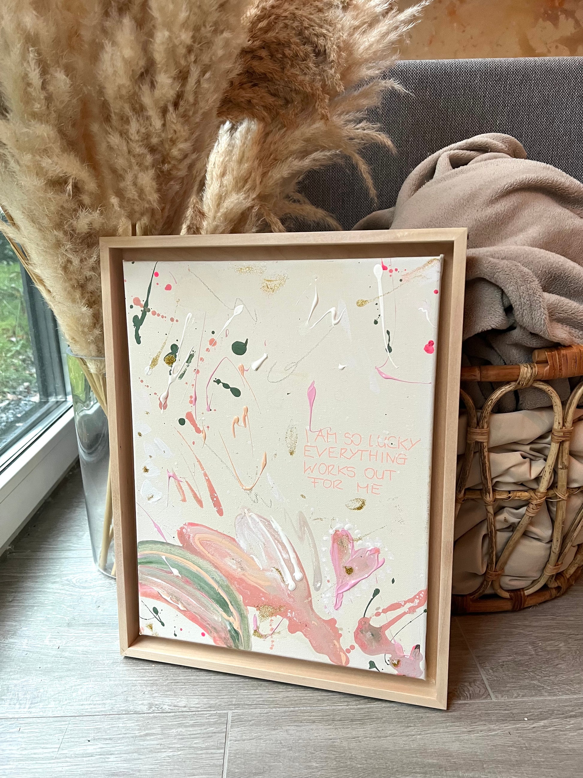 Hand-painted acrylic painting on canvas, including shadow gap frame in linden wood