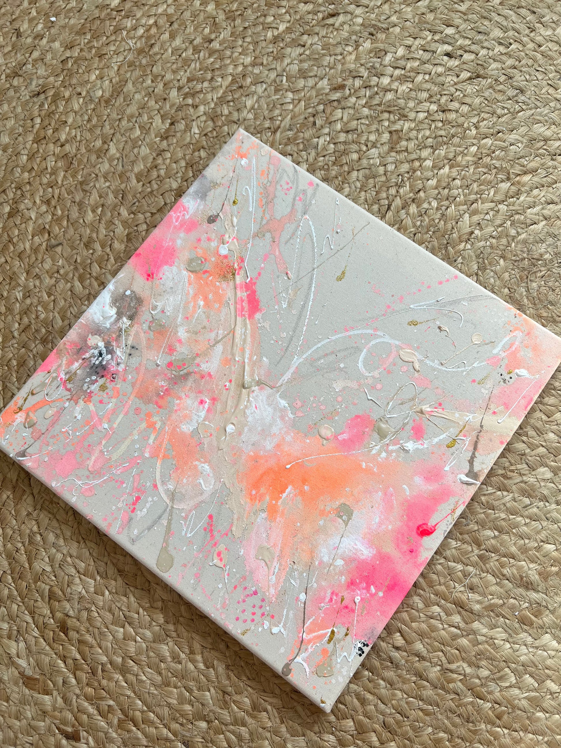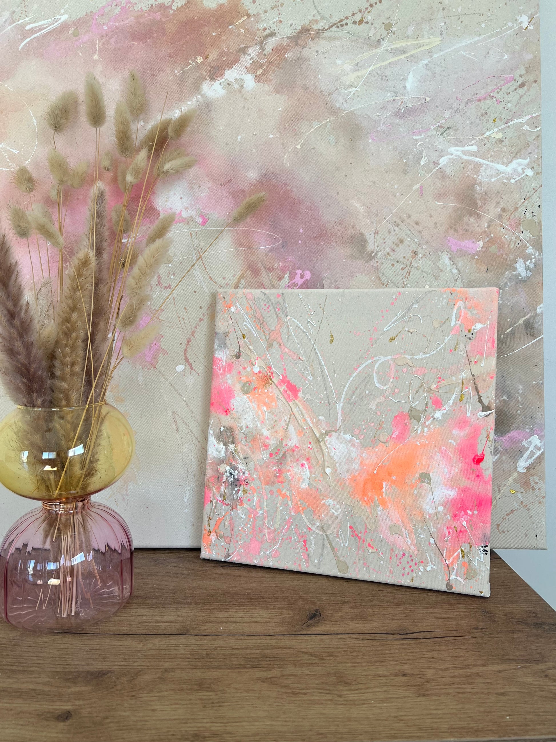 Handgemaltes Acrylgemälde auf Leinwand, inkl. Schattenfugenrahmen aus Lindenholz oder in weiß