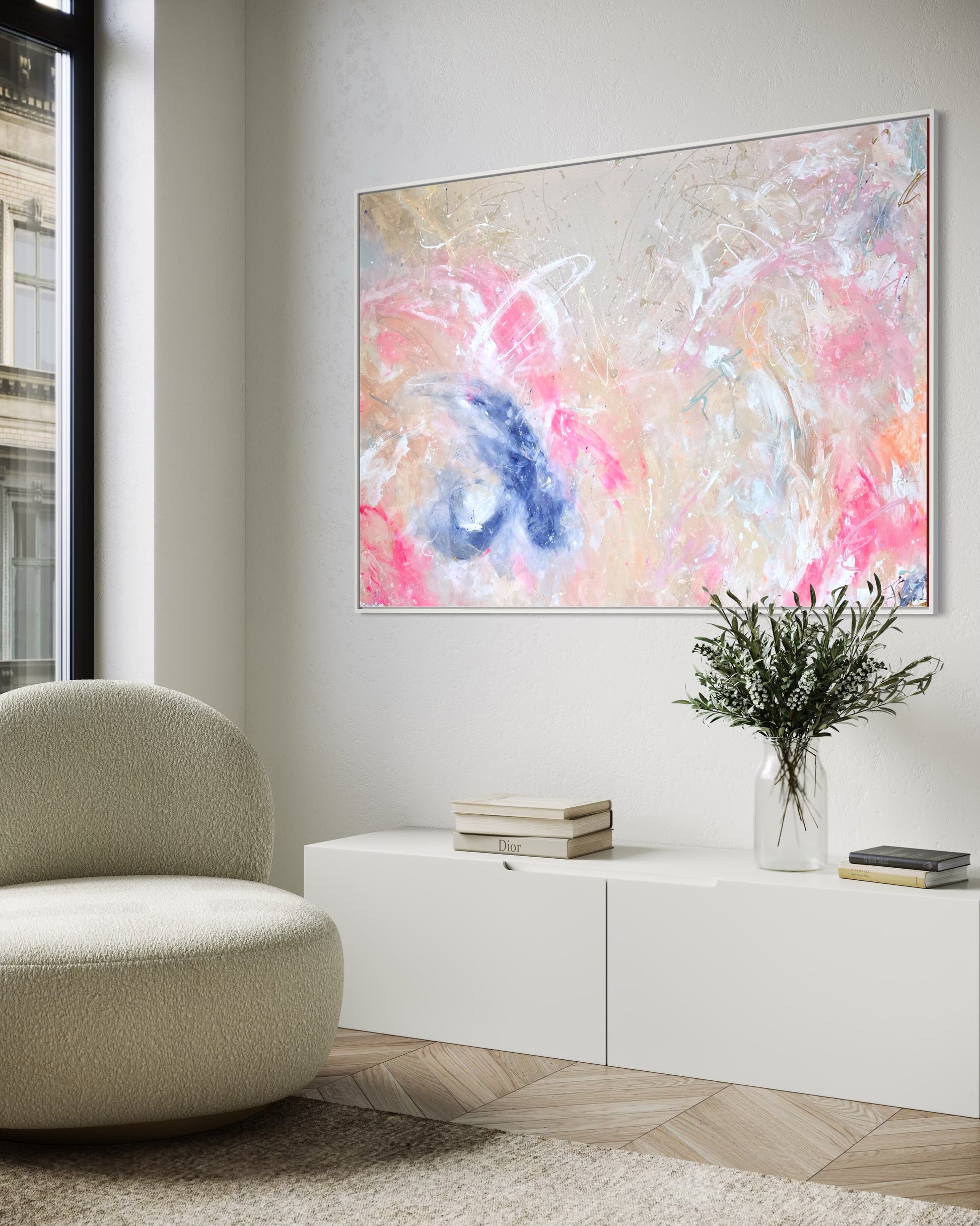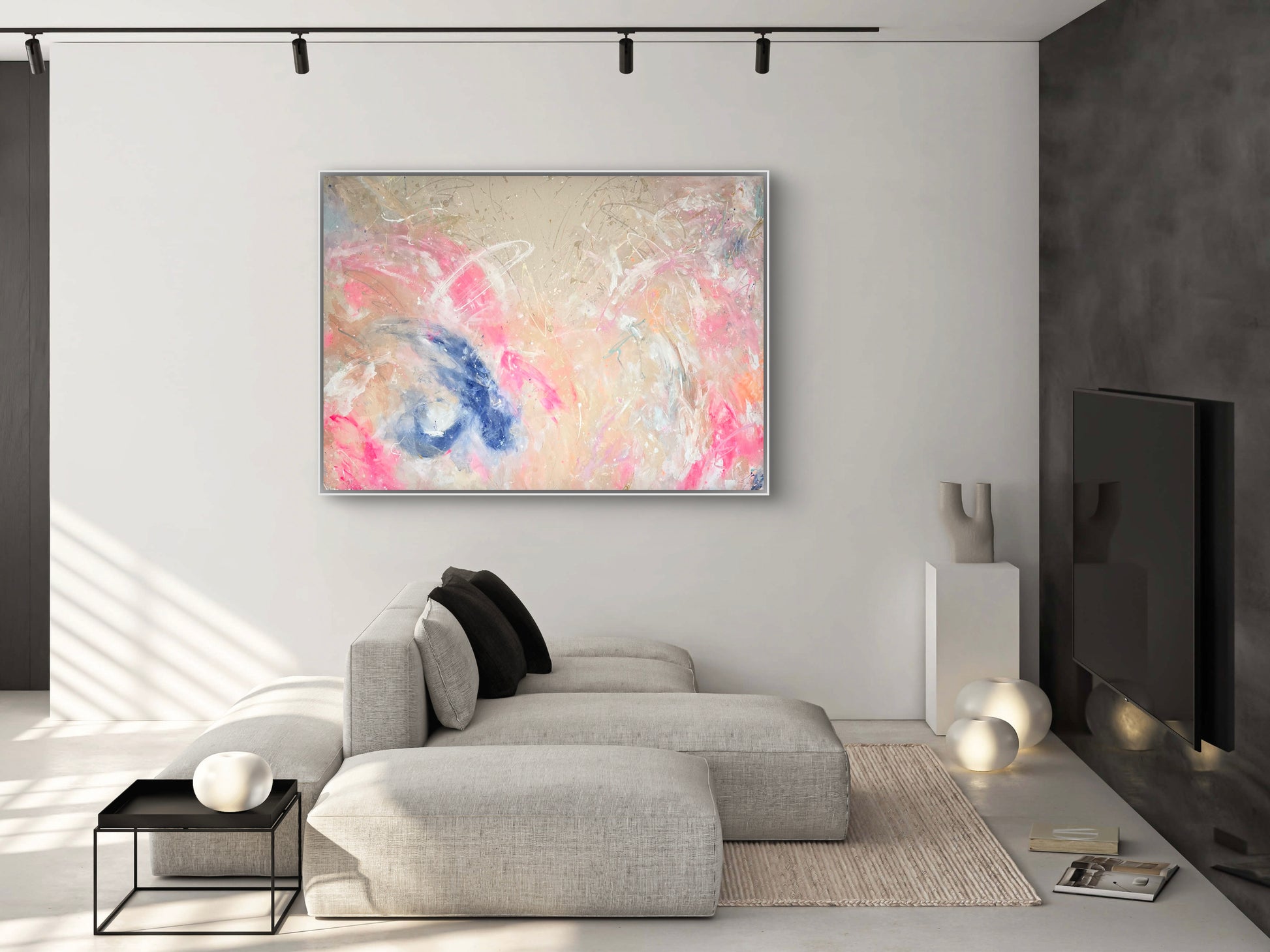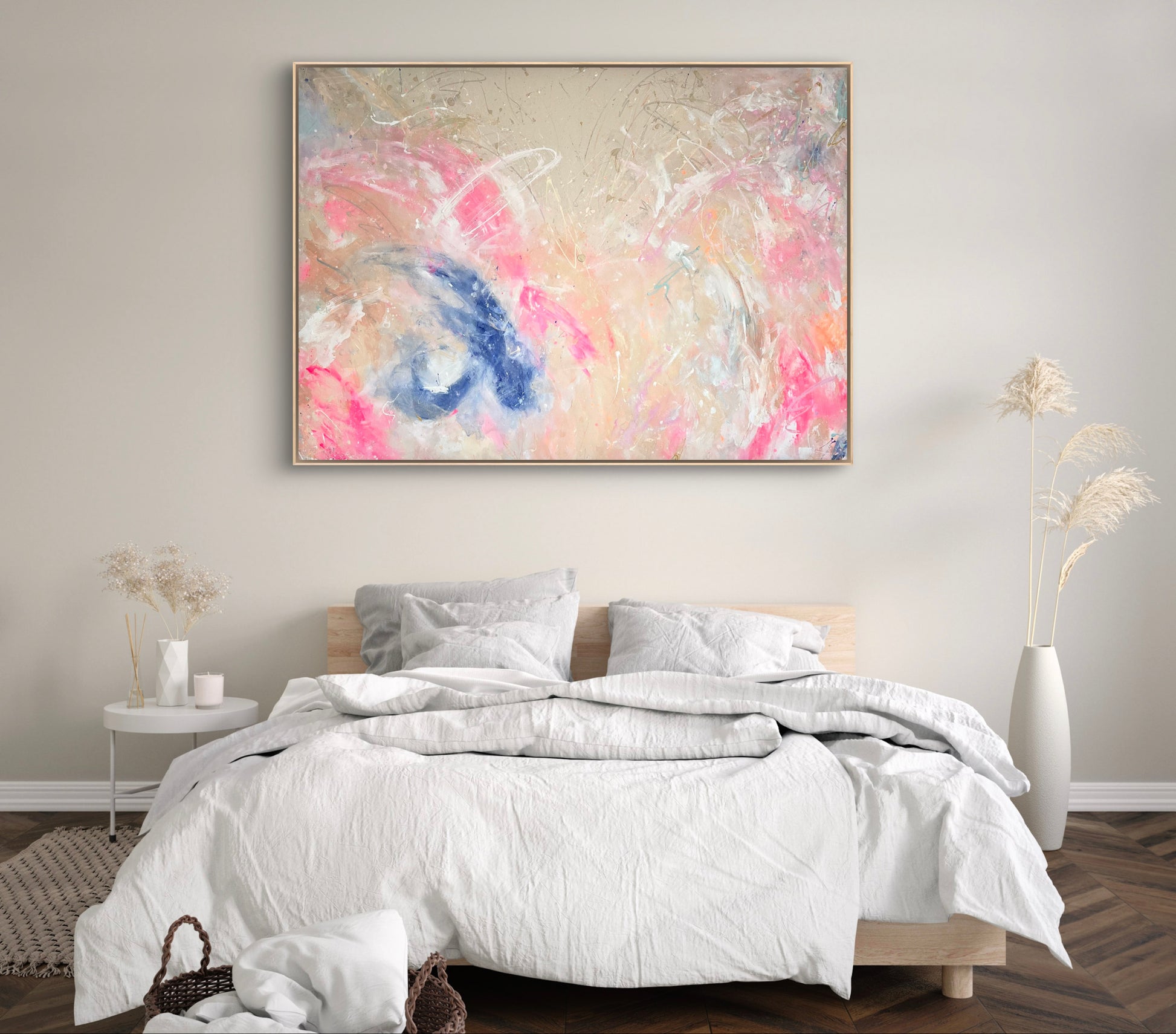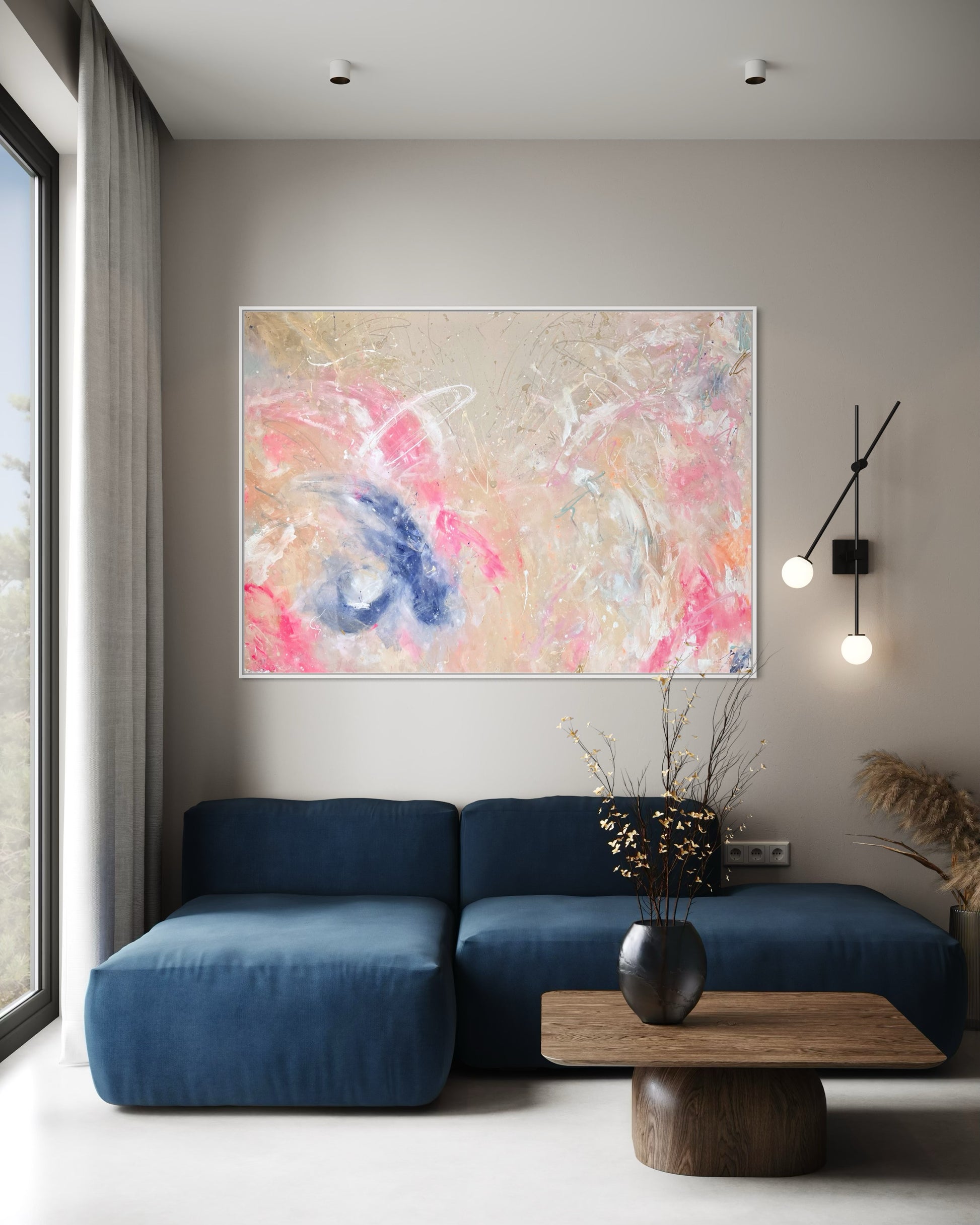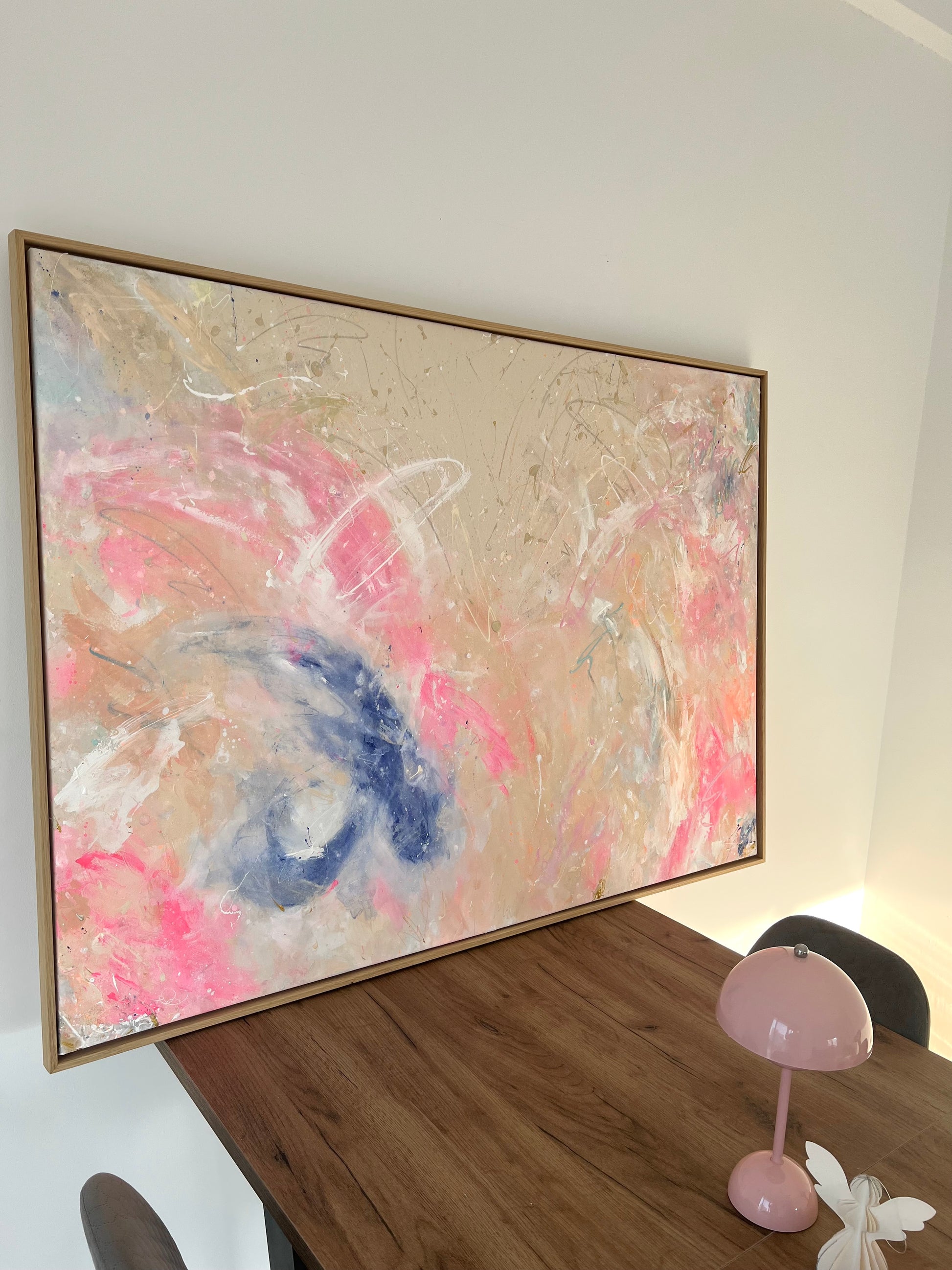 Hand-painted acrylic painting on canvas, including shadow gap frame made of oak wood or in white