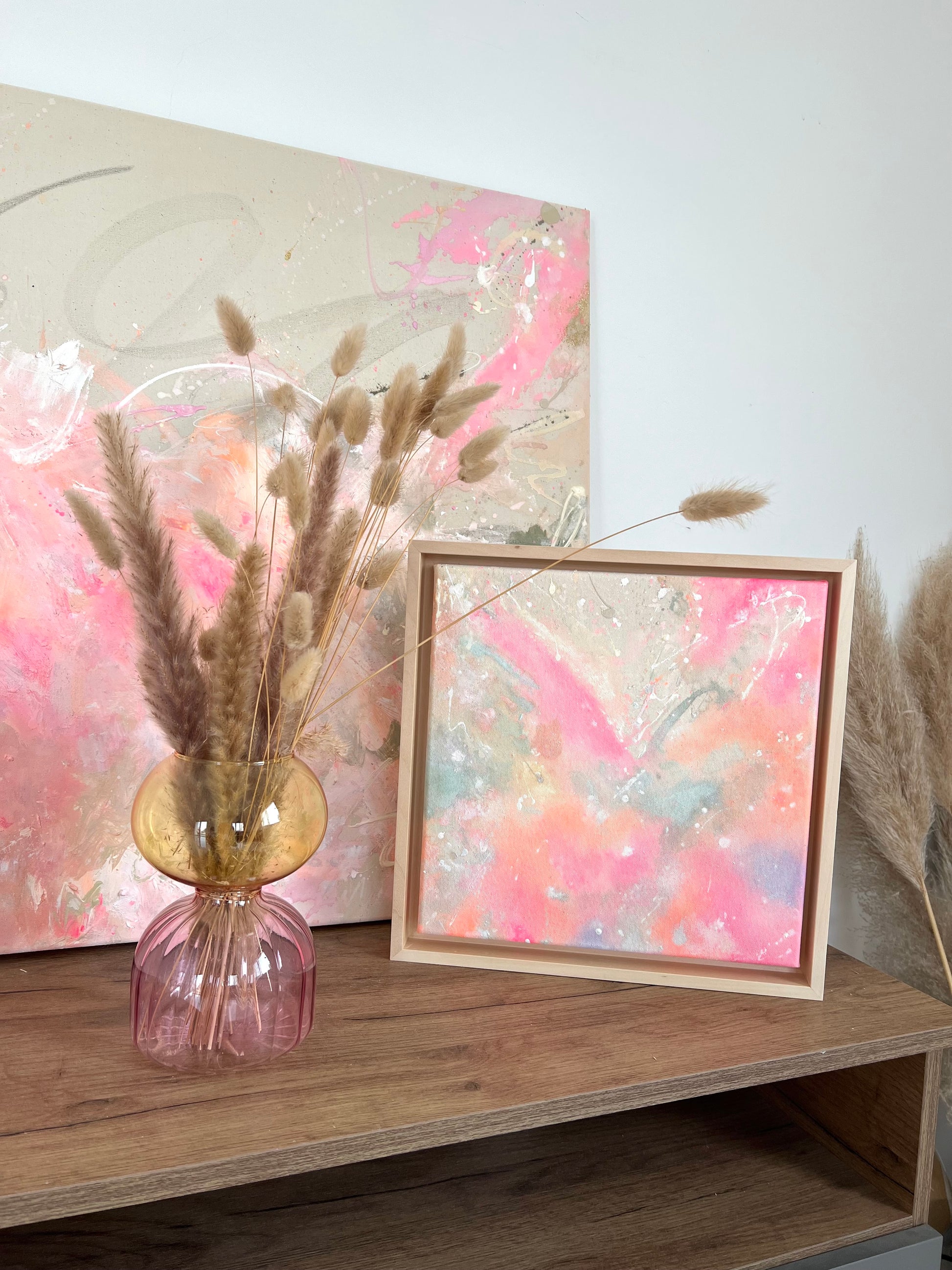 Handgemaltes Acrylgemälde auf Leinwand, inkl. Schattenfugenrahmen aus Lindenholz oder Eichenholz