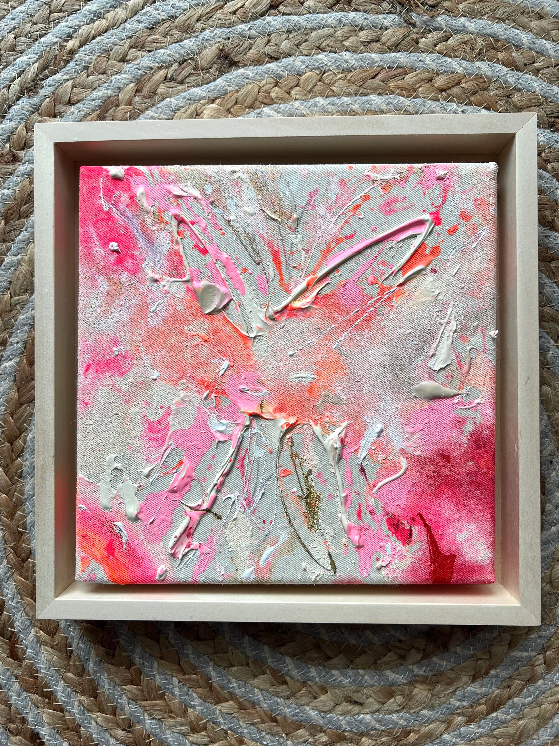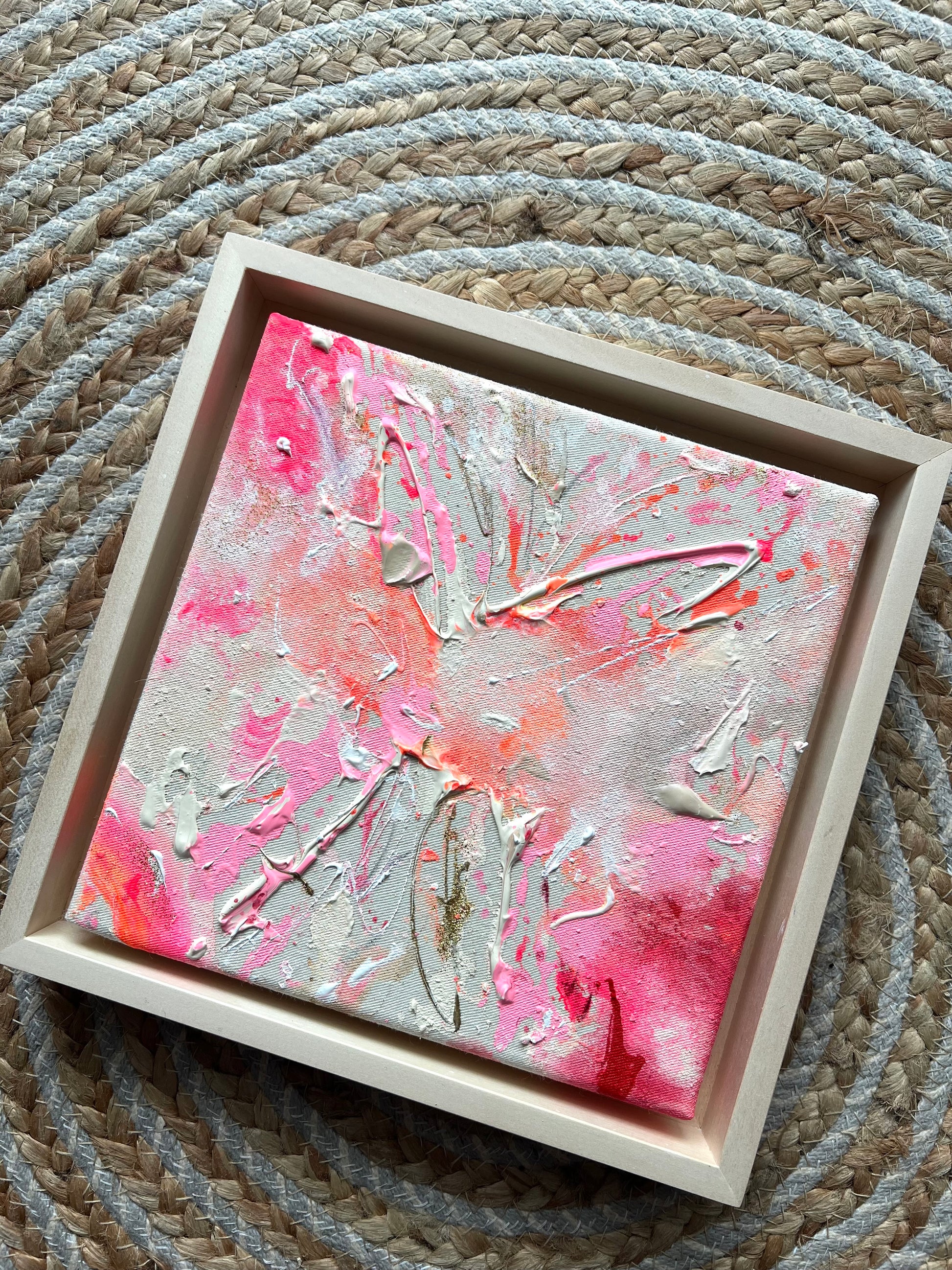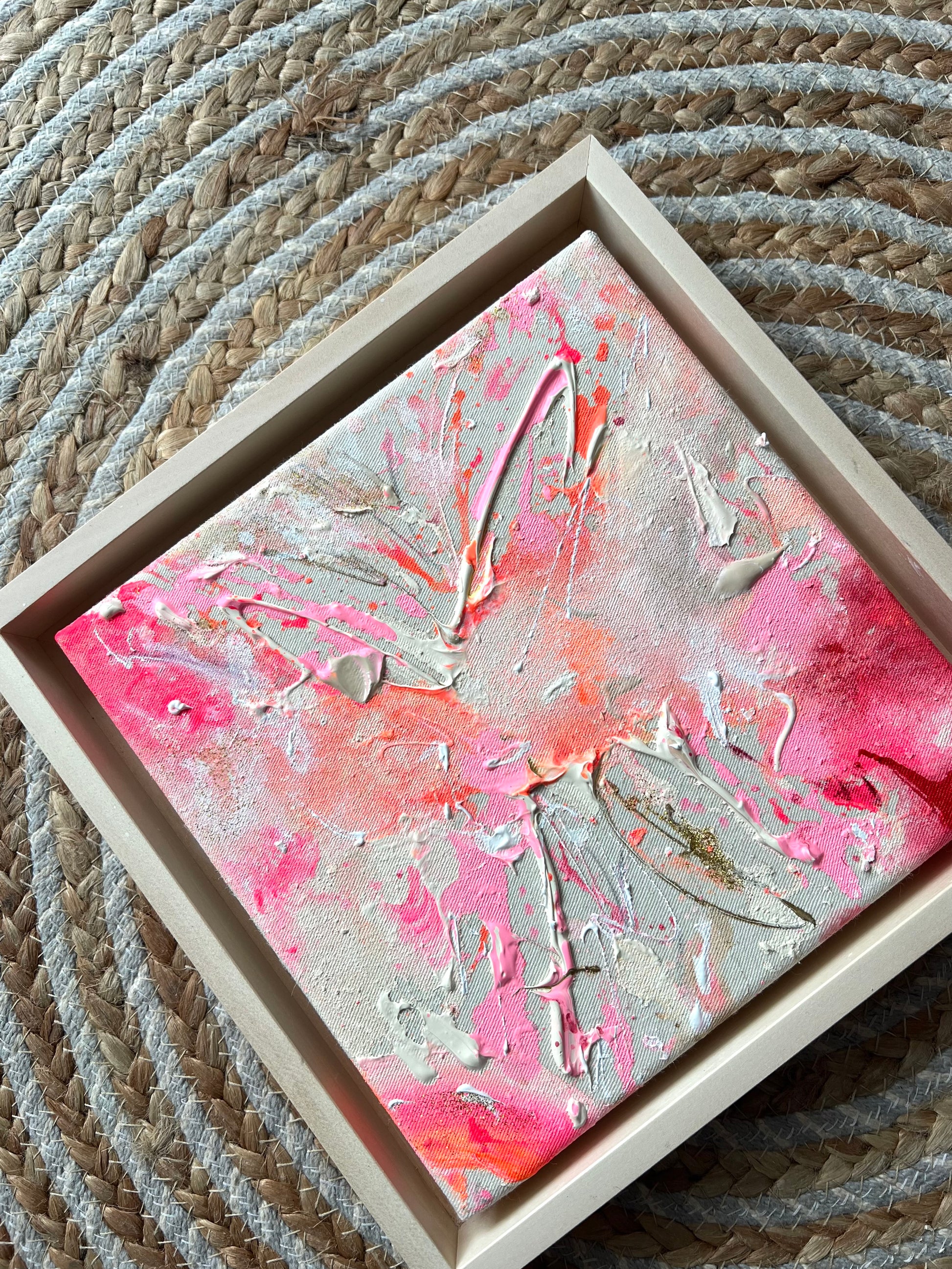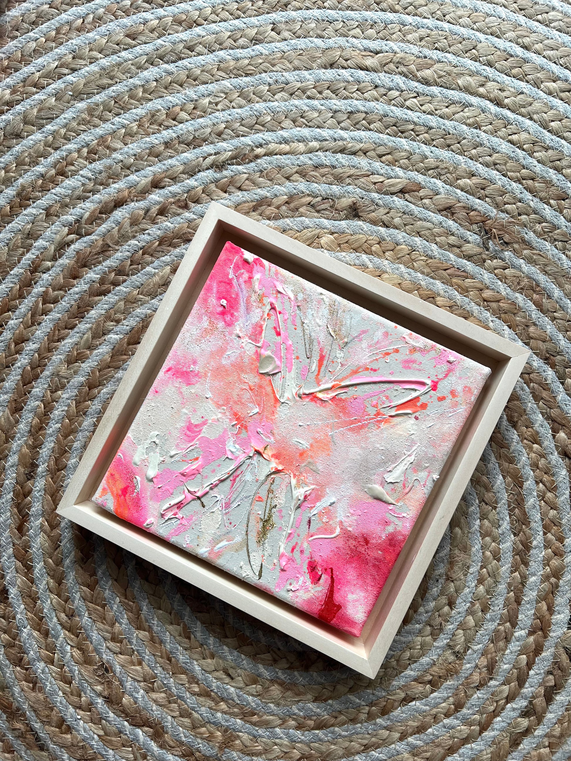 Handgemaltes Acrylgemälde auf Leinwand, inkl. Schattenfugenrahmen aus Lindenholz