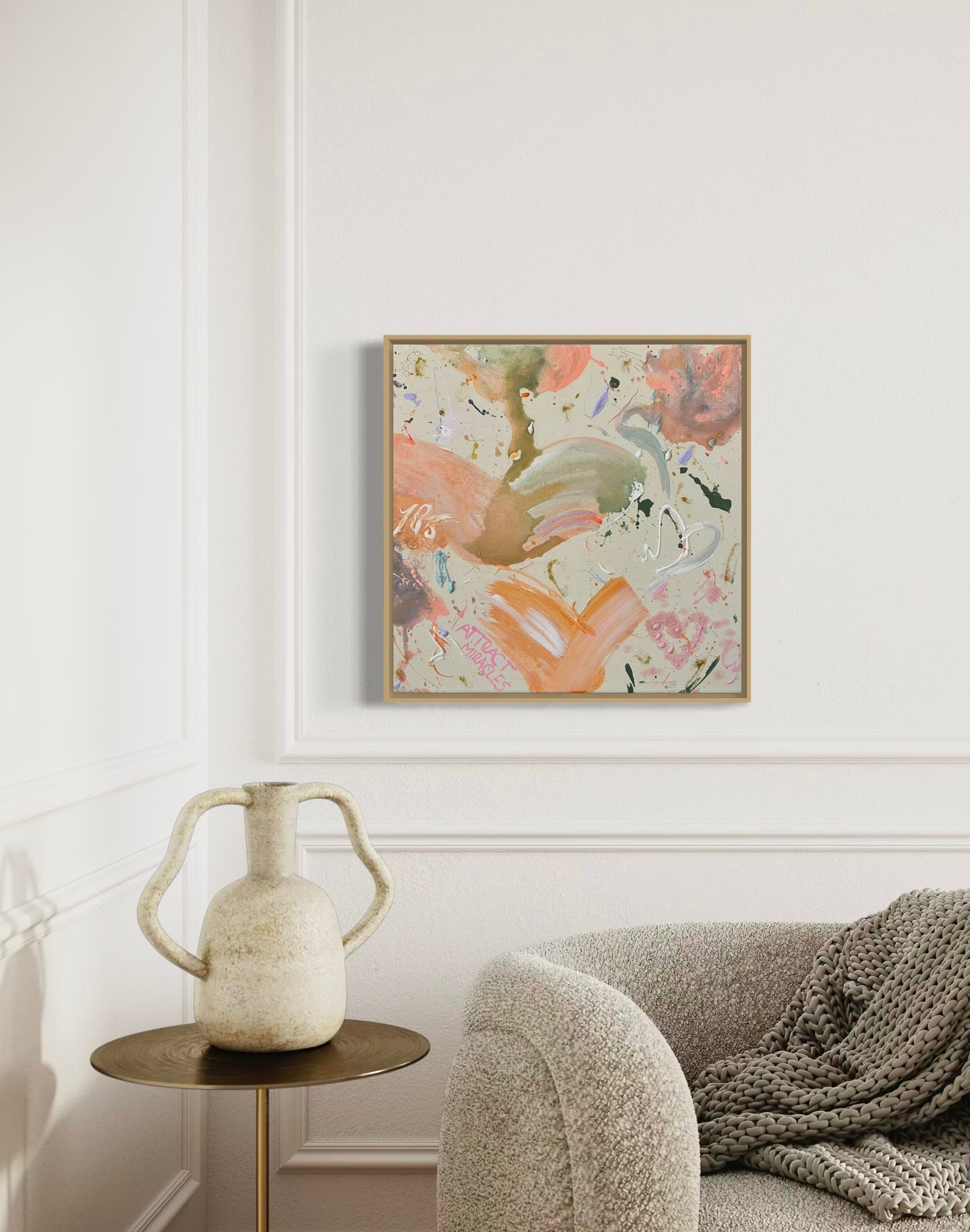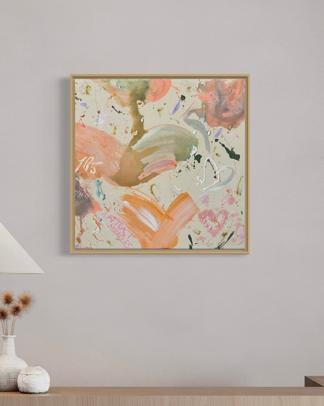 Hand-painted acrylic painting on canvas, including a shadow gap frame made of linden wood