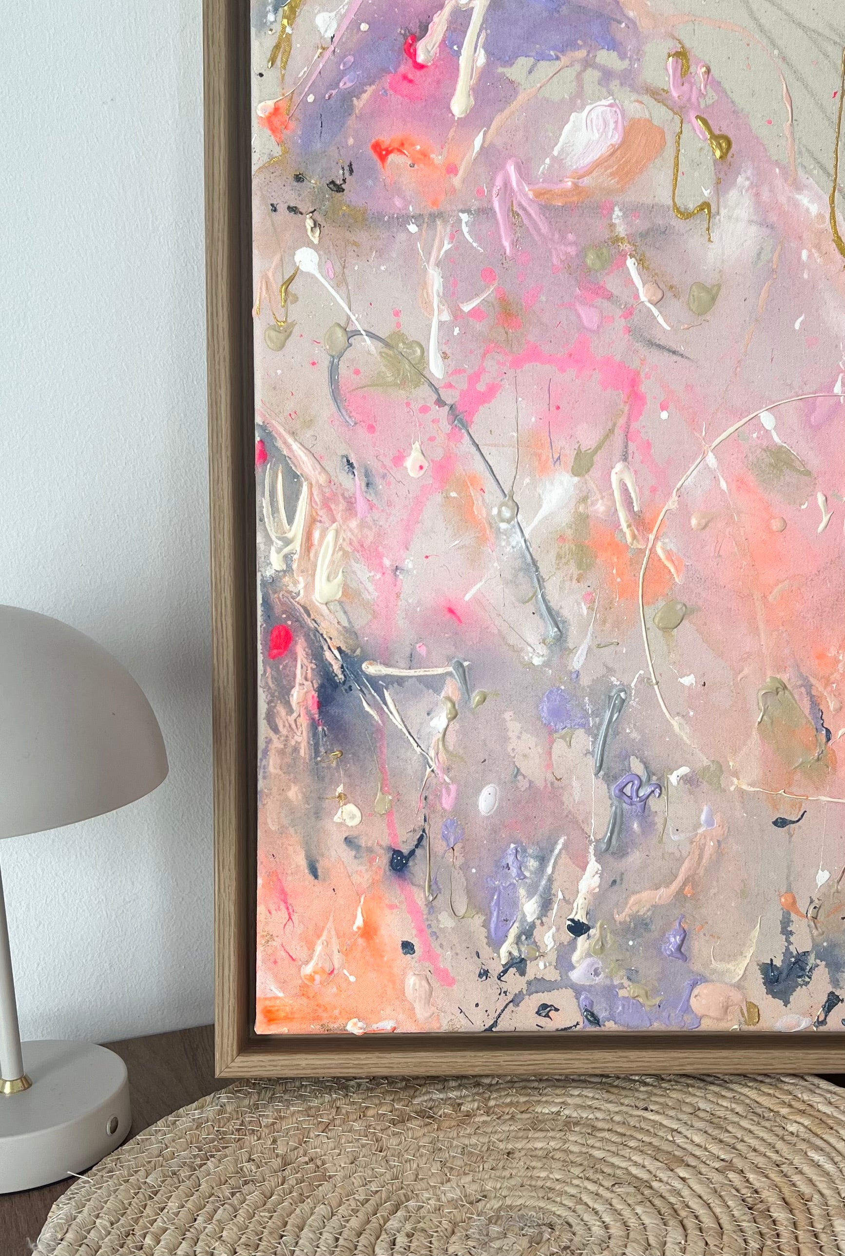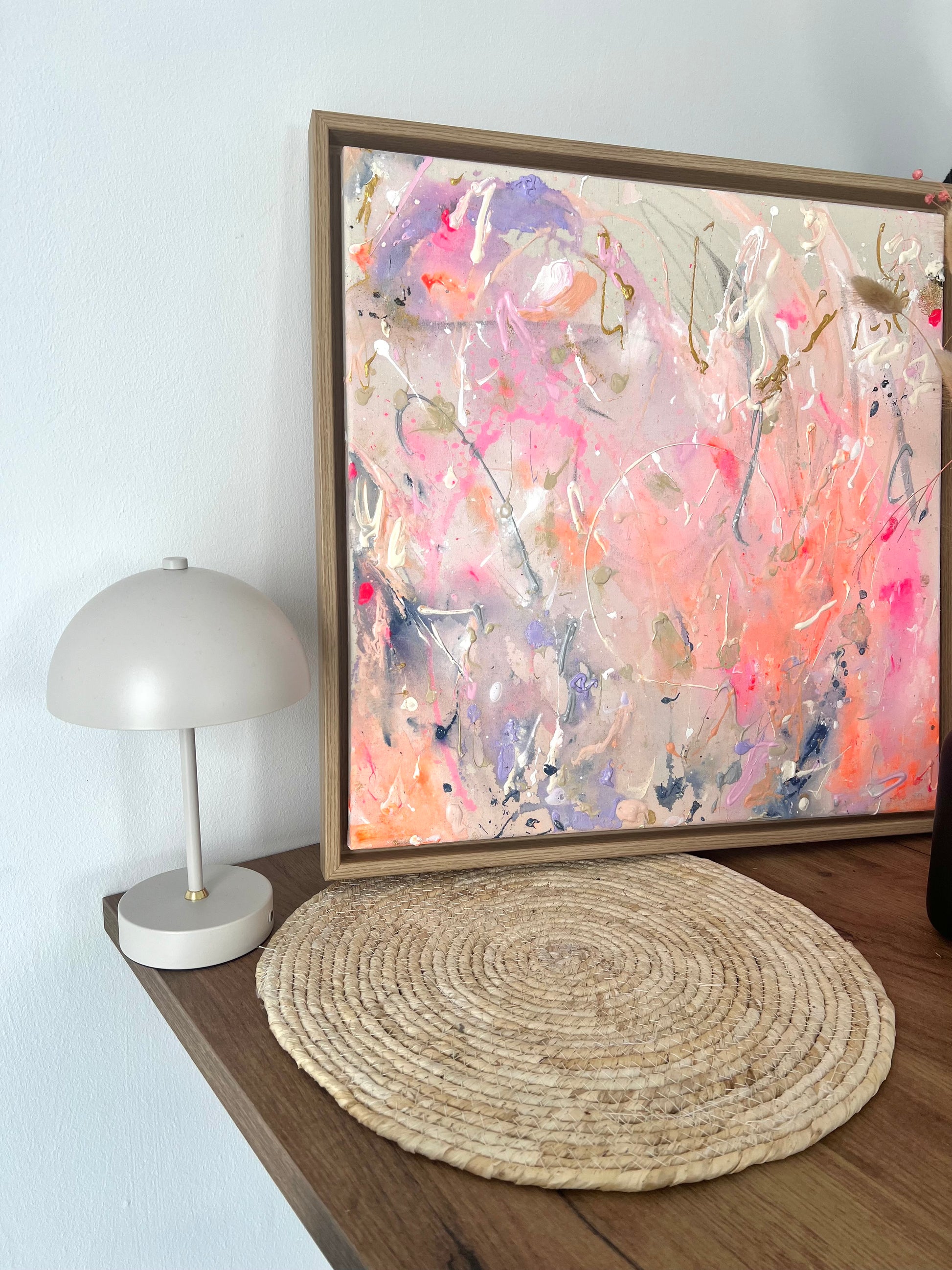 Hand-painted acrylic painting on canvas, including shadow gap frame