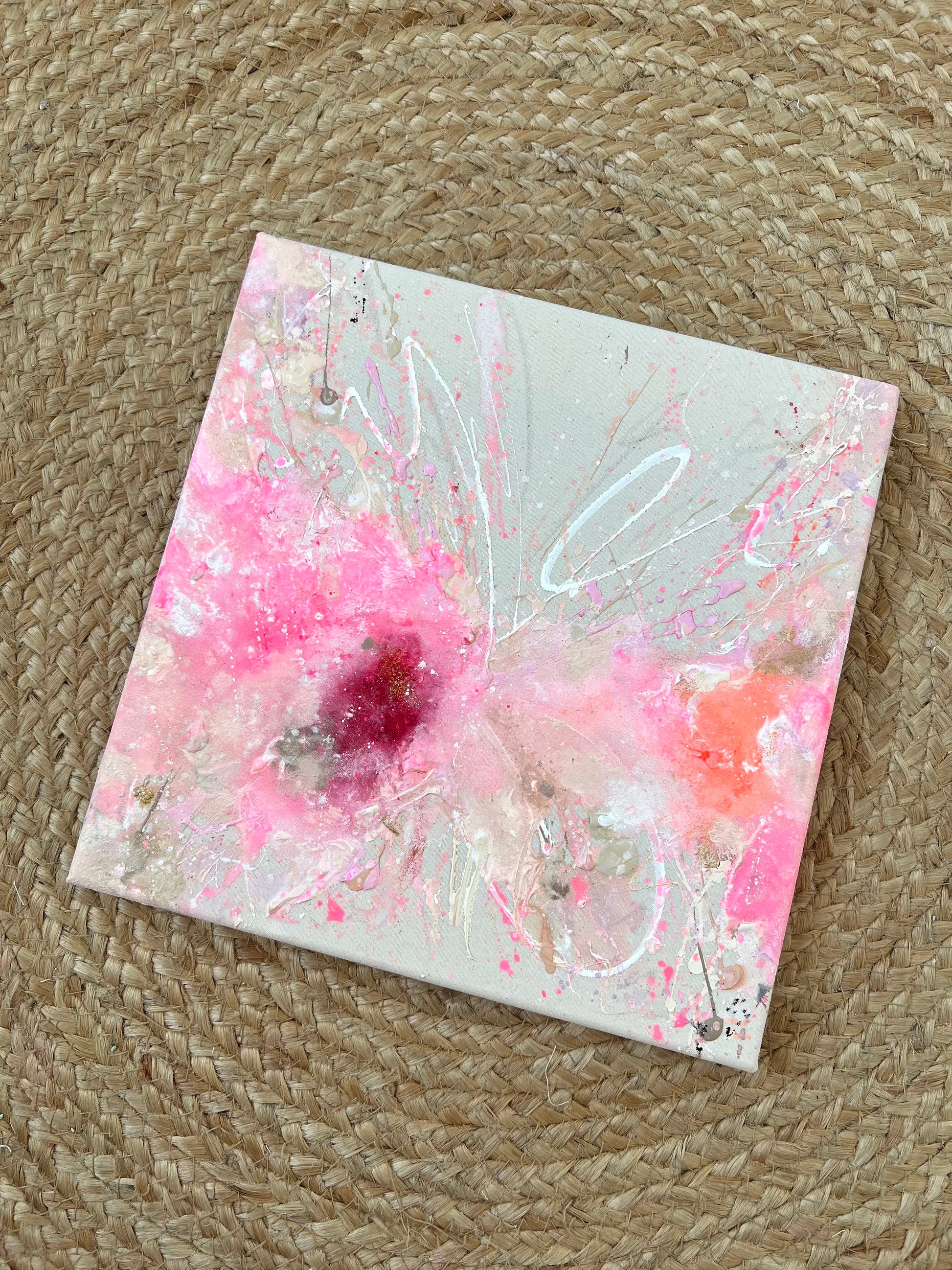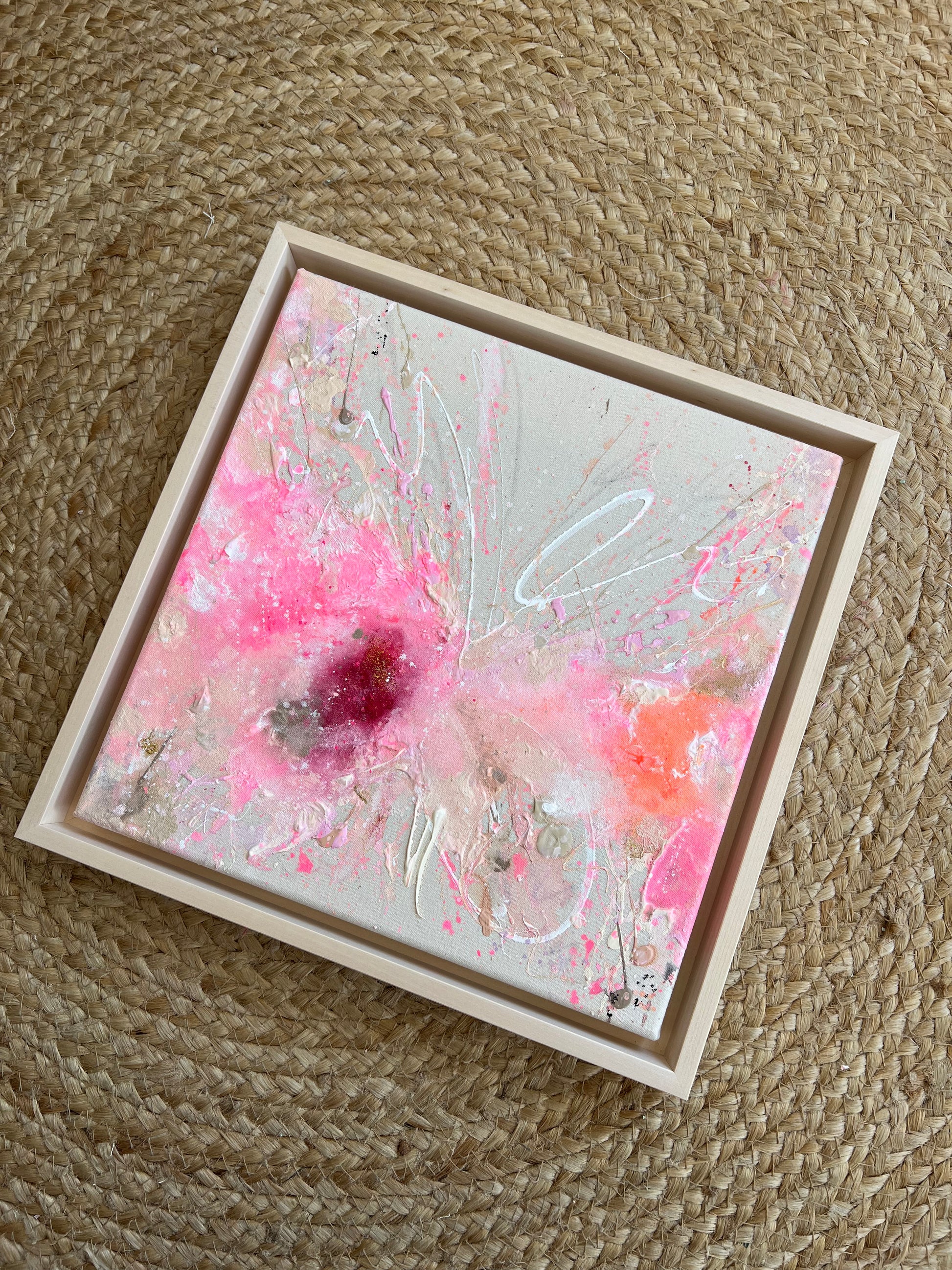Handgemaltes Acrylgemälde auf Leinwand, inkl. Schattenfugenrahmen aus Lindenholz