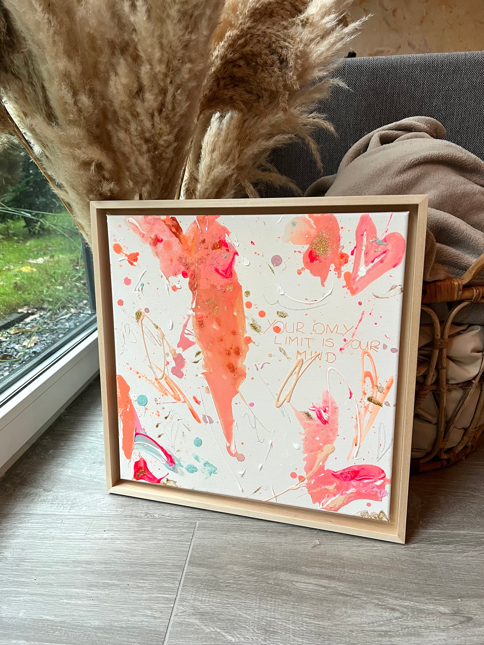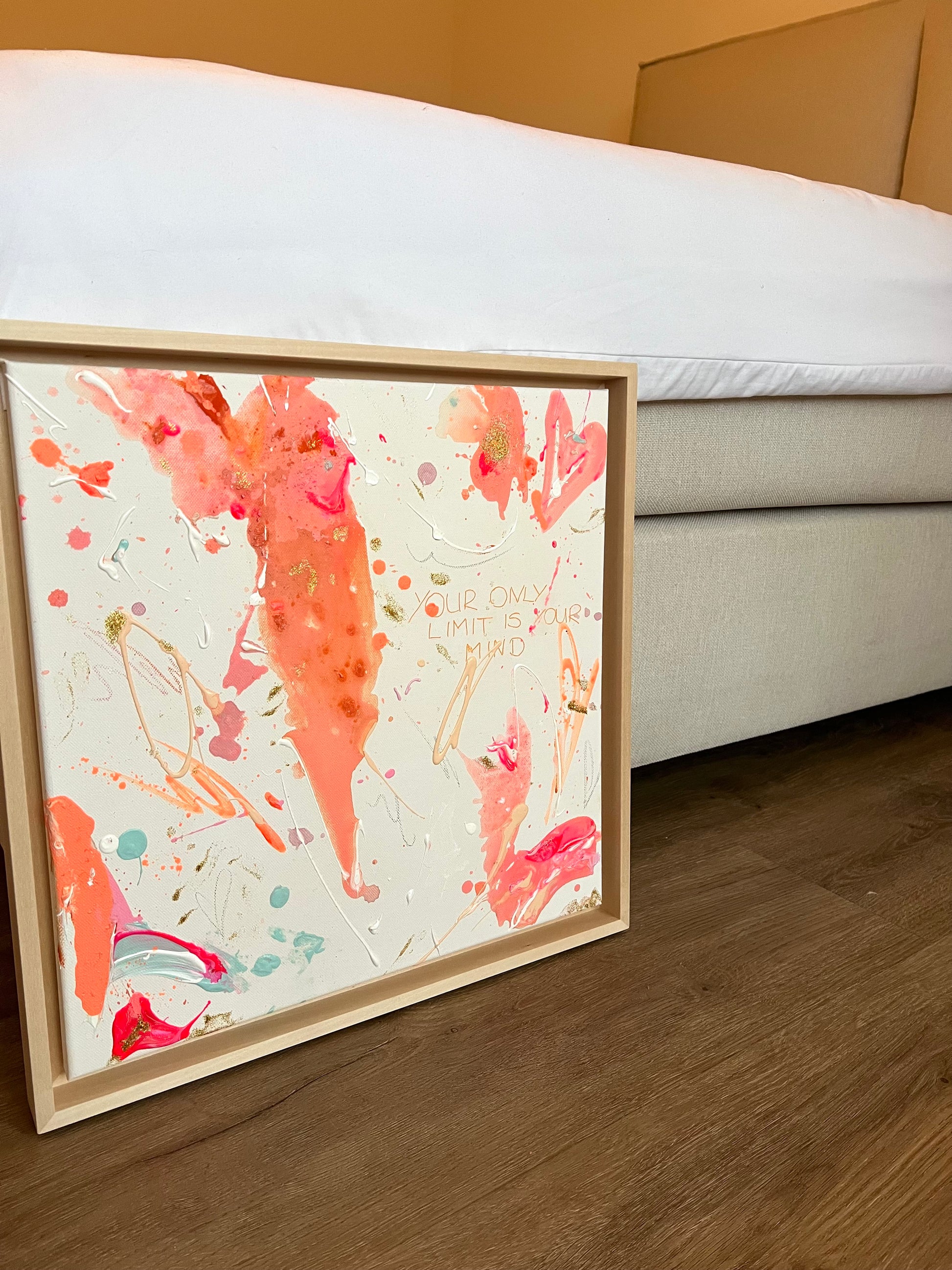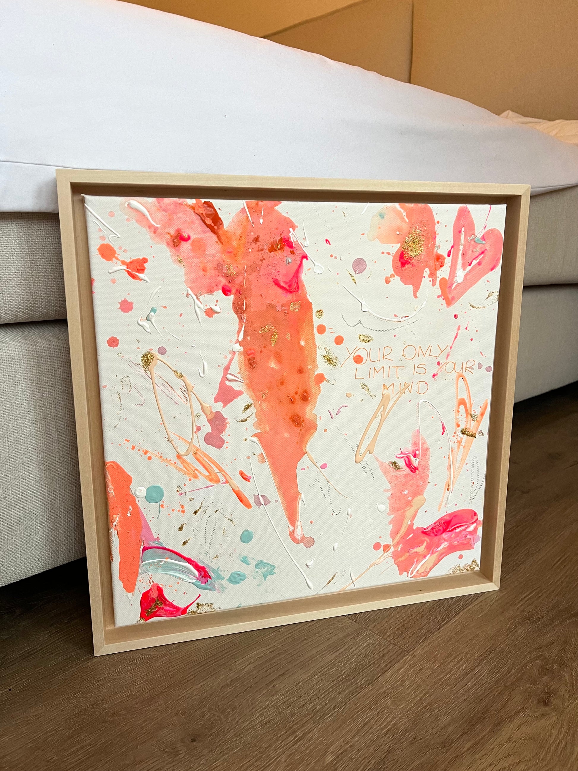 Hand-painted acrylic painting on canvas, including shadow gap frame in linden wood