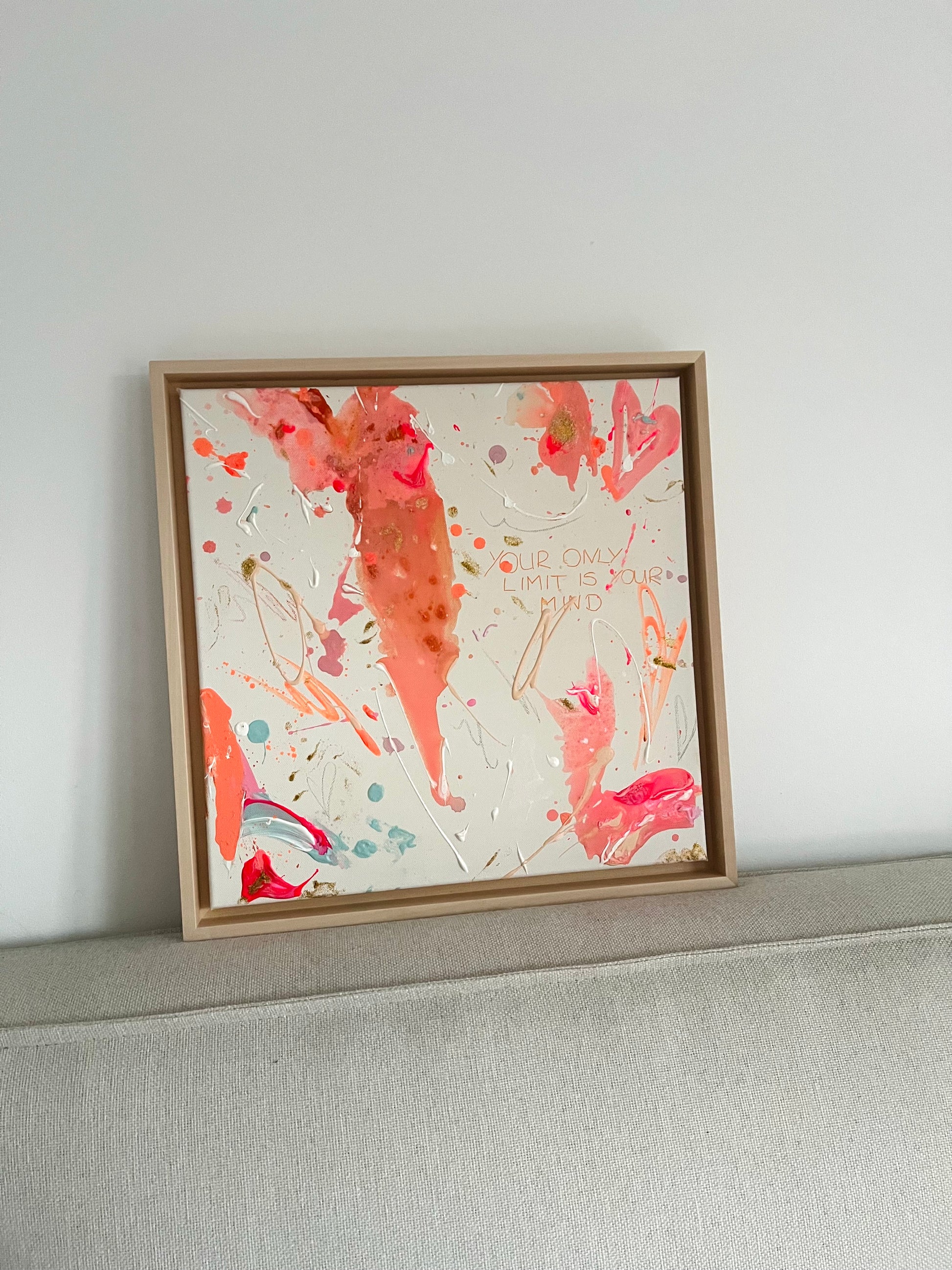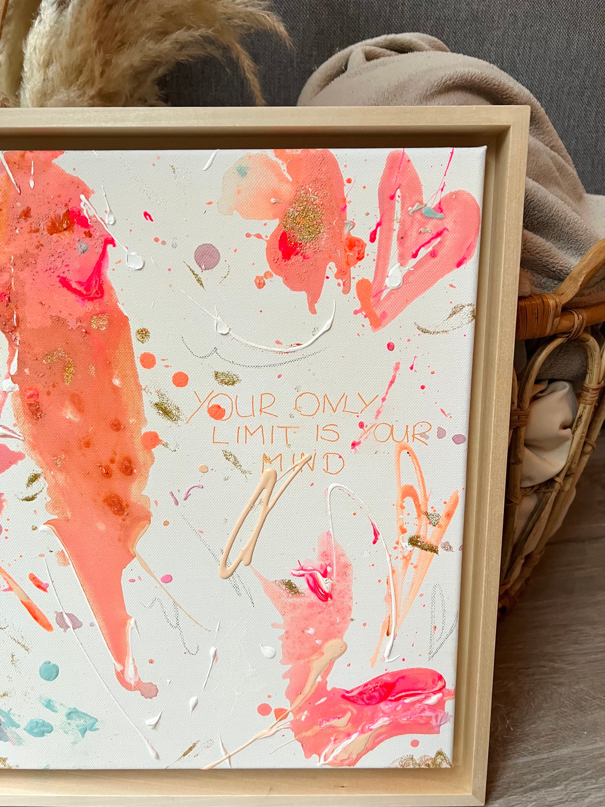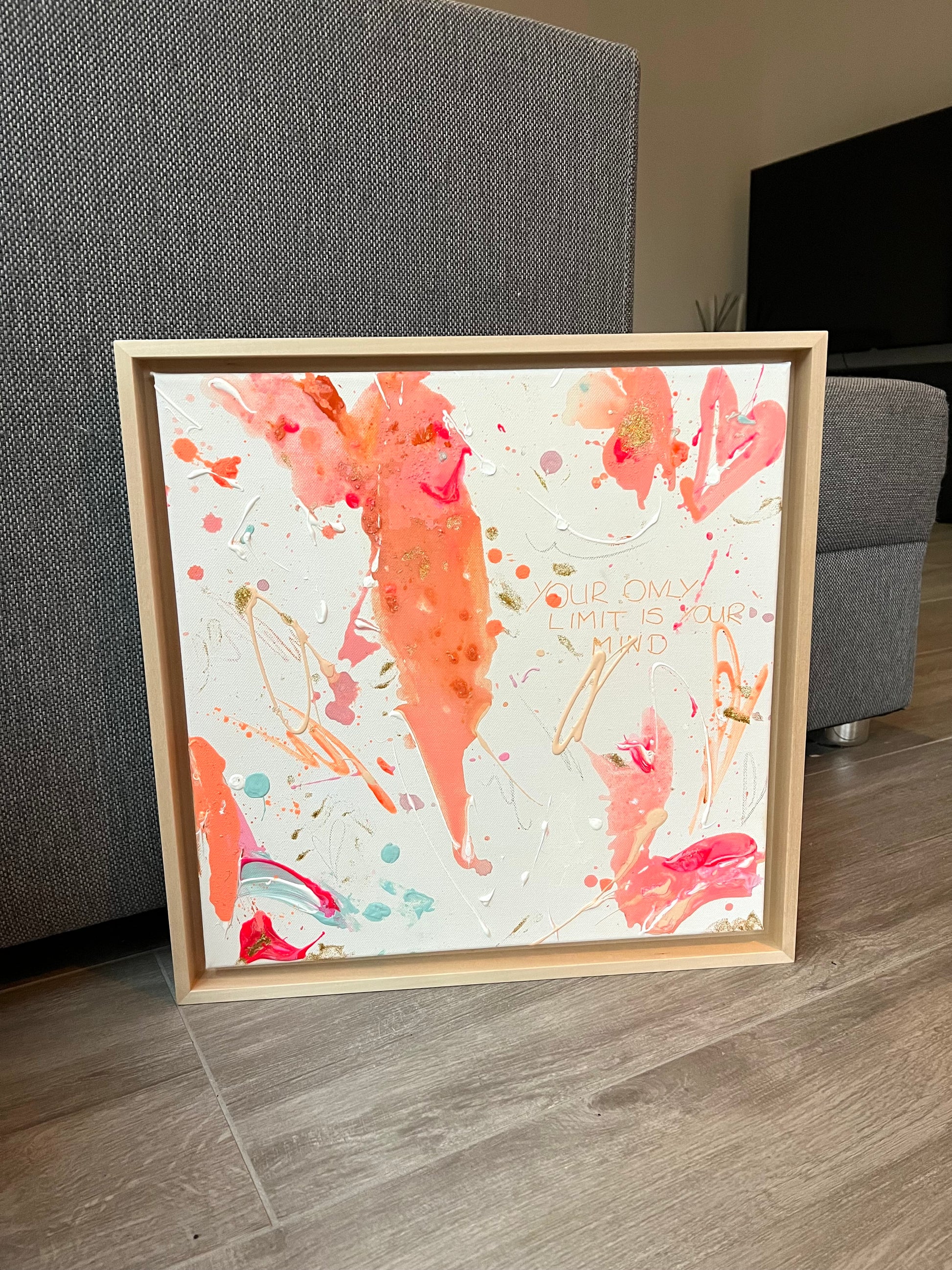 Hand-painted acrylic painting on canvas, including shadow gap frame in linden wood