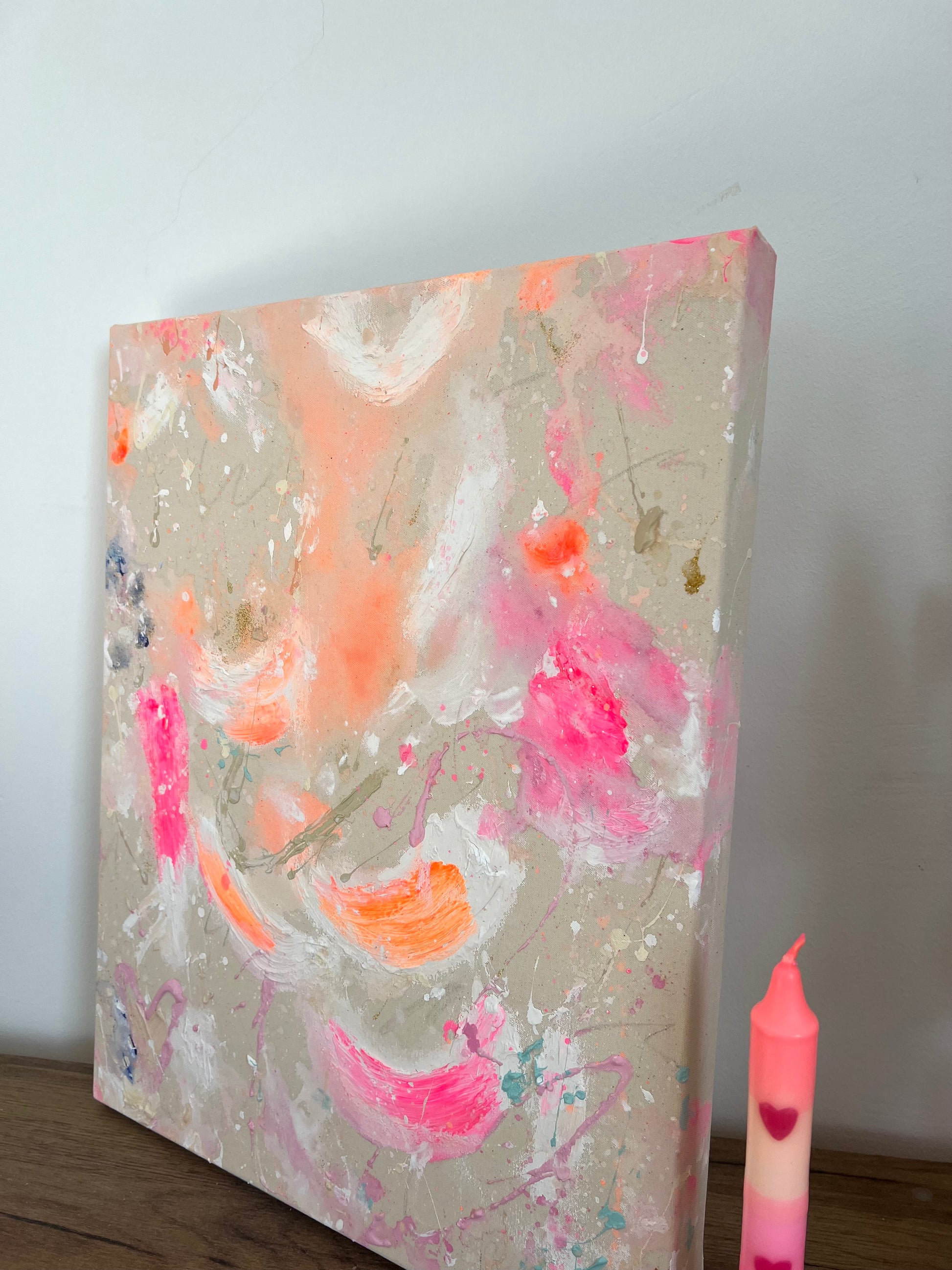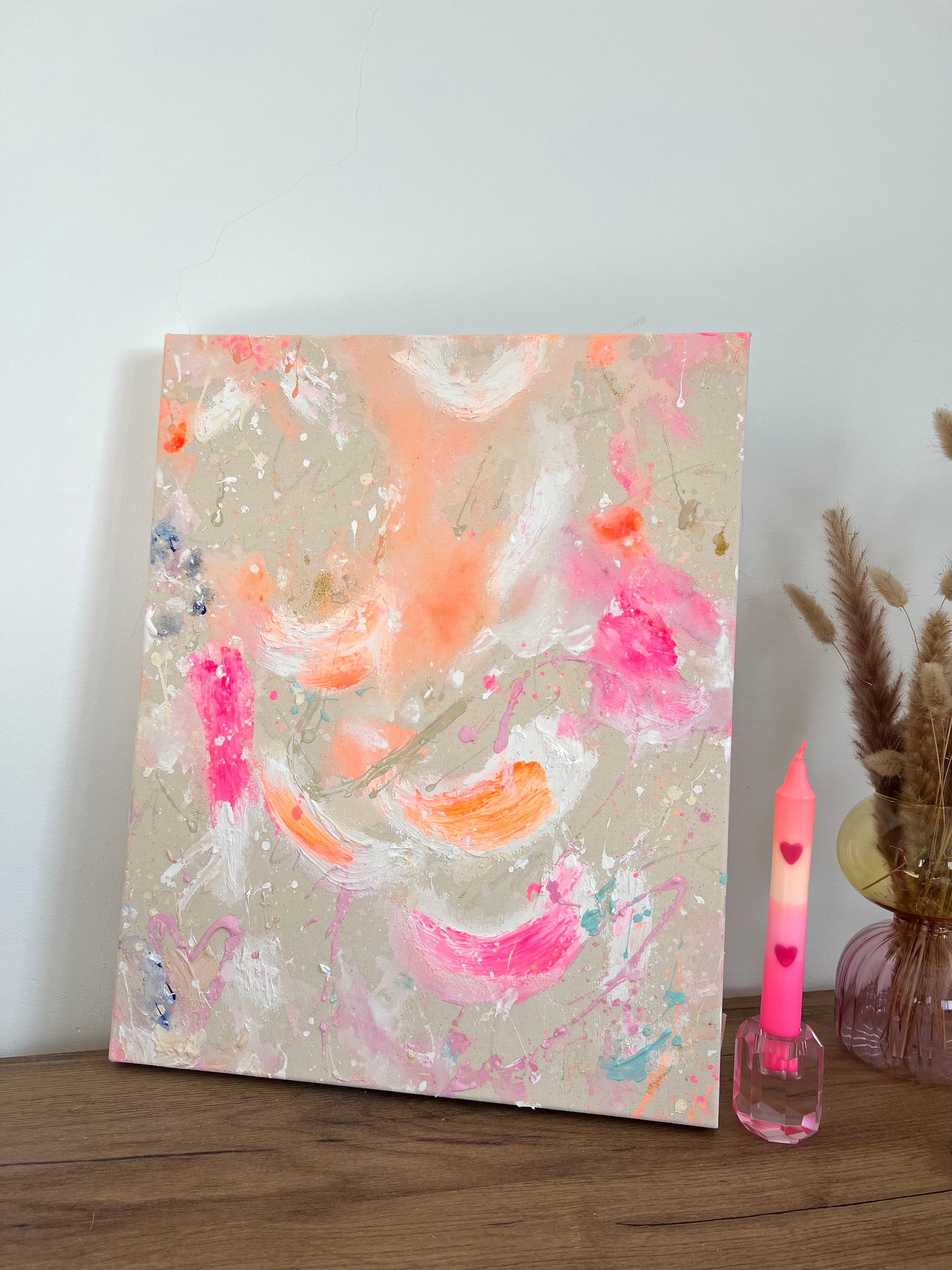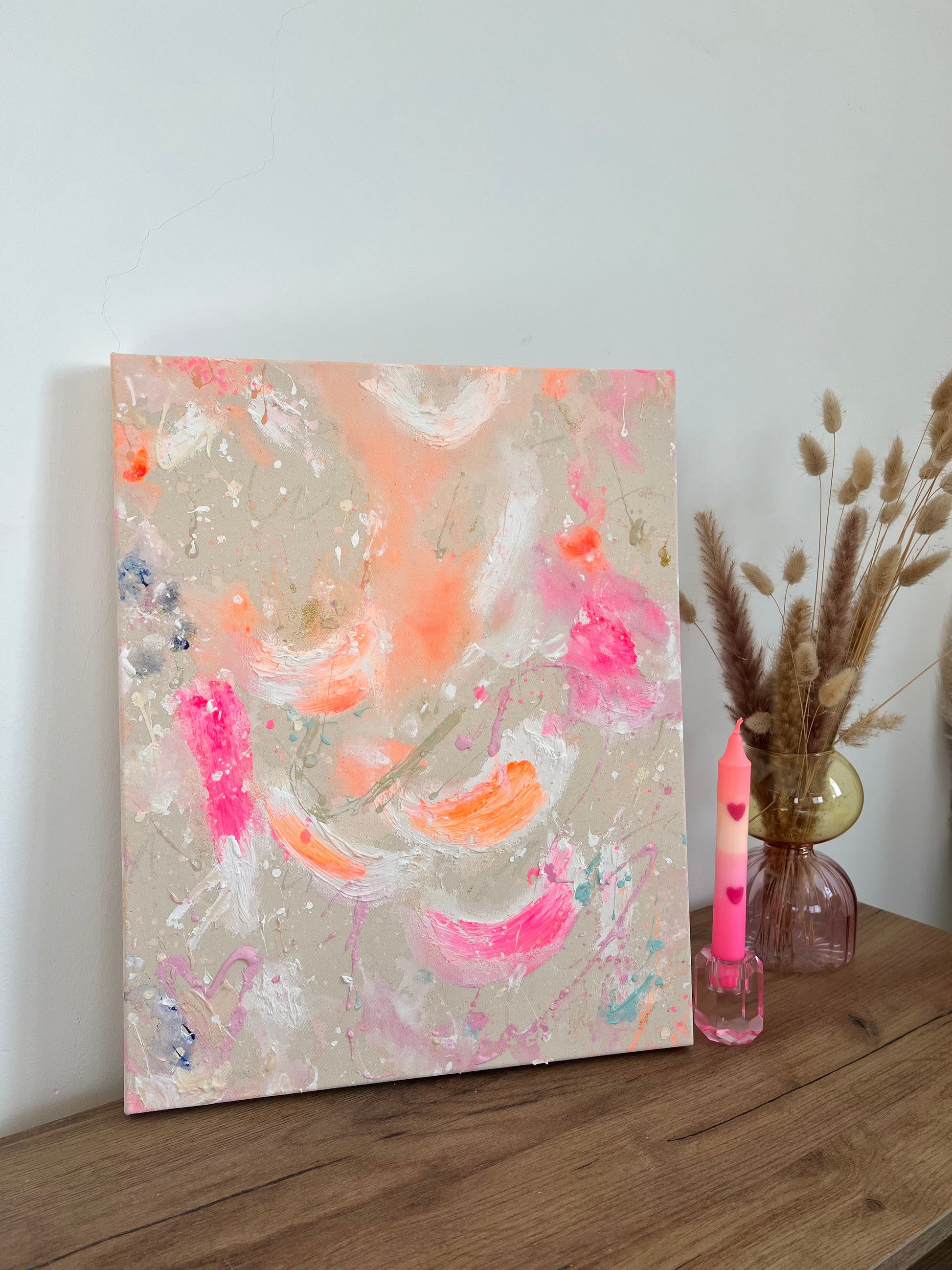 Handgemaltes Acrylgemälde auf Leinwand, inkl. Schattenfugenrahmen in transparentem Acrylglas