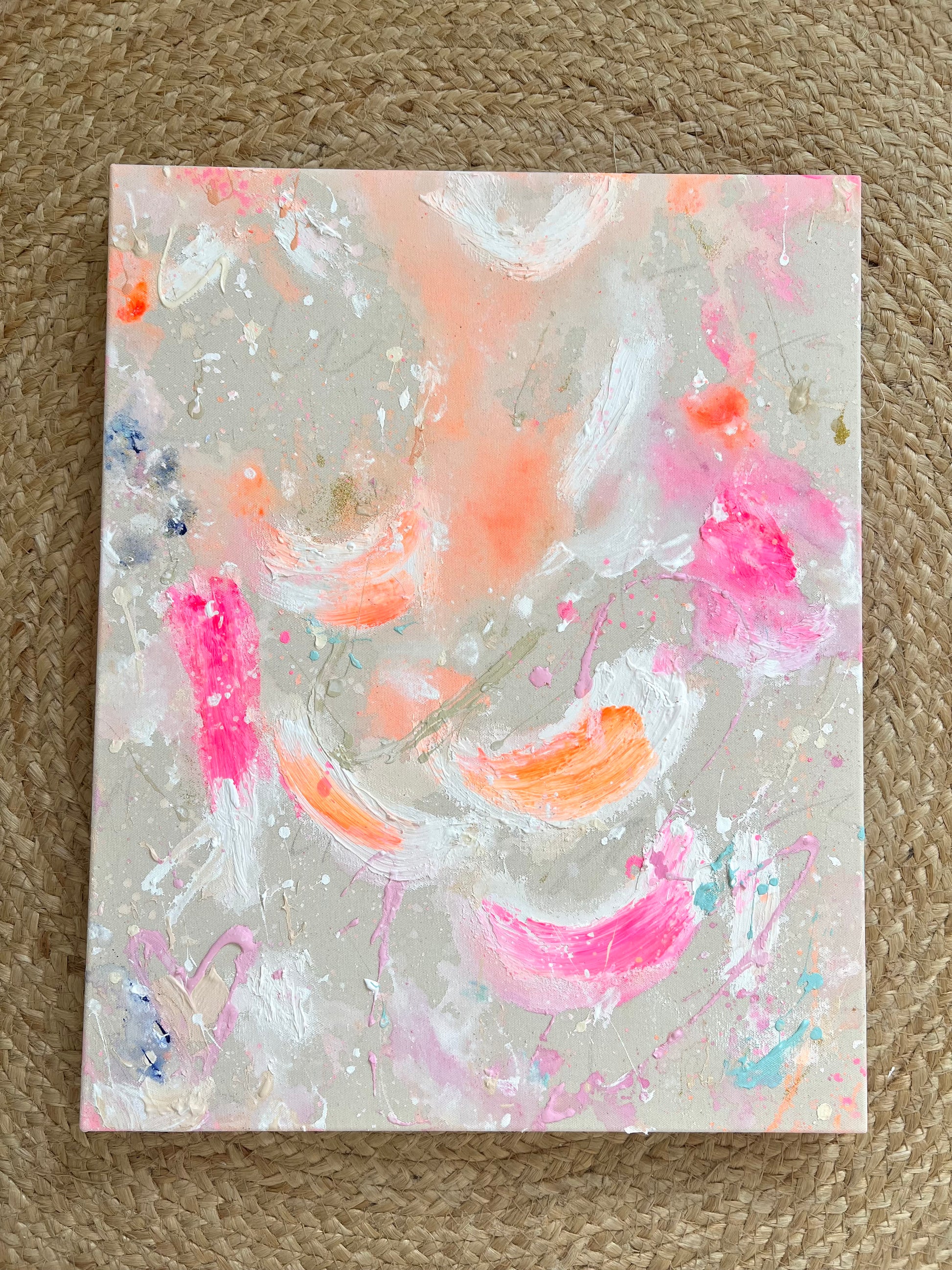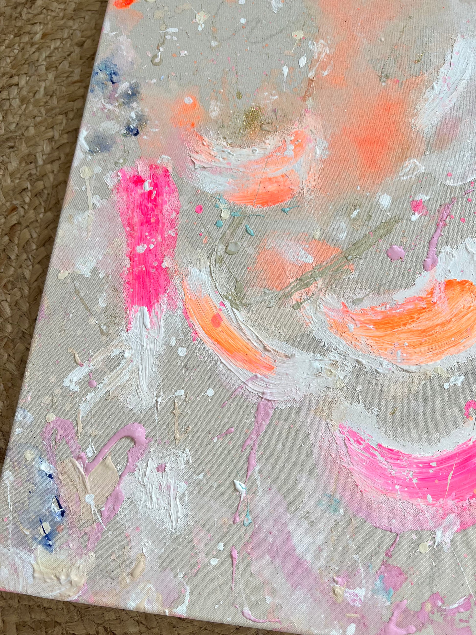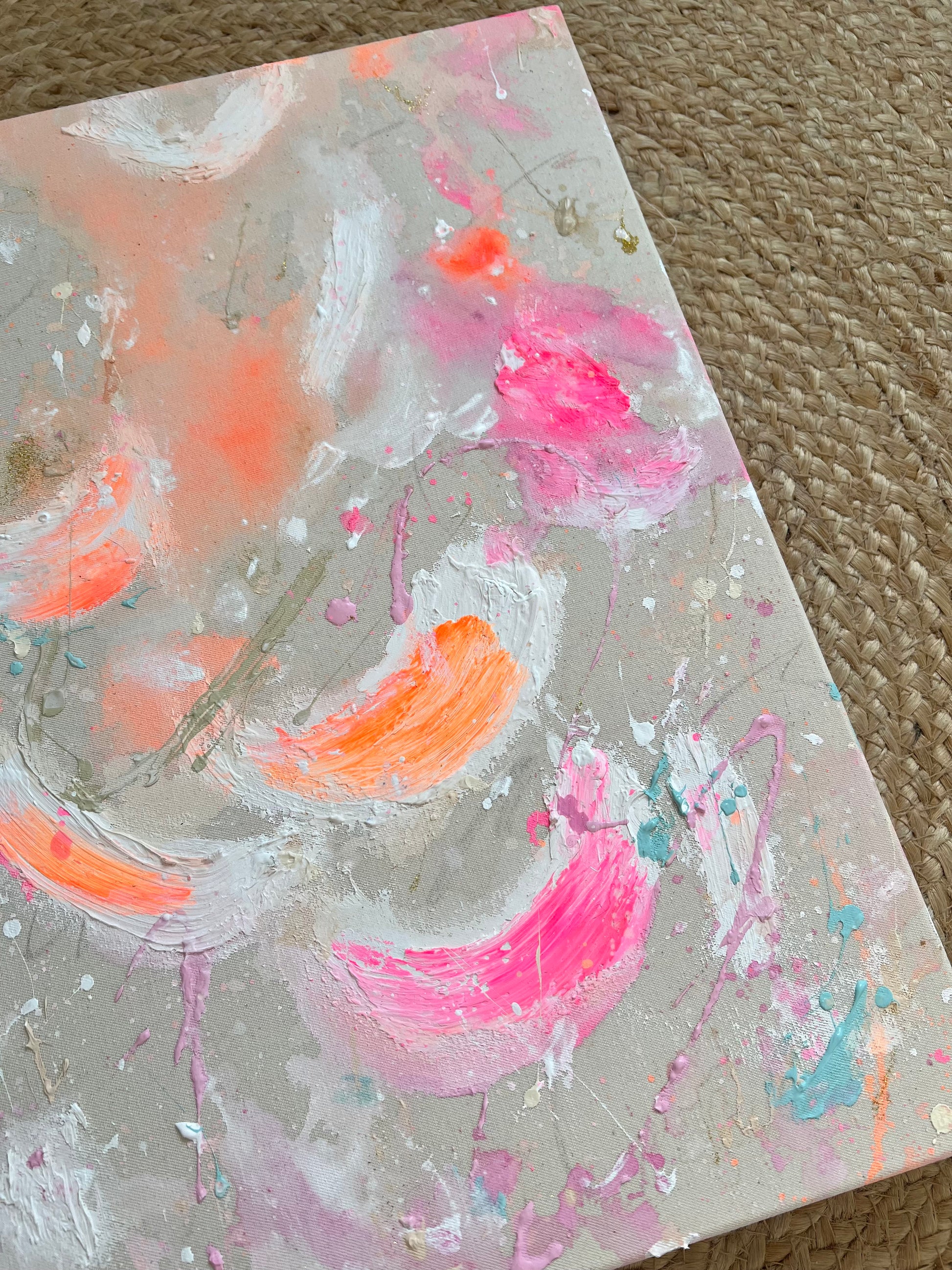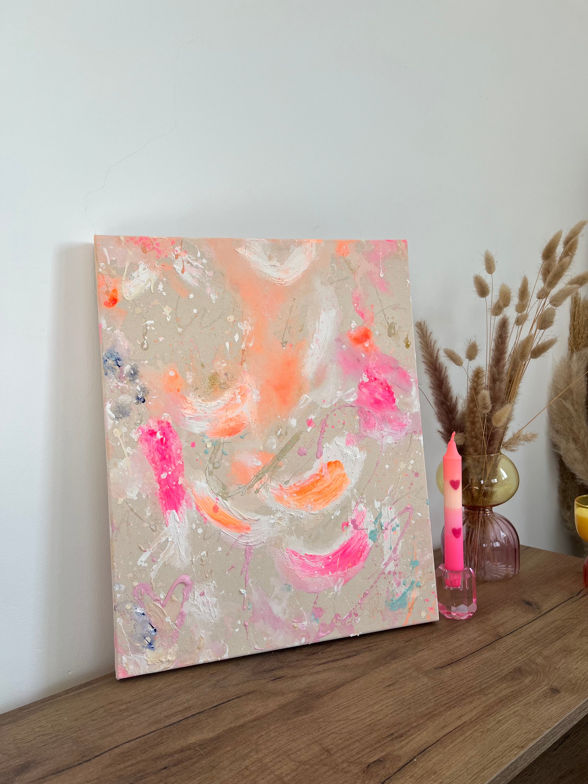 Handgemaltes Acrylgemälde auf Leinwand, inkl. Schattenfugenrahmen in transparentem Acrylglas