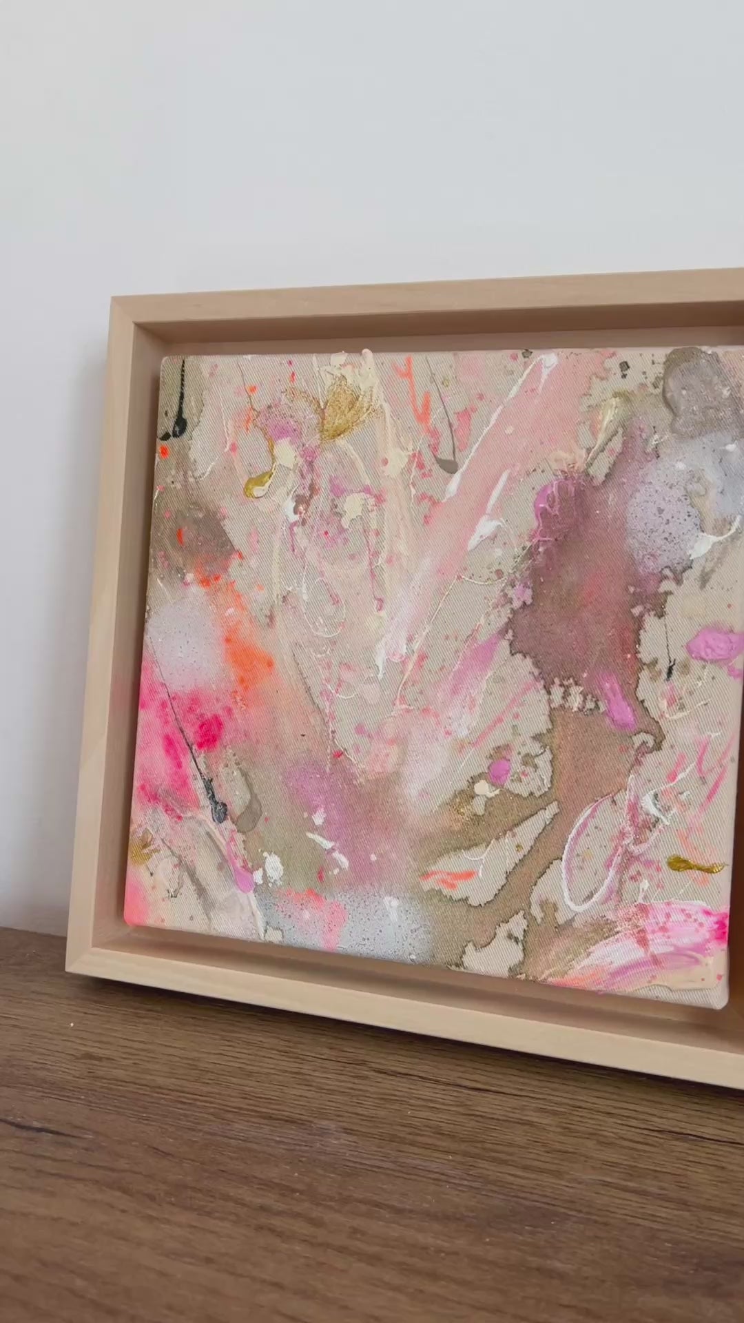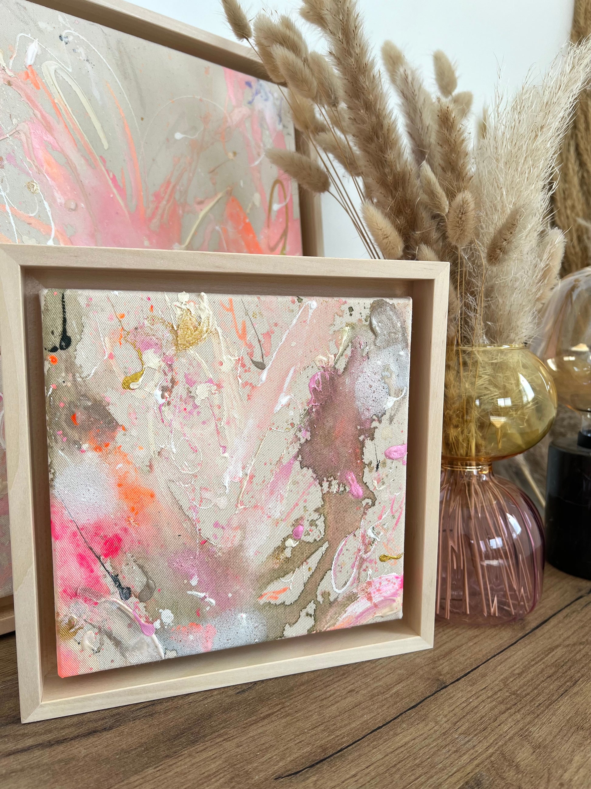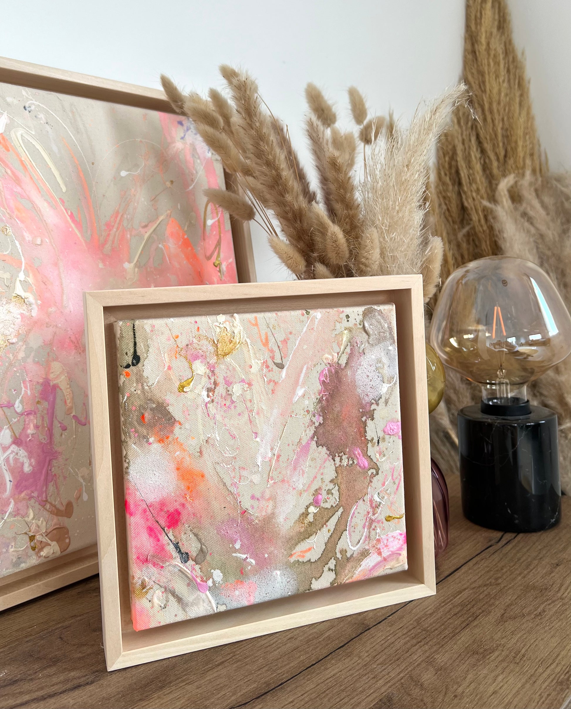 Hand-painted acrylic painting on canvas including shadow gap frame in linden wood