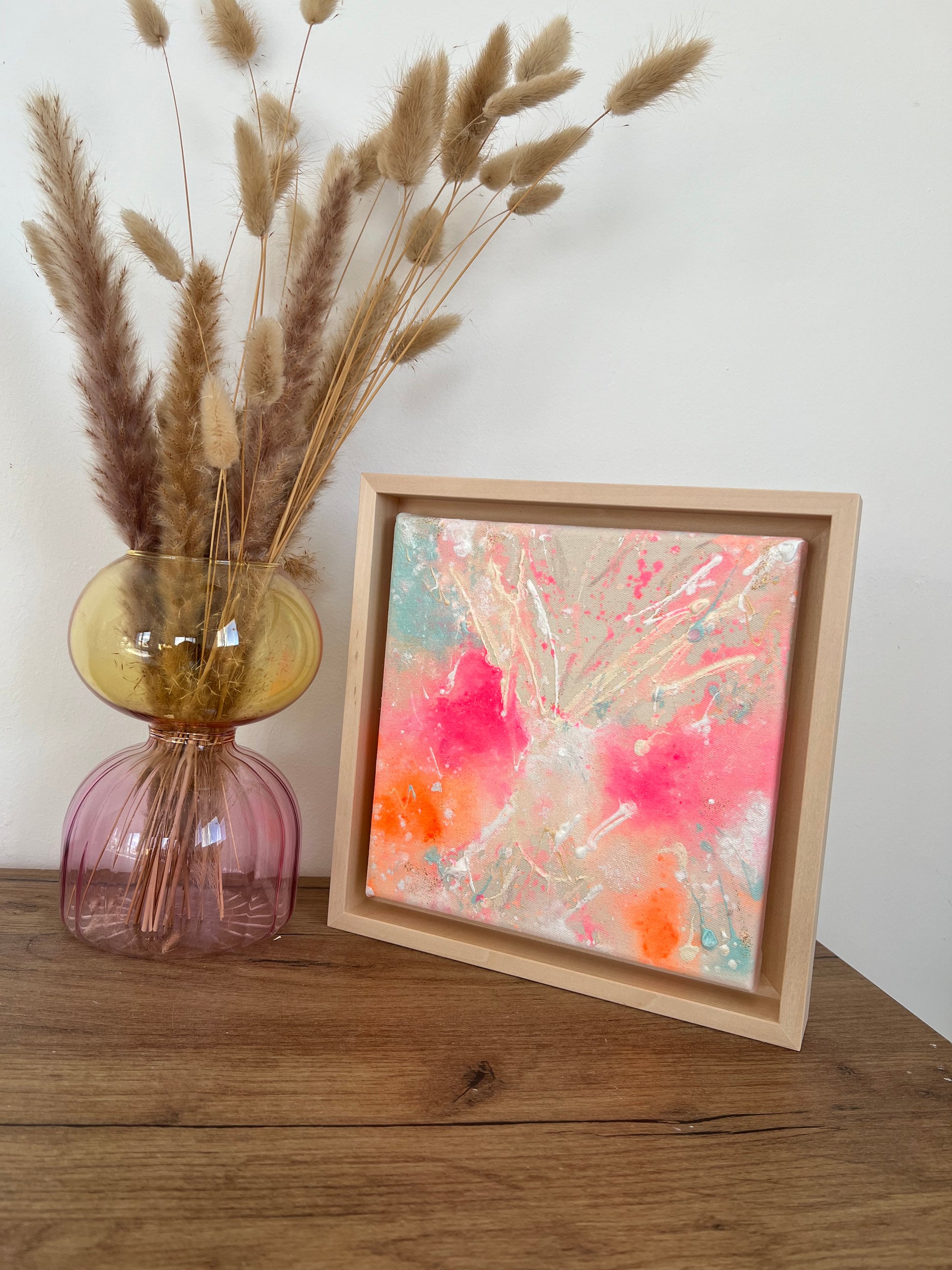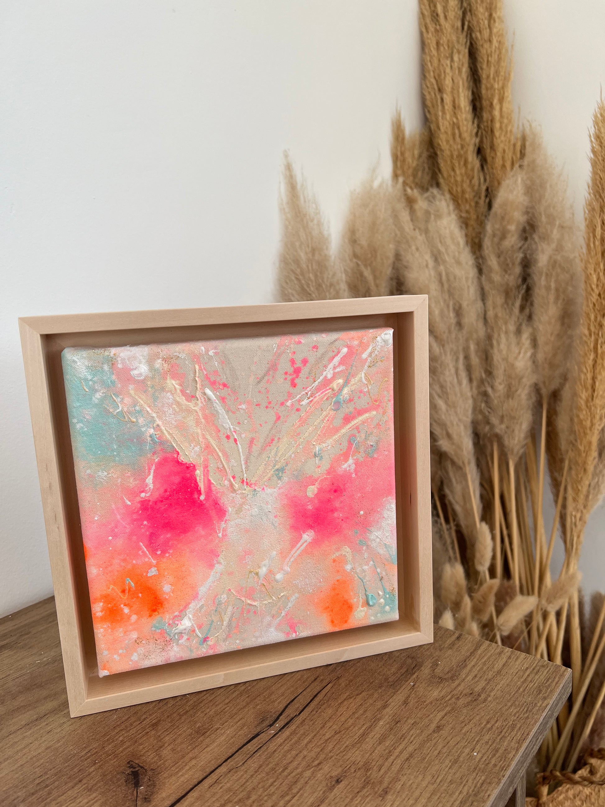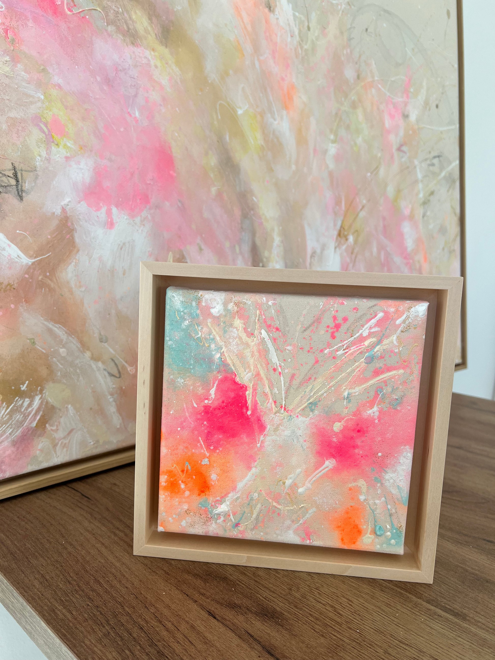 Handgemaltes Acrylgemälde auf Leinwand, inkl. Schattenfugenrahmen aus Lindenholz