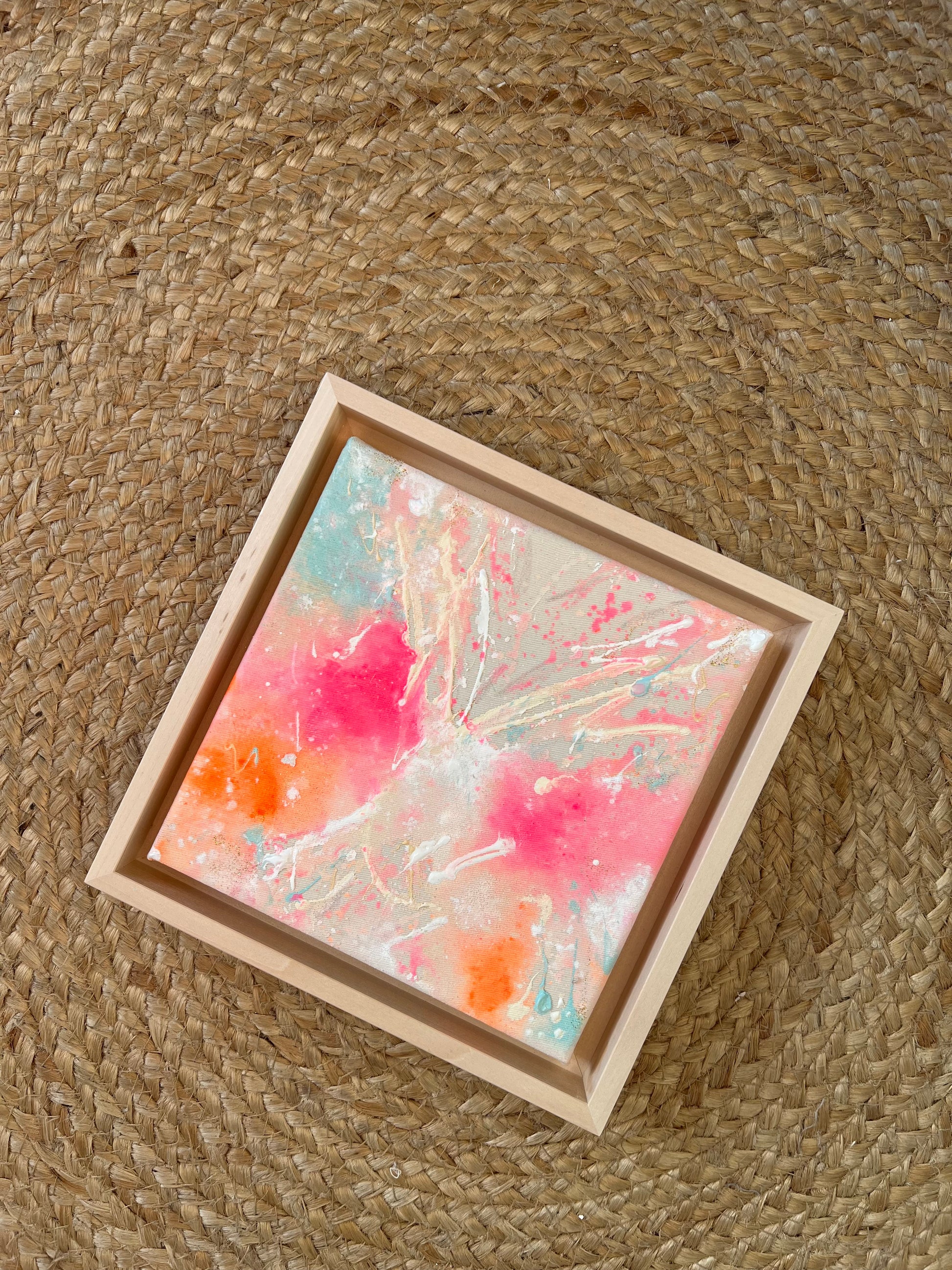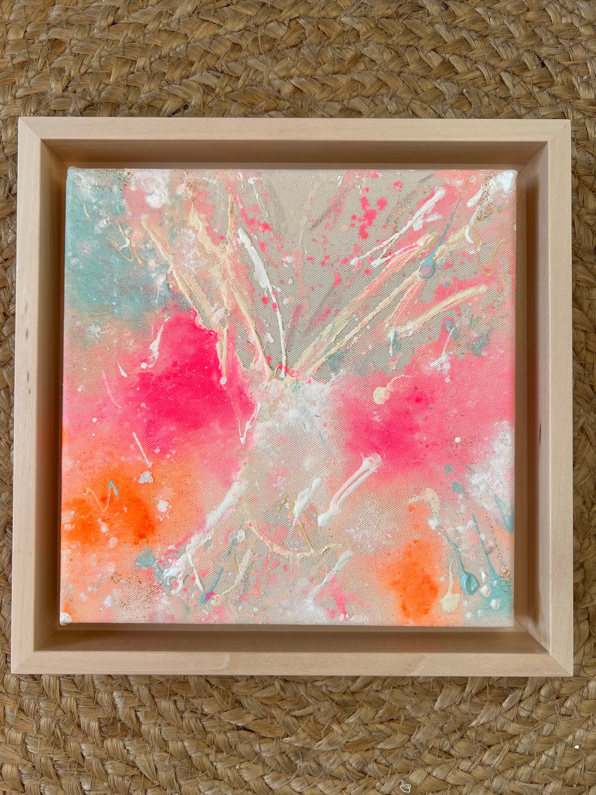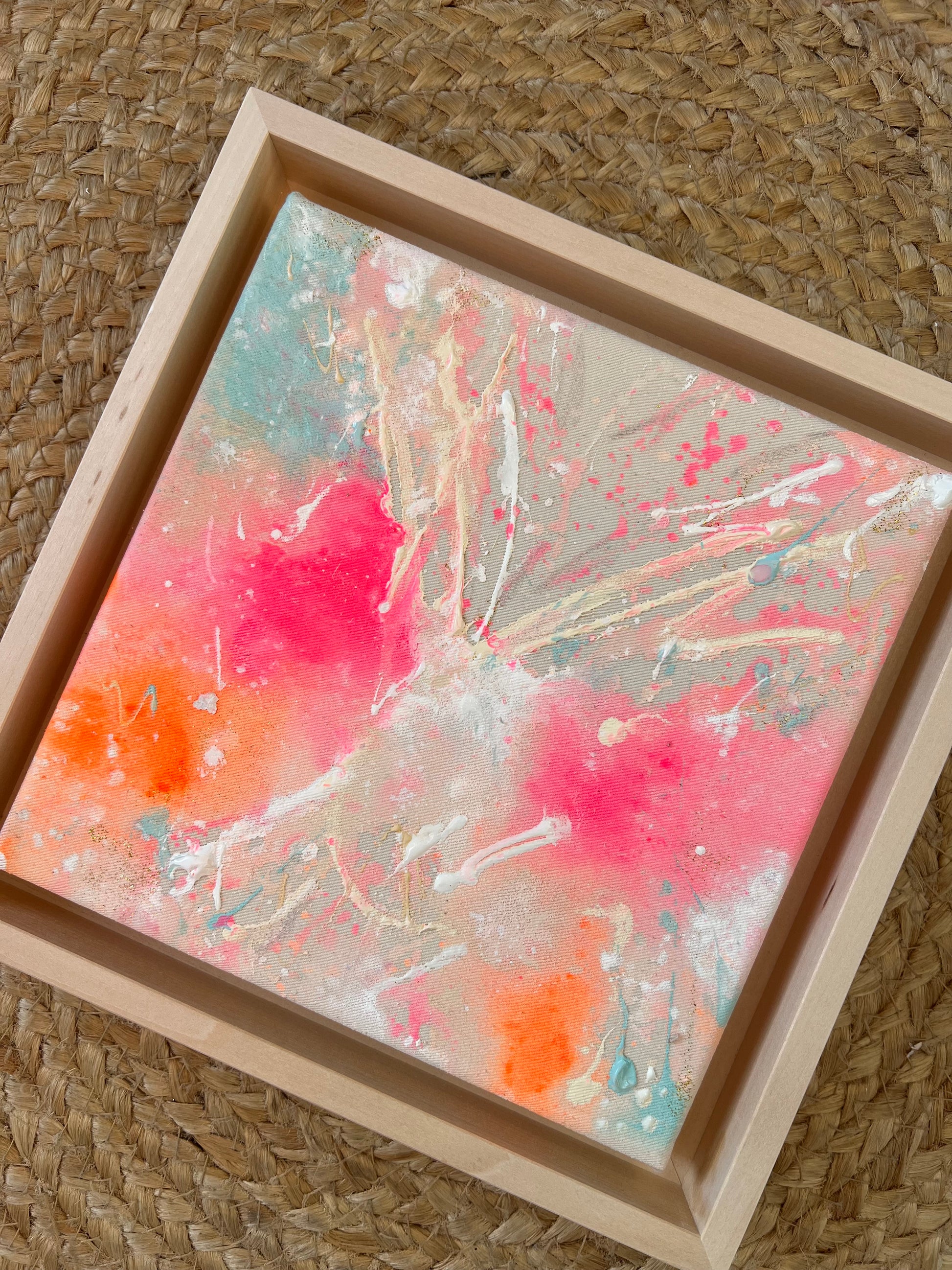 Handgemaltes Acrylgemälde auf Leinwand, inkl. Schattenfugenrahmen aus Lindenholz