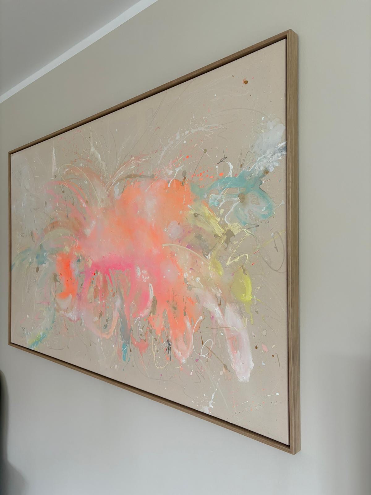 Danke für das Vorbeibringen von meinem Bild! Es passt super, an die vorgesehene Stelle. Dein gemaltes Bild sieht absolut fabelhaft aus. Die Leichtigkeit, die das Bild selbst ausstrahlt, ist es so schön wärmend und gleichzeitig übertragend.