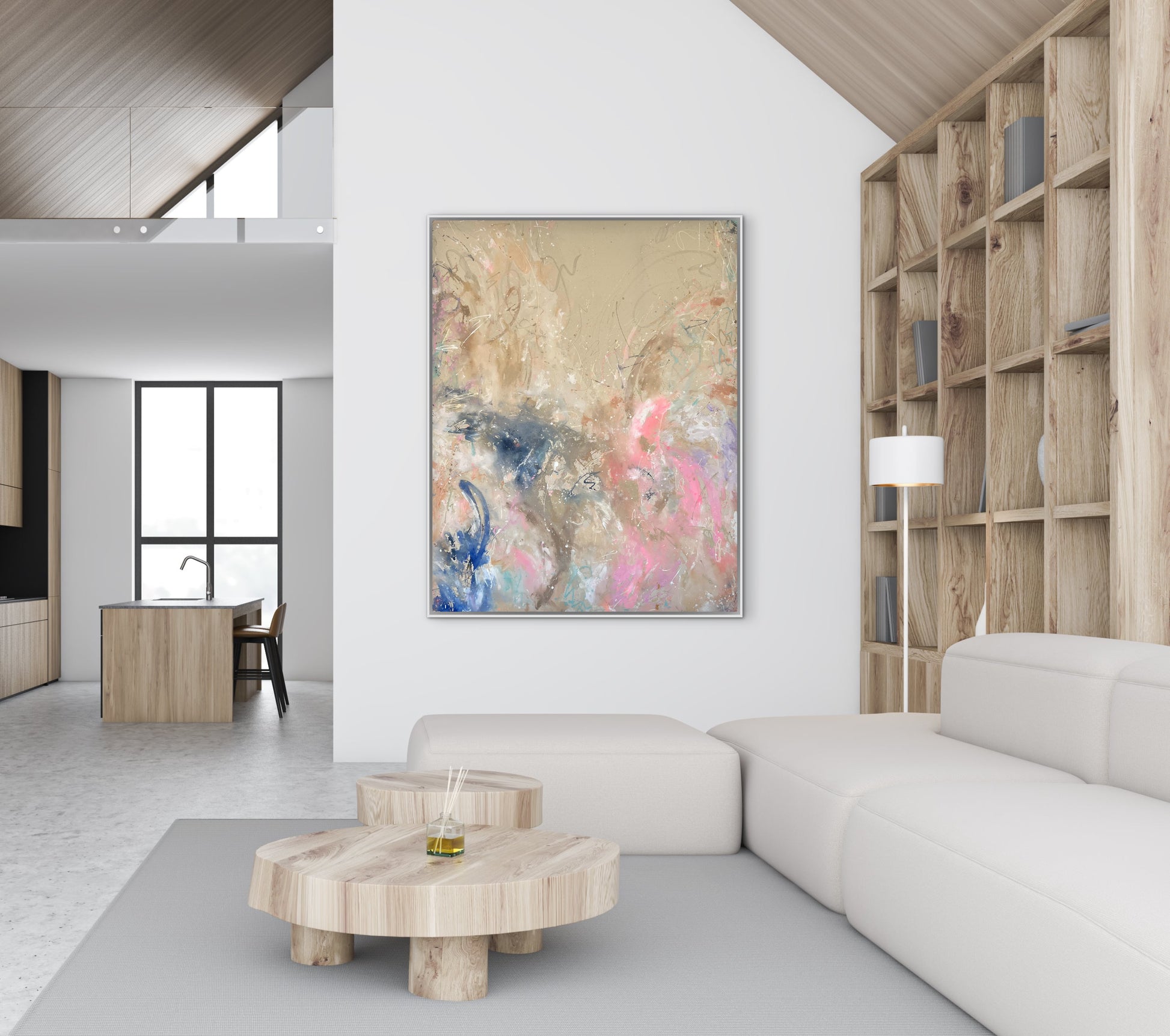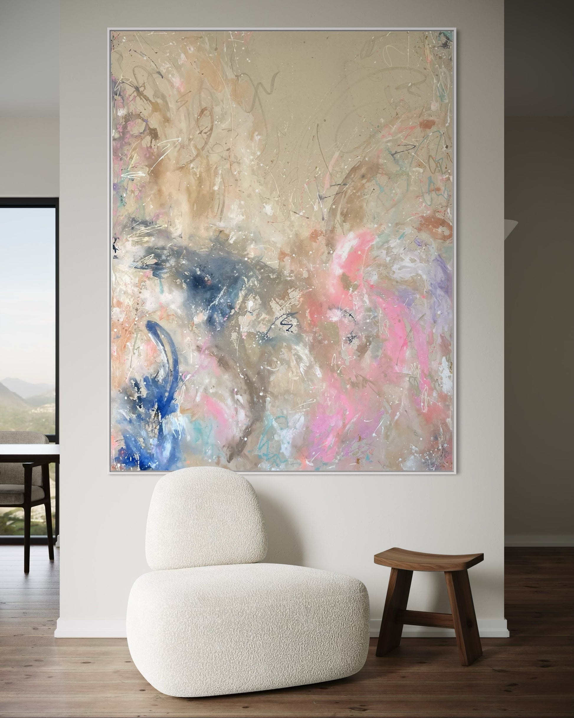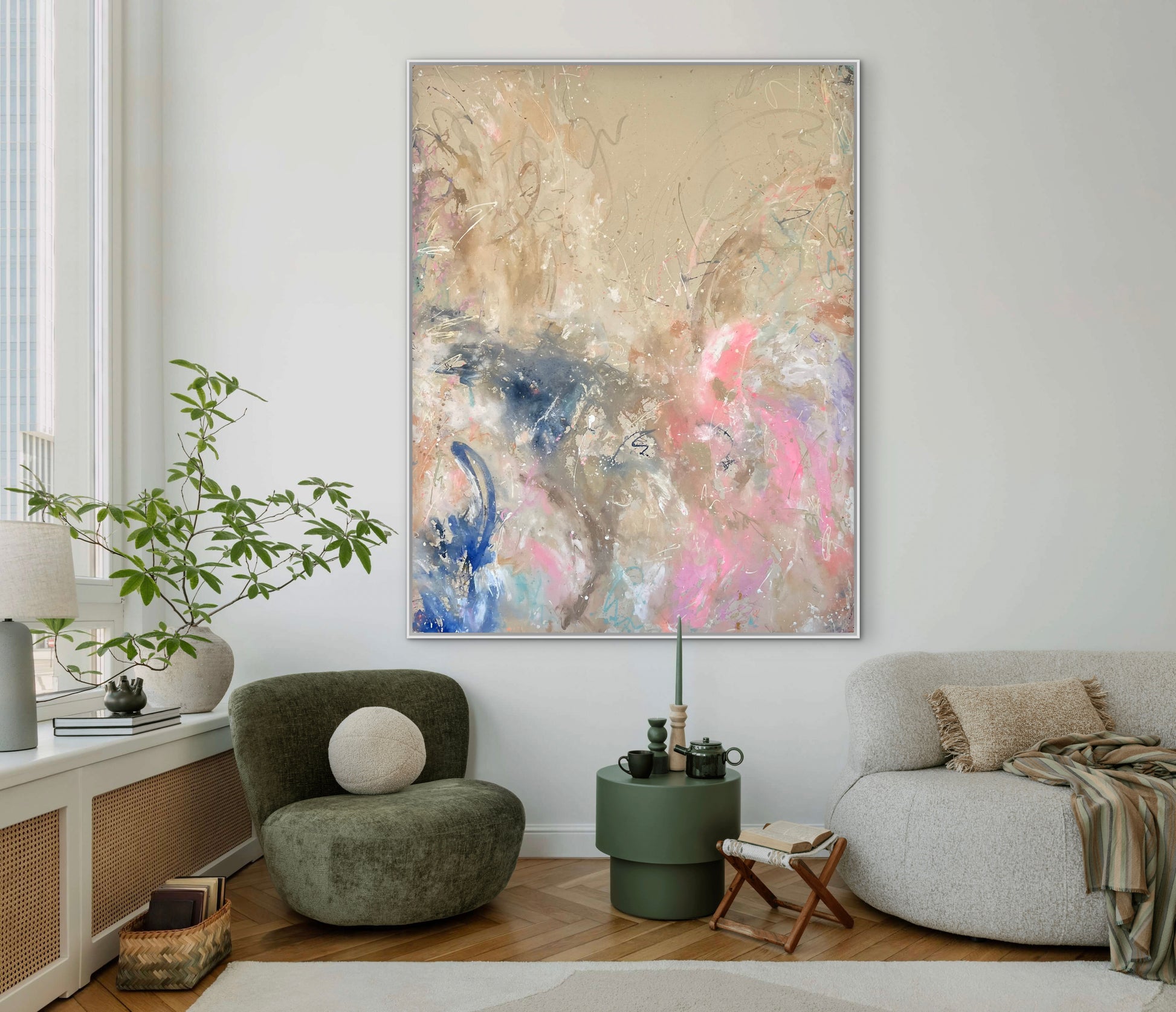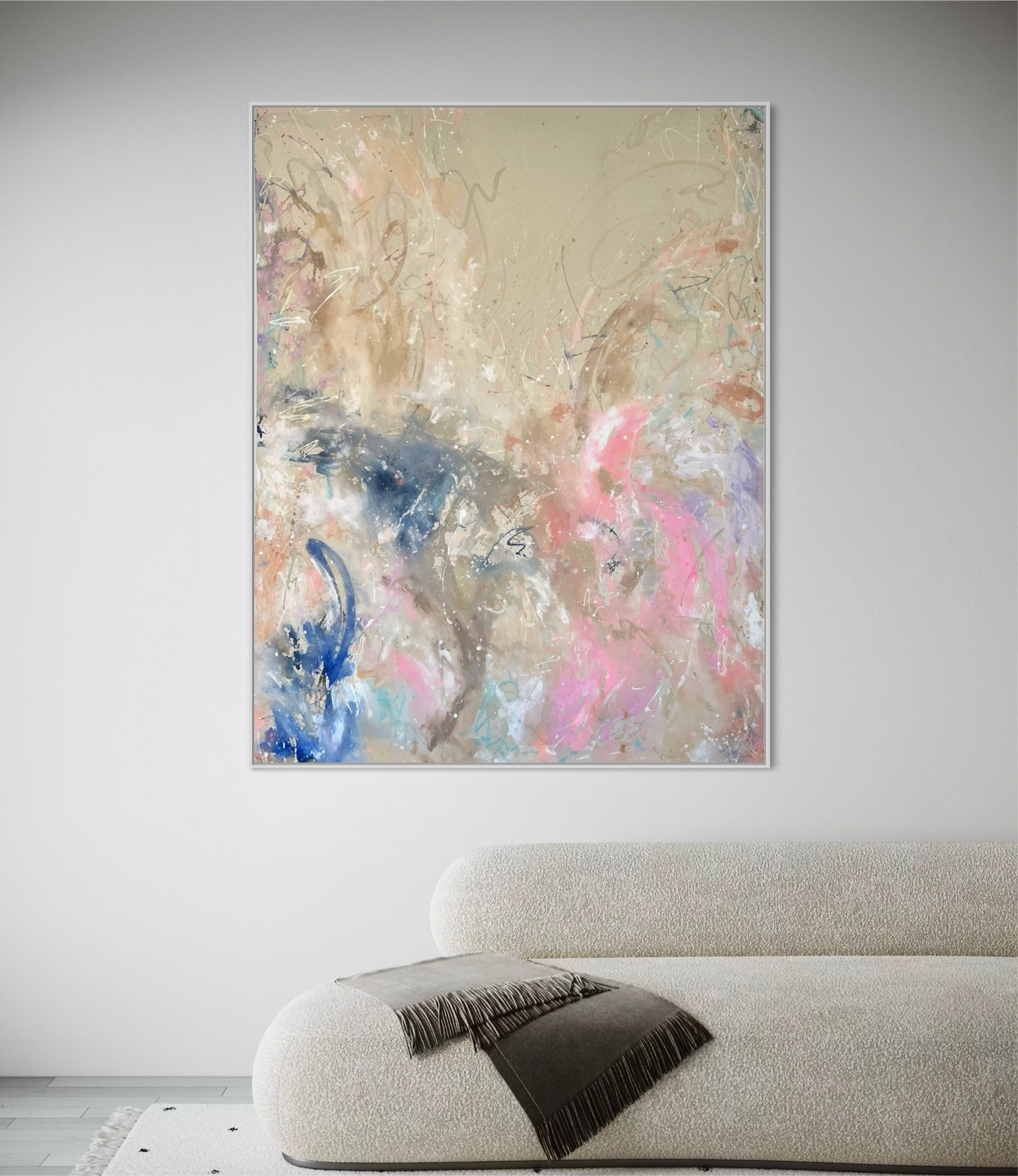 Hand-painted acrylic painting on canvas, including shadow gap frame made of oak wood or in white