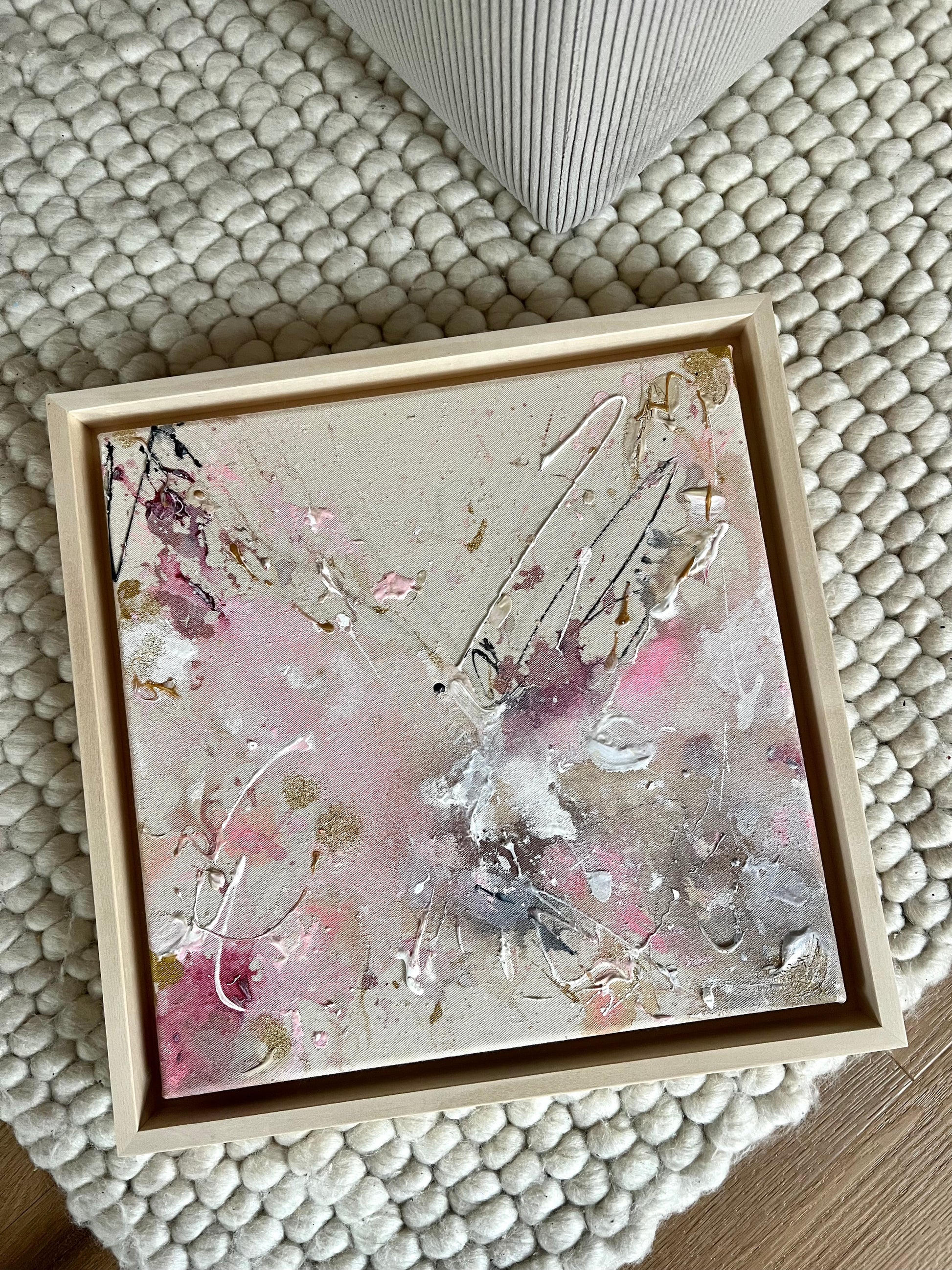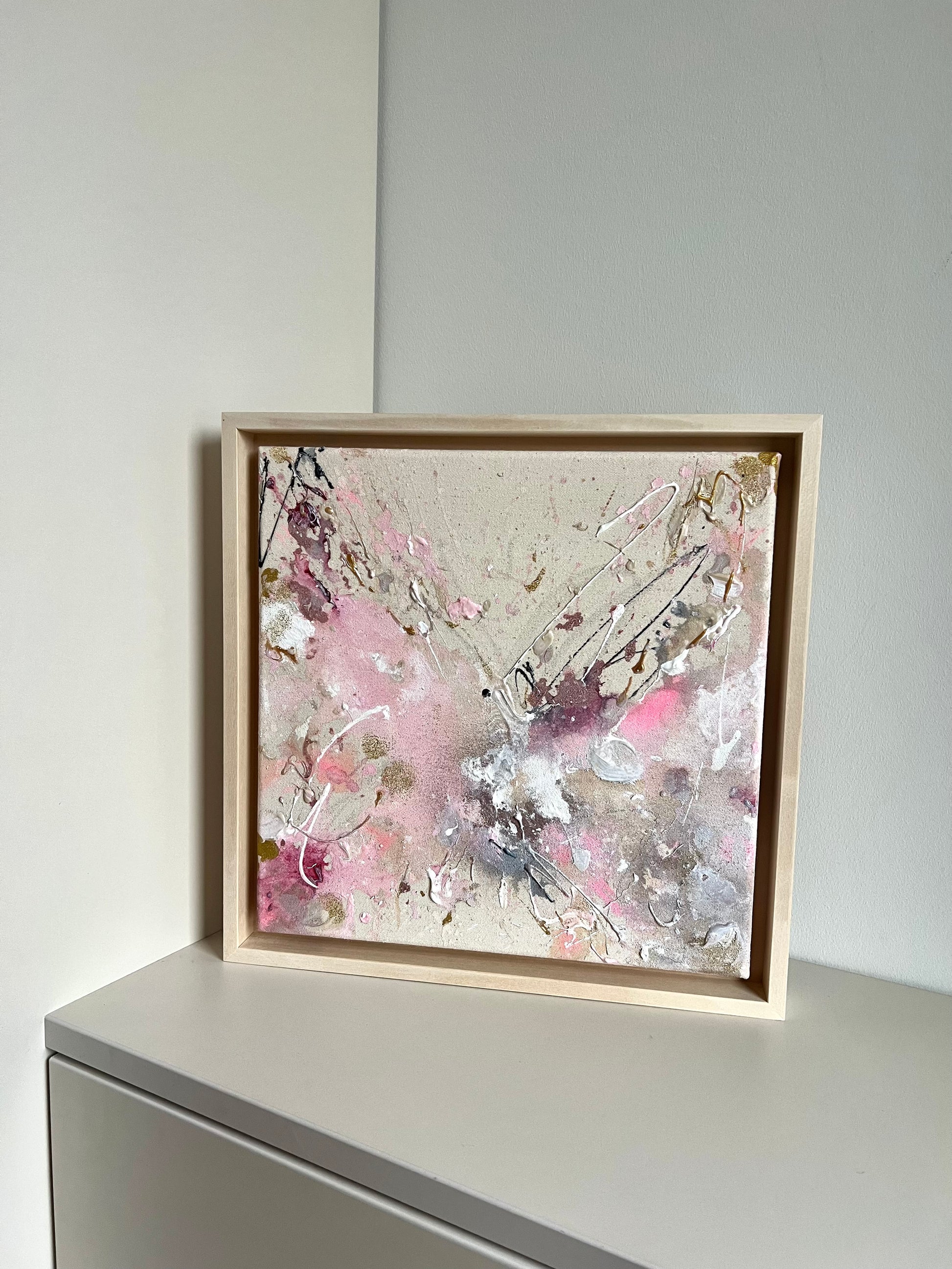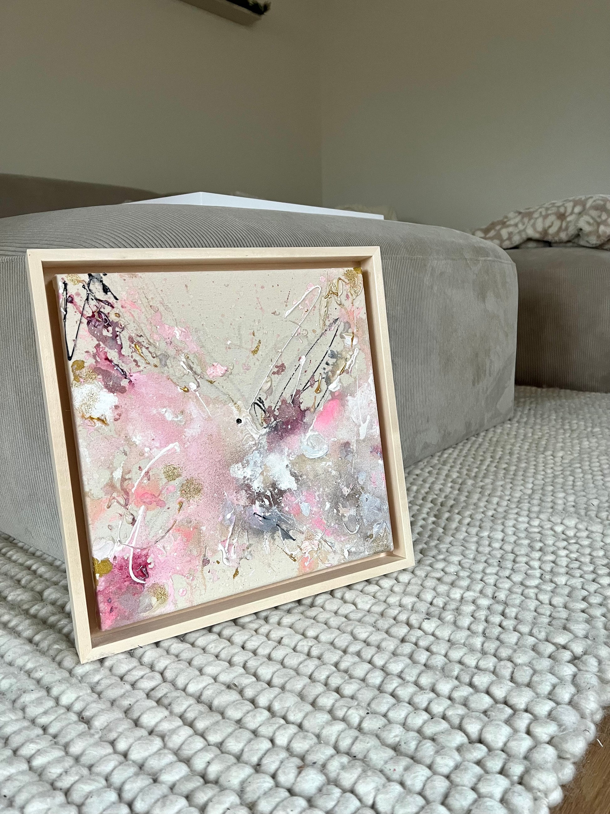 Handgemaltes Acrylgemälde auf Leinwand, inkl. Schattenfugenrahmen aus Lindenholz