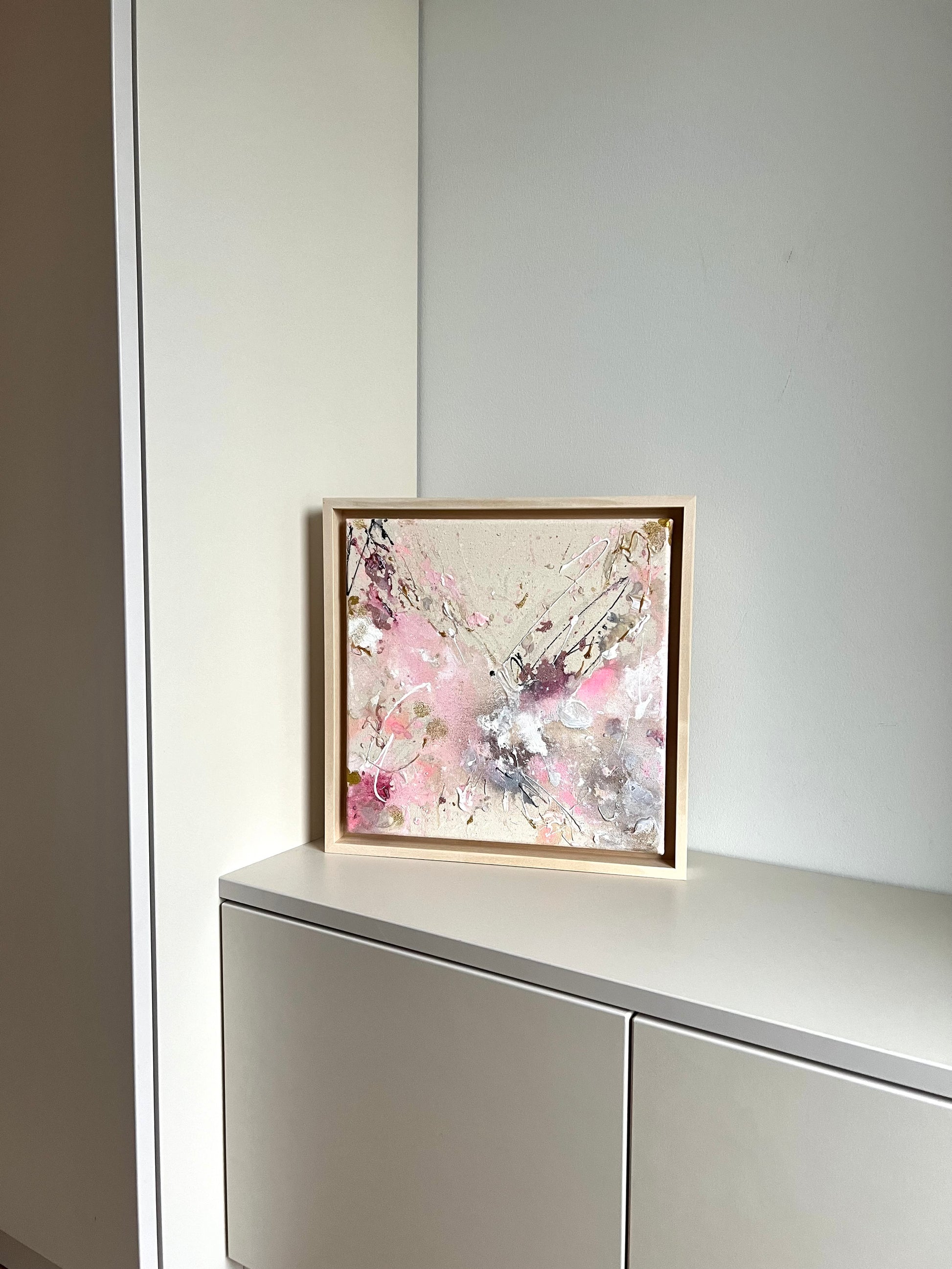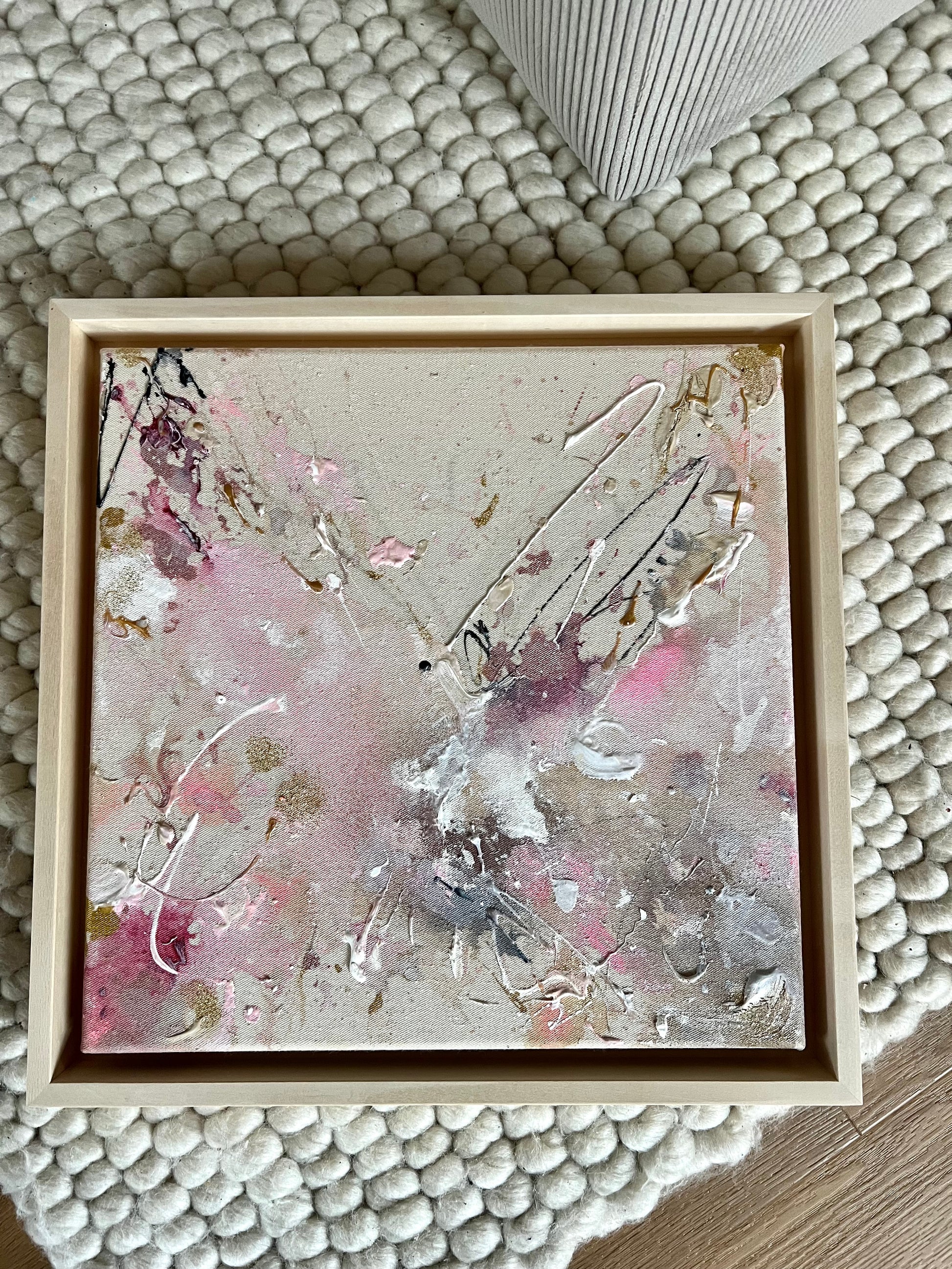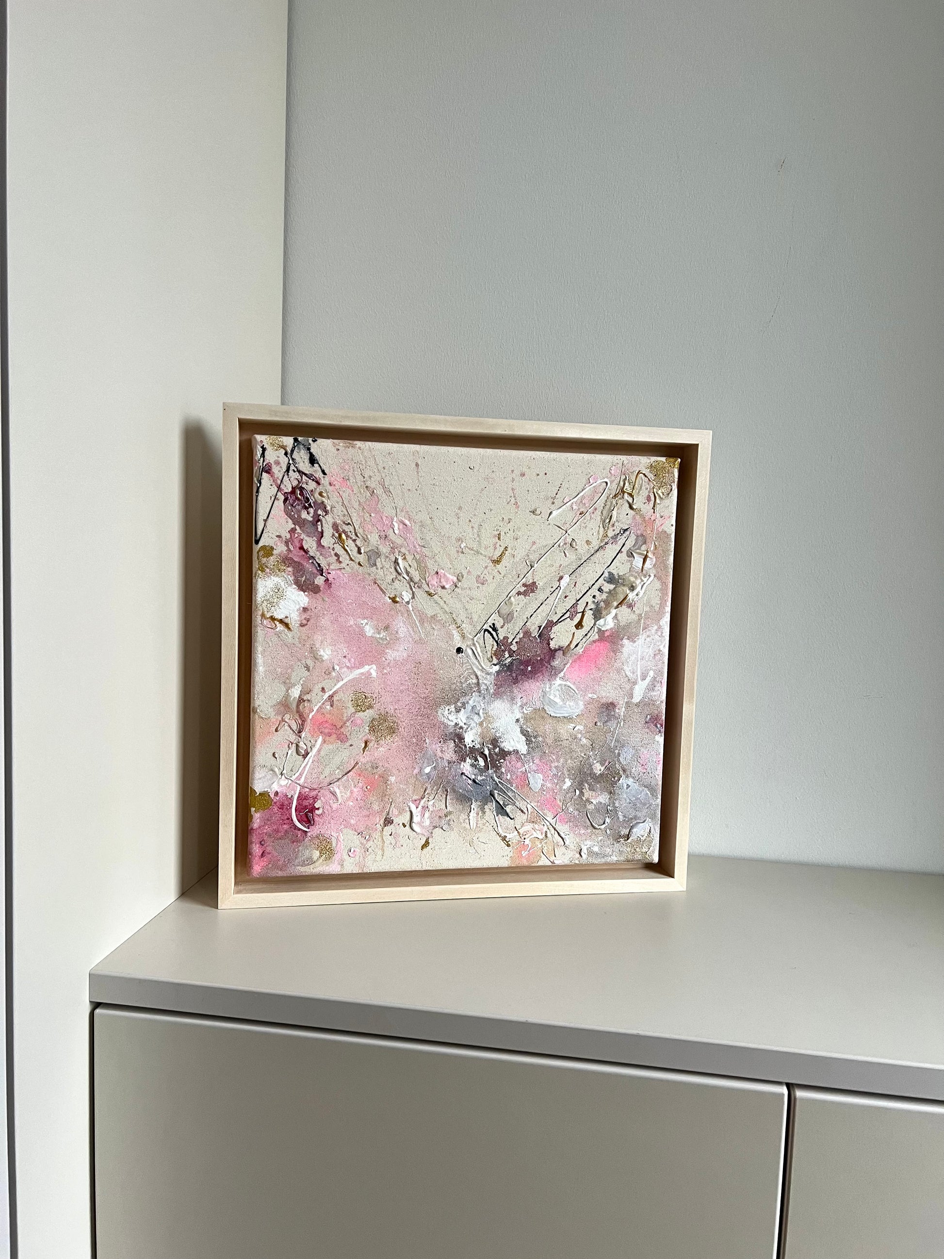 Handgemaltes Acrylgemälde auf Leinwand, inkl. Schattenfugenrahmen aus Lindenholz