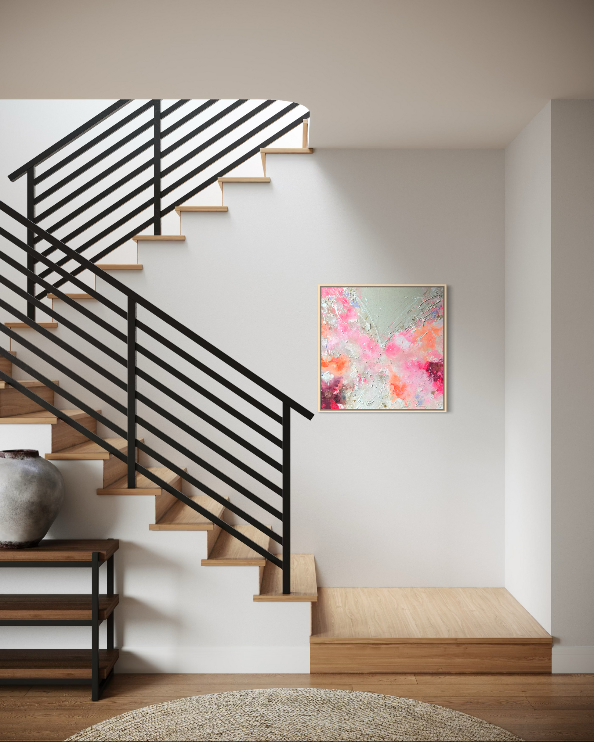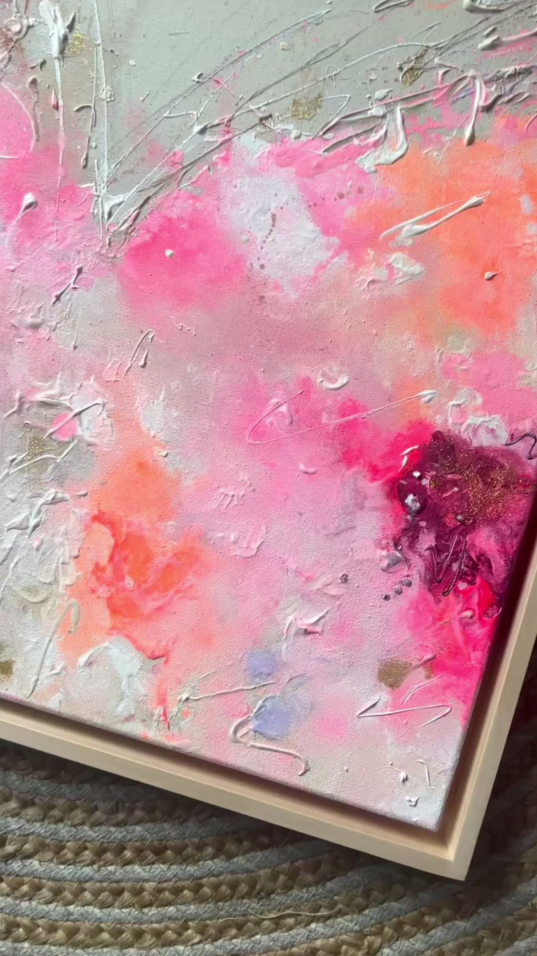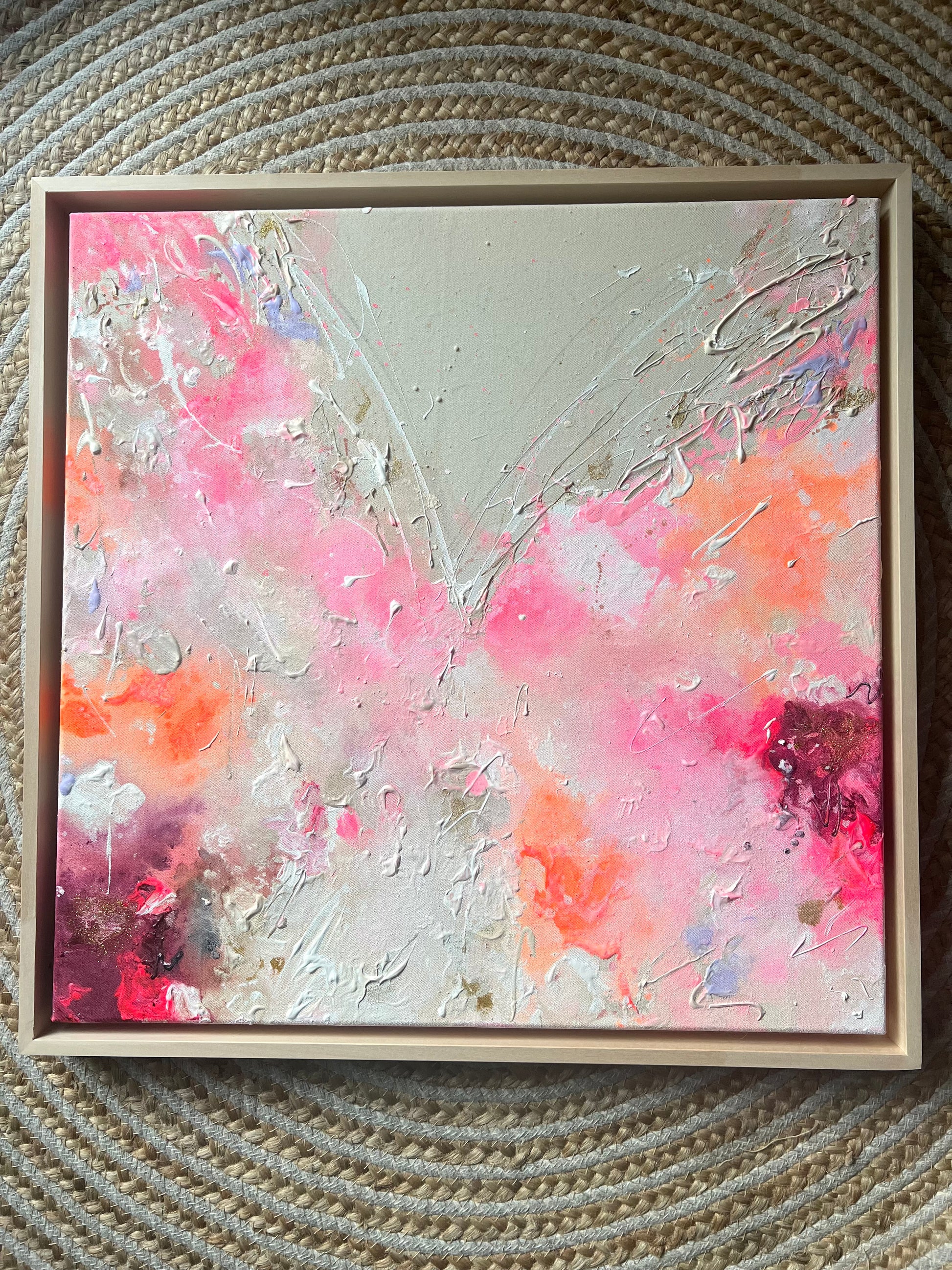 Handgemaltes Acrylgemälde auf Leinwand, inkl. Schattenfugenrahmen aus Lindenholz