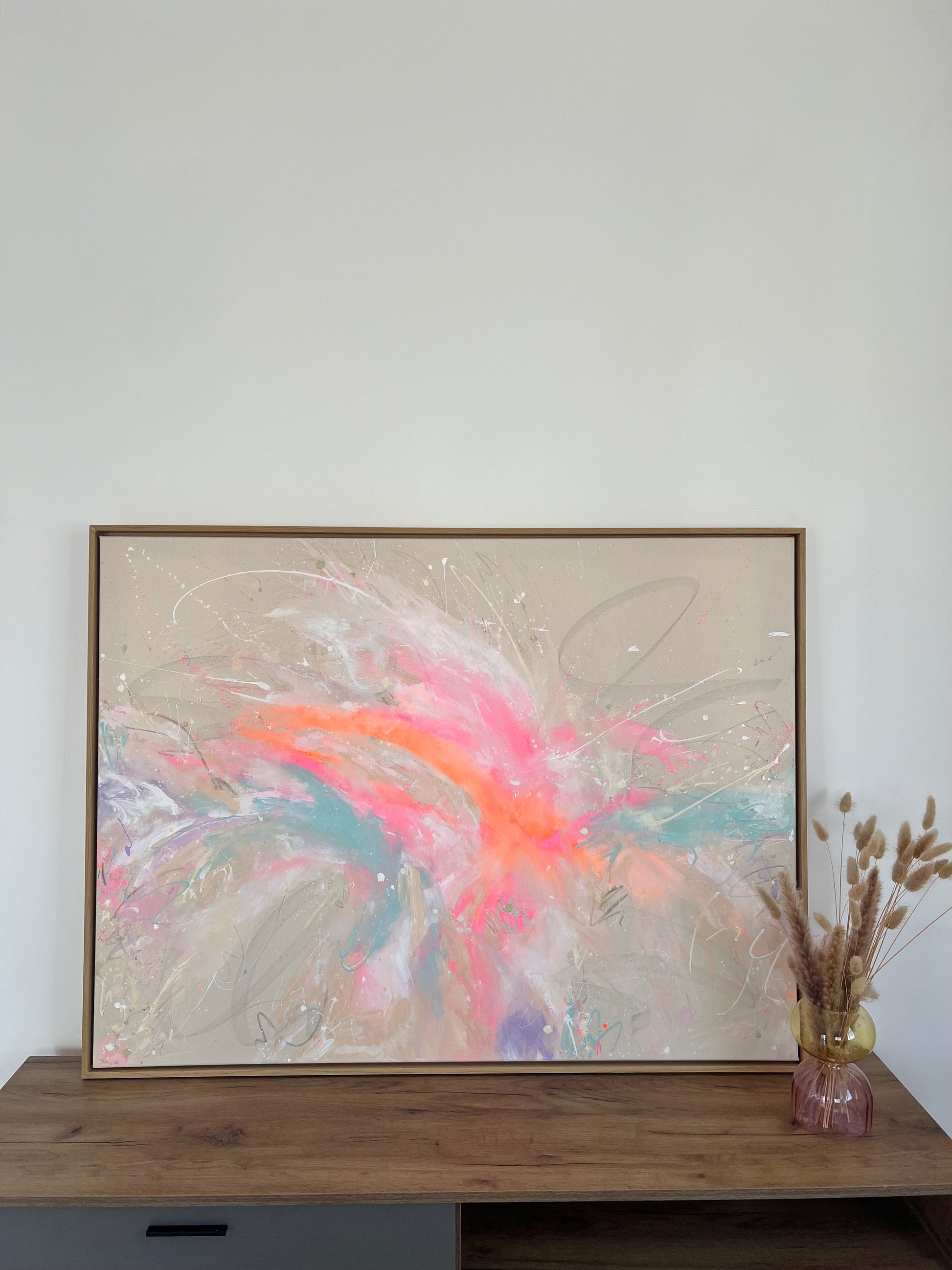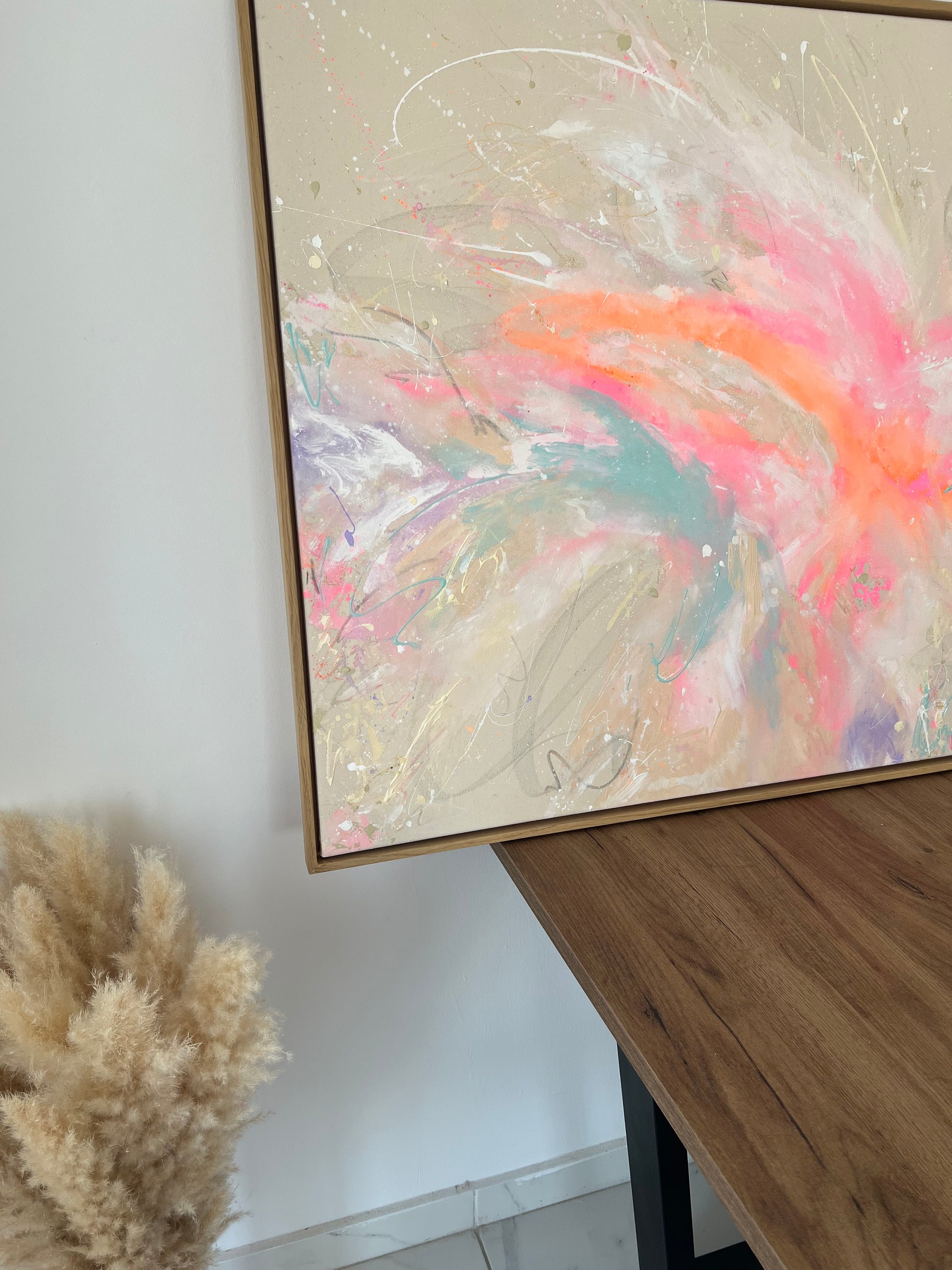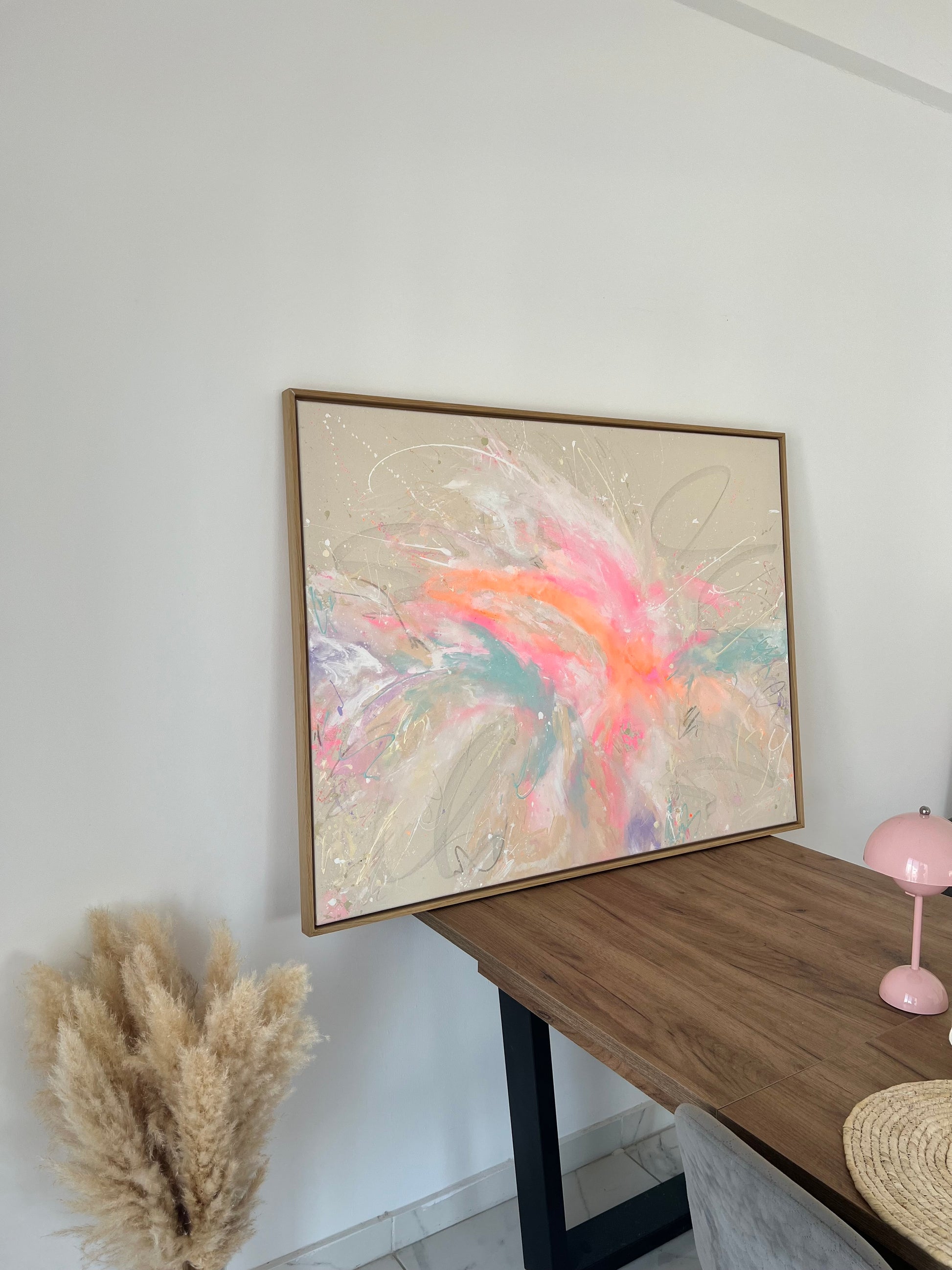 Handgemaltes Acrylgemälde auf Leinwand, inkl. Schattenfugenrahmen in Eichenholz oder in weiß