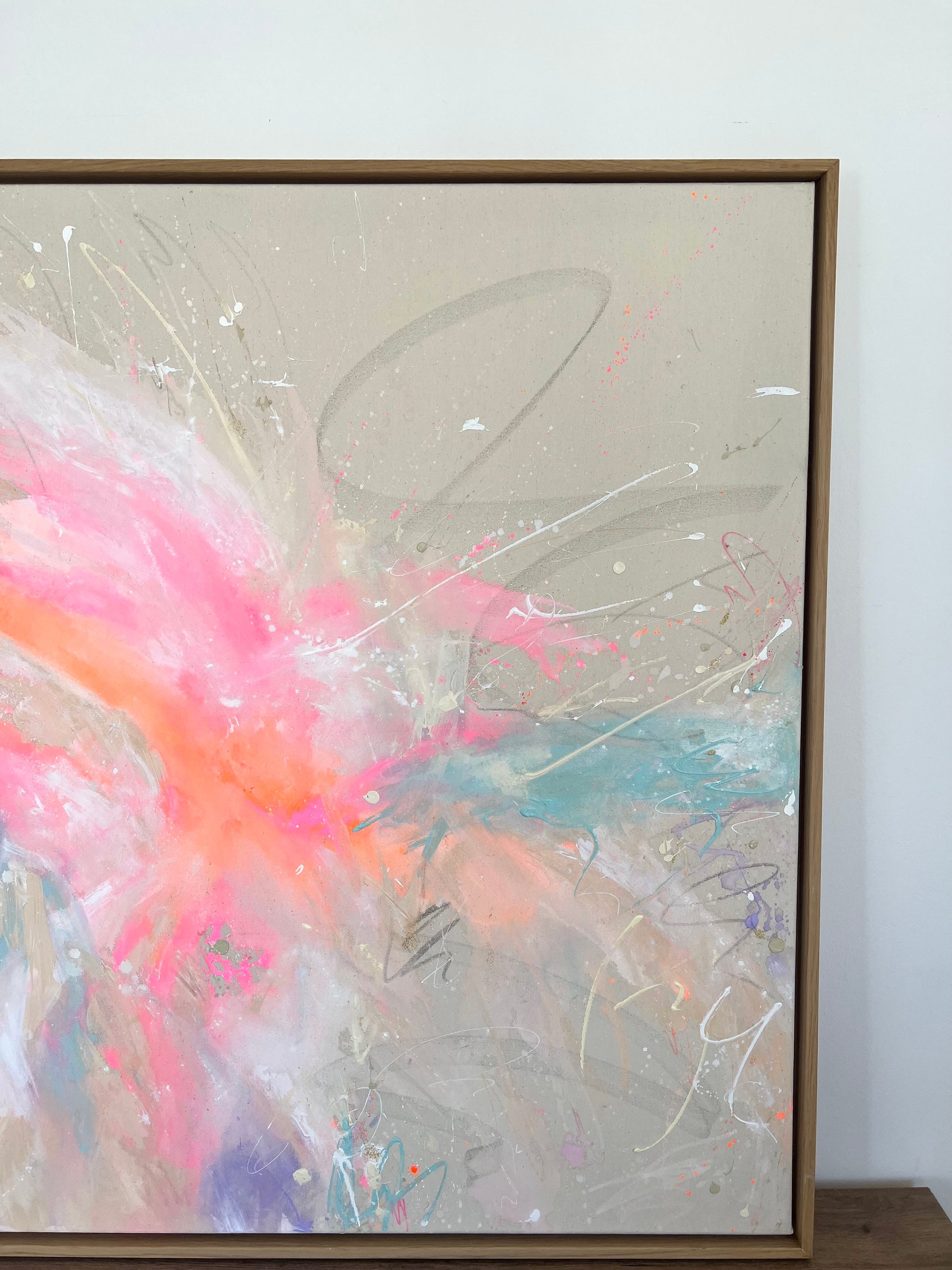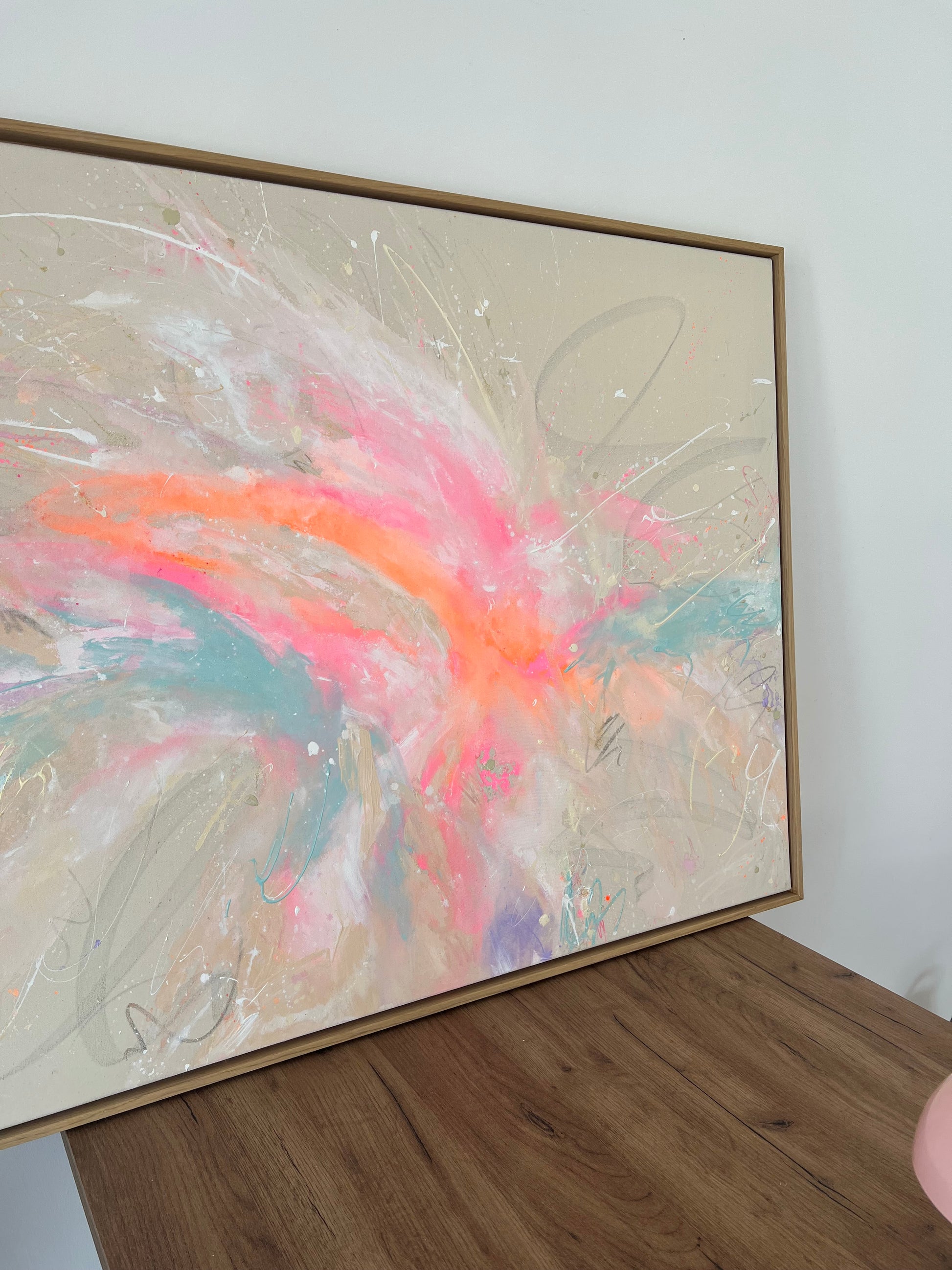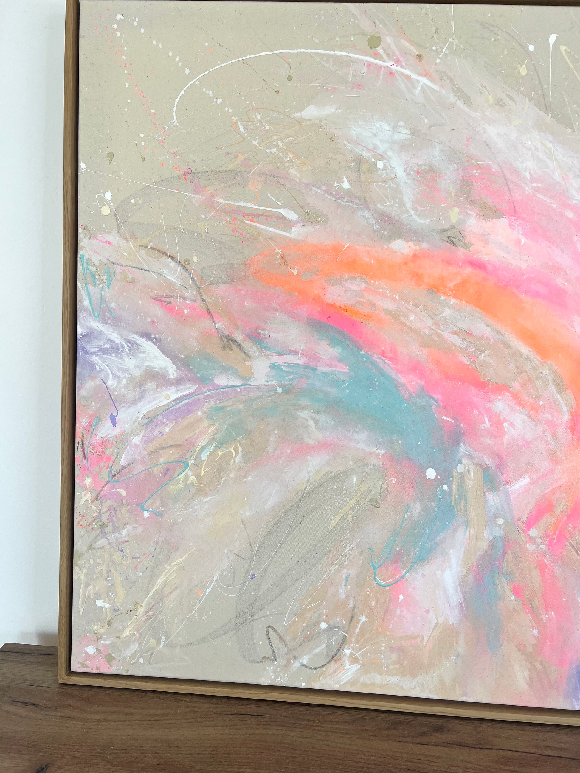 Handgemaltes Acrylgemälde auf Leinwand, inkl. Schattenfugenrahmen in Eichenholz oder in weiß