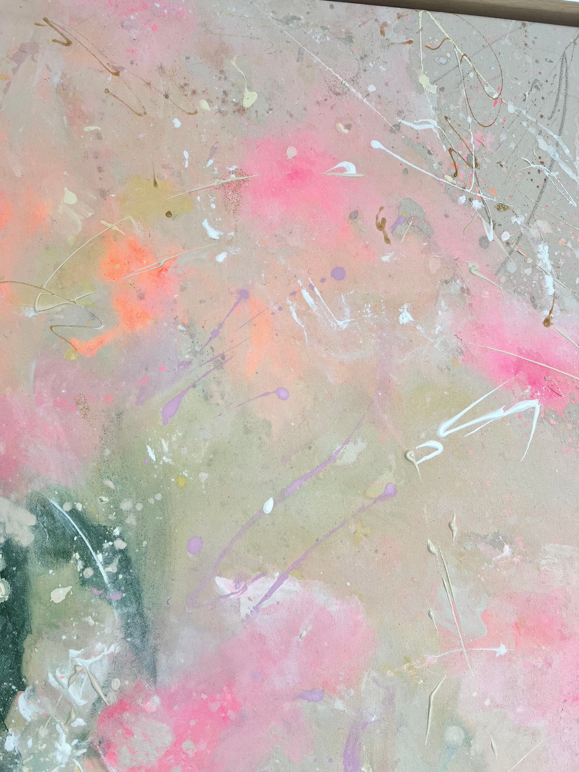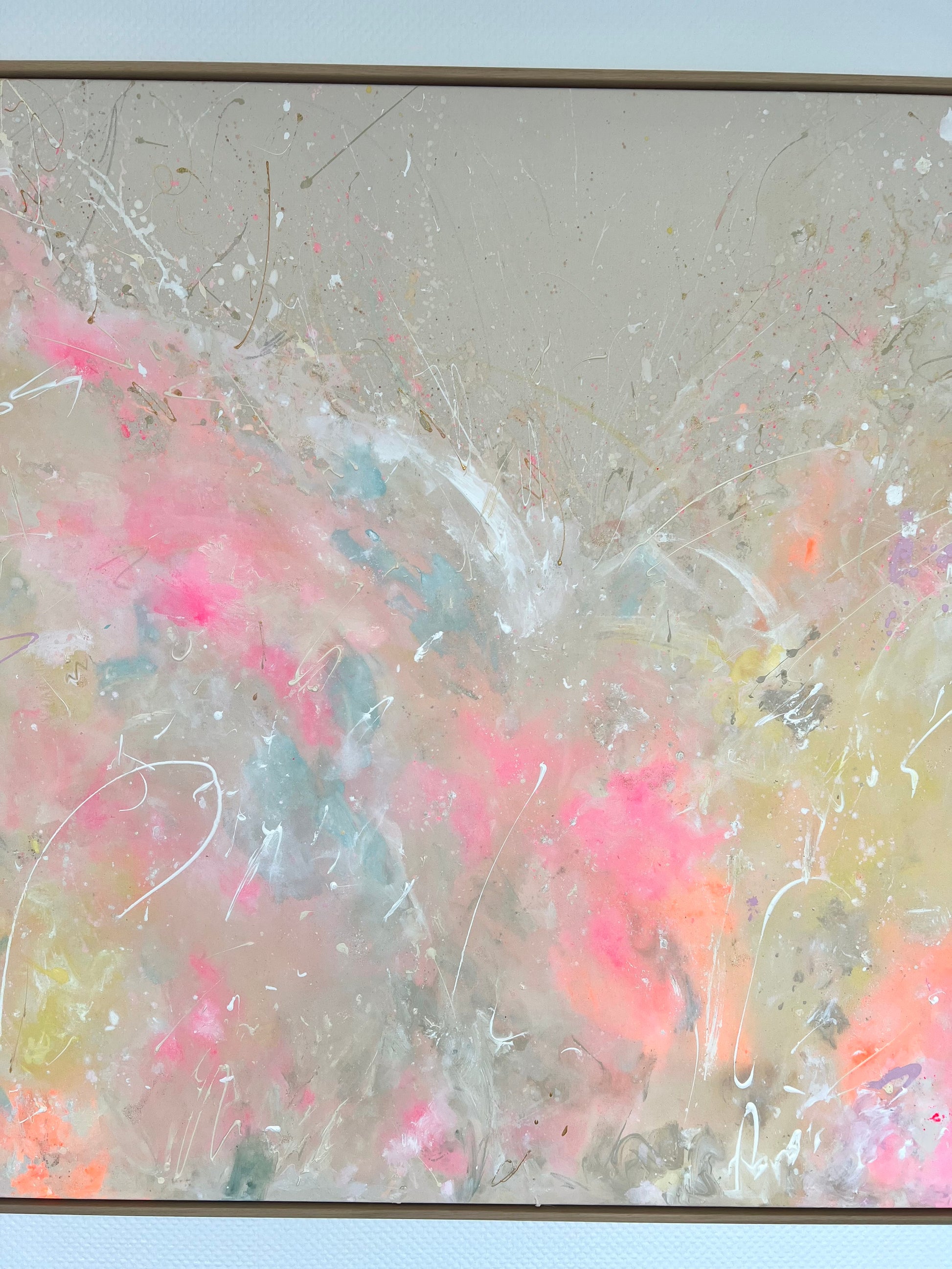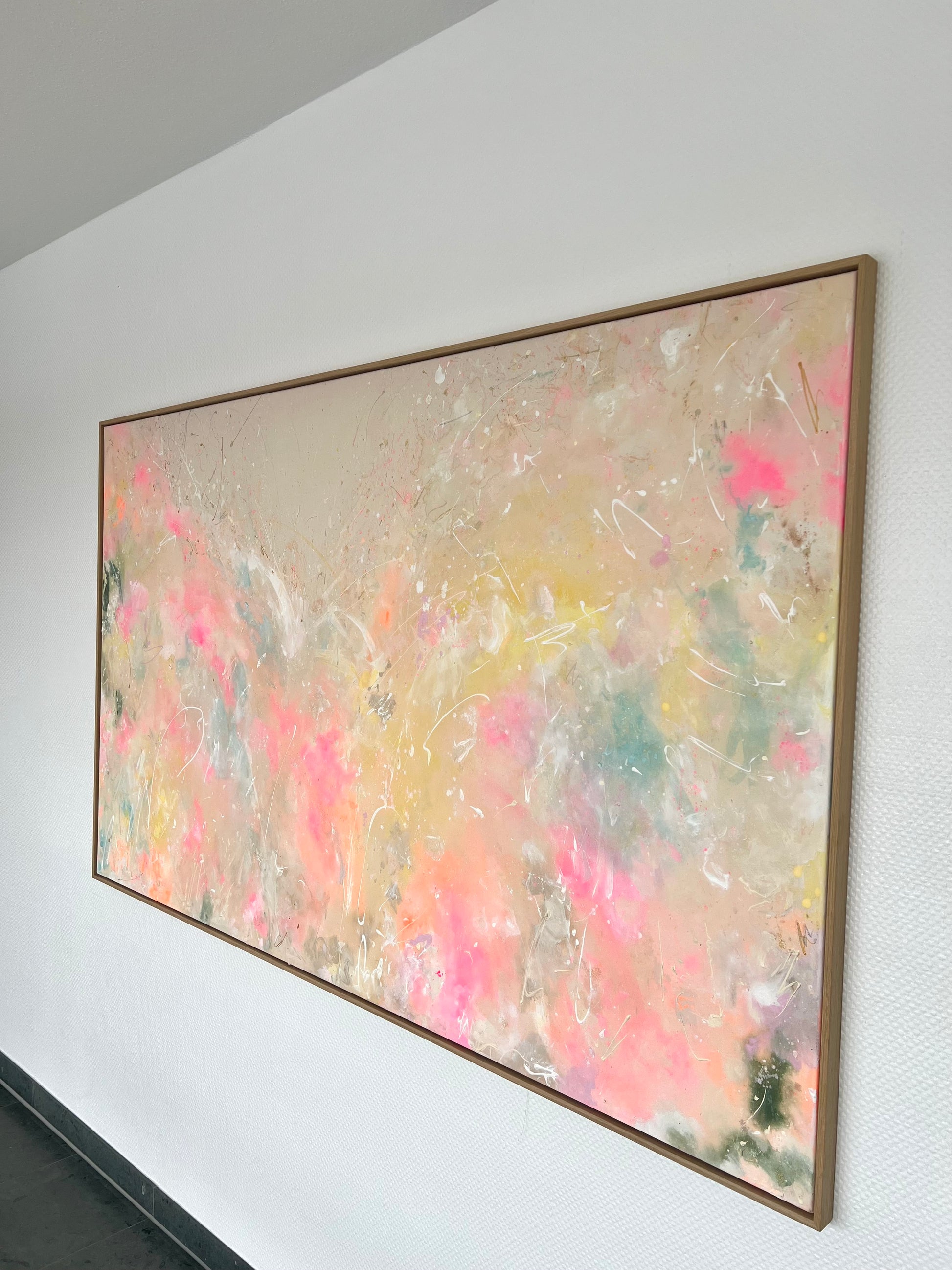 Handgemaltes Acrylgemälde auf Leinwand, inkl. Schattenfugenrahmen in Eichenholz oder in weiß