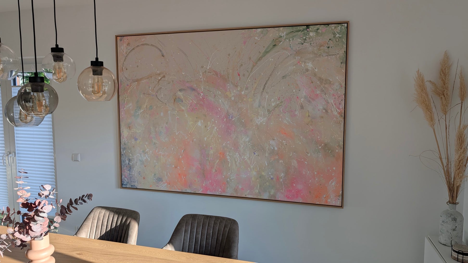 Danke für das Vorbeibringen von meinem Bild! Es passt super, an die vorgesehene Stelle. Dein gemaltes Bild sieht absolut fabelhaft aus. Die Leichtigkeit, die das Bild selbst ausstrahlt, ist es so schön wärmend und gleichzeitig übertragend.