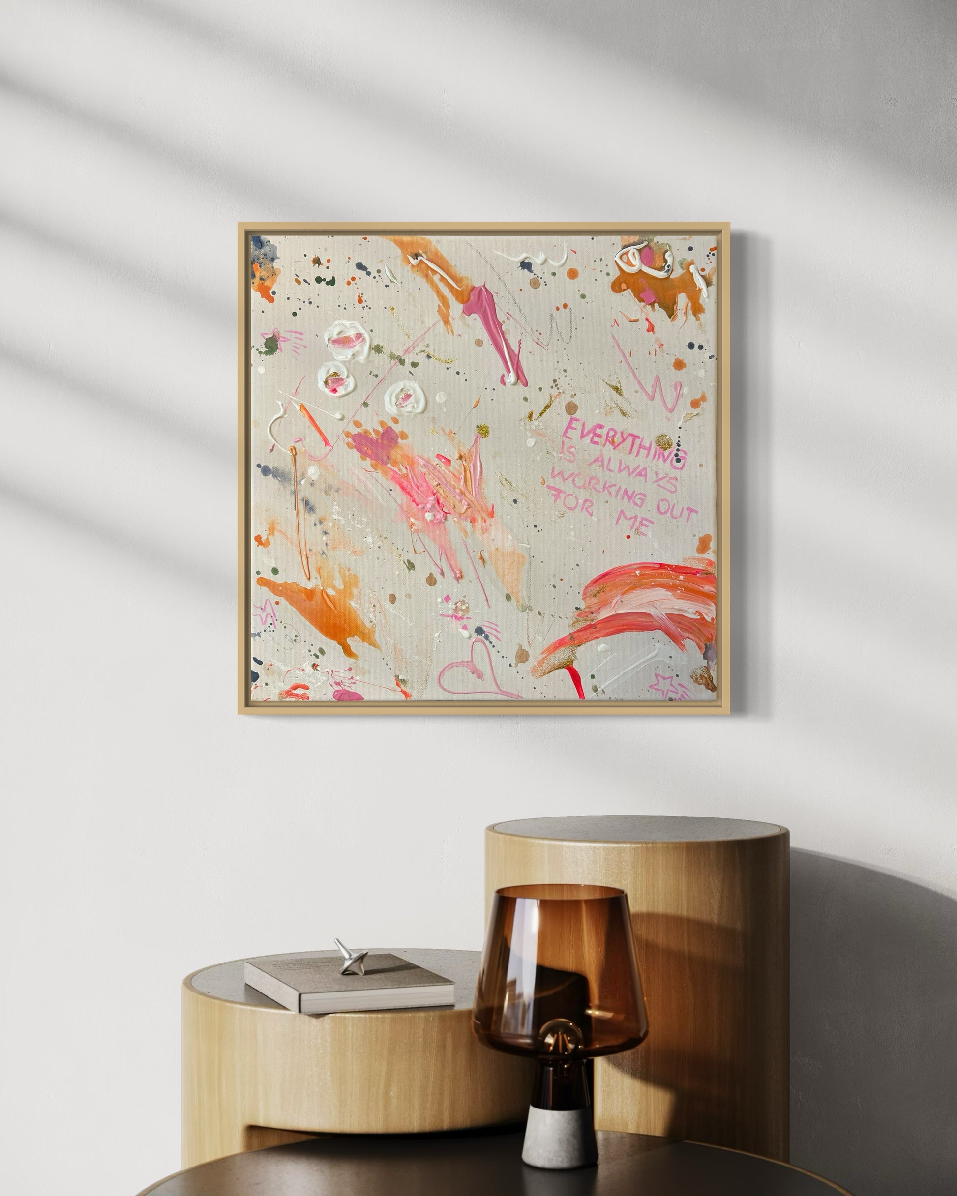 Handgemaltes Acrylgemälde auf Leinwand, inkl. Schattenfugenrahmen in Lindenholz