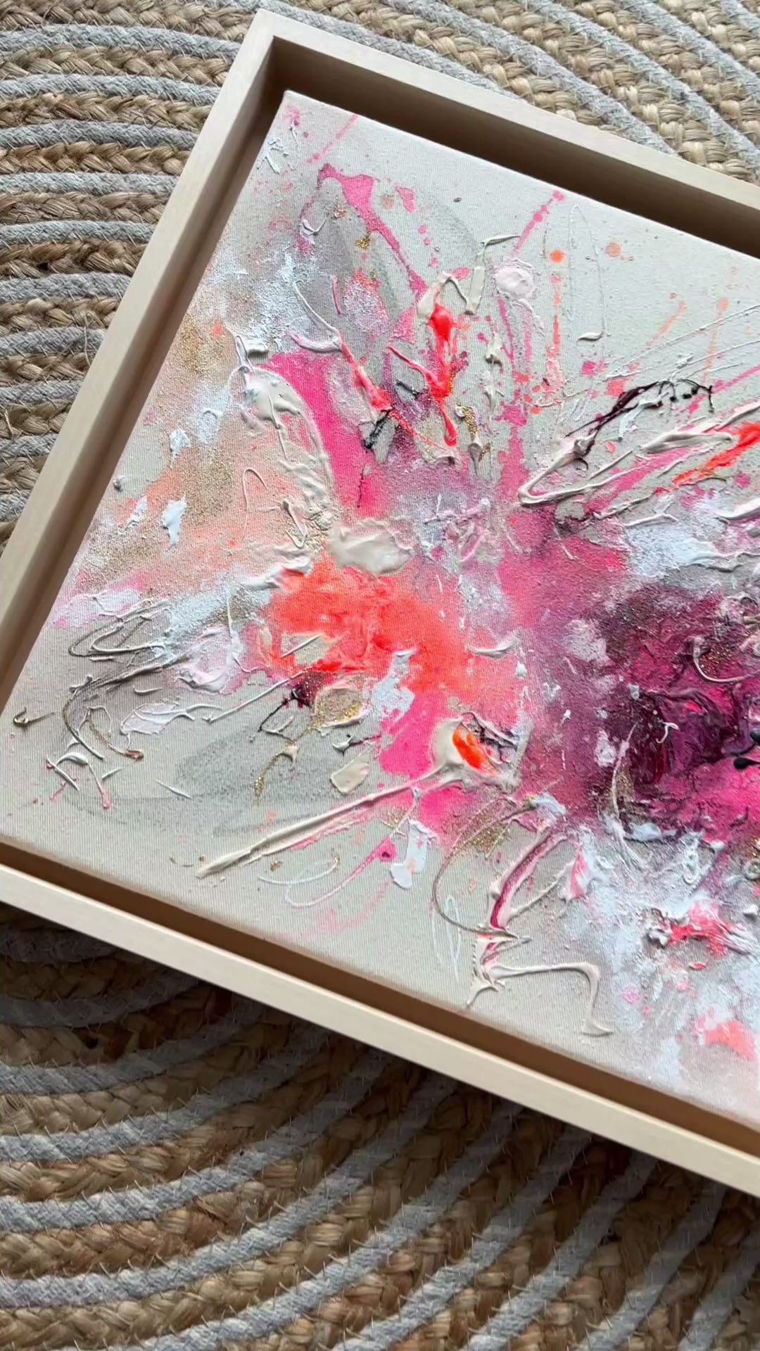 Handgemaltes Acrylgemälde auf Leinwand, inkl. Schattenfugenrahmen aus Lindenholz