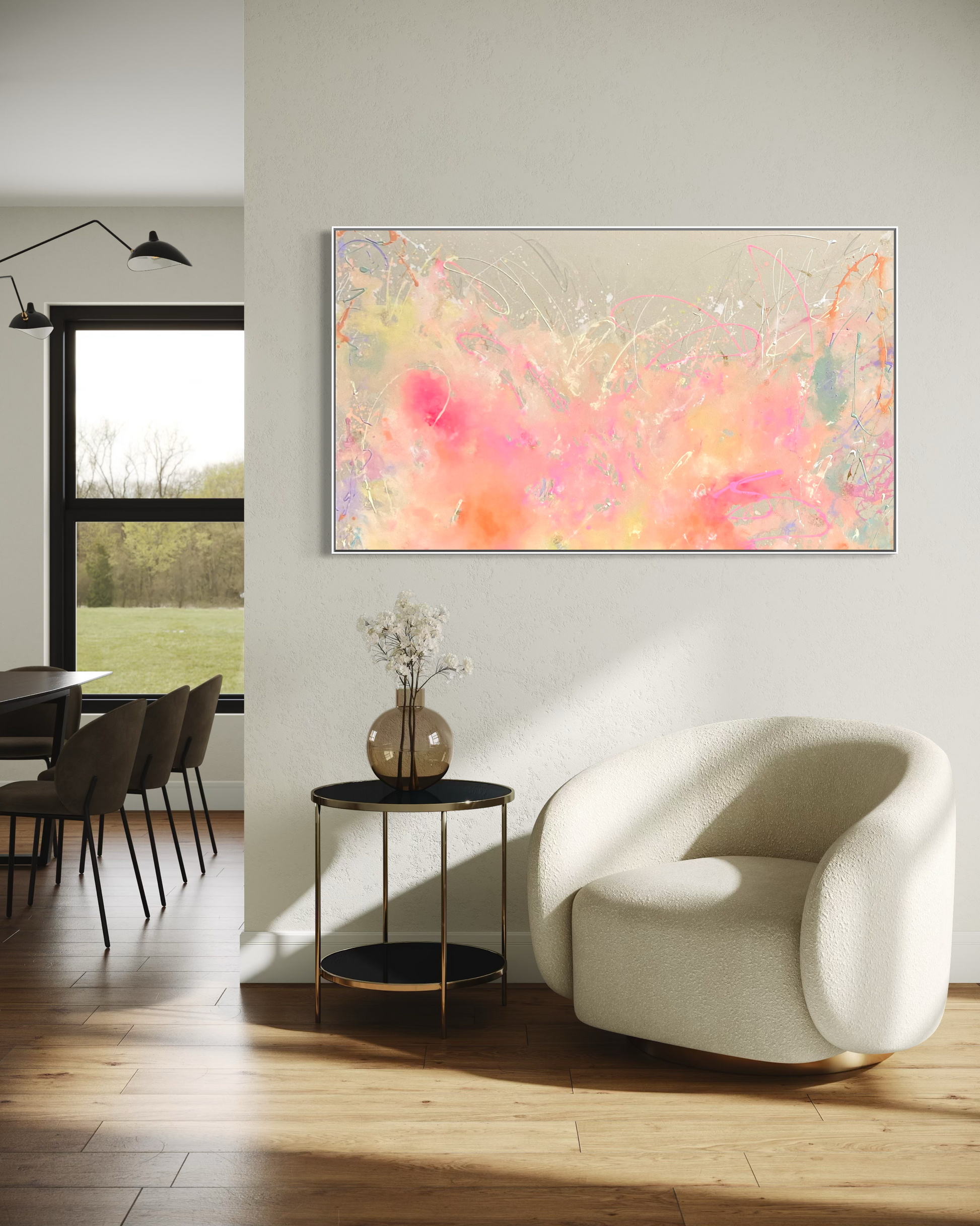 Auf Wunsch füge ich das Kunstwerk auch digital in deinen Raum ein. Sende mir dafür gerne eine Nachricht mit einem Foto aus deinen Räumlichkeiten zu.