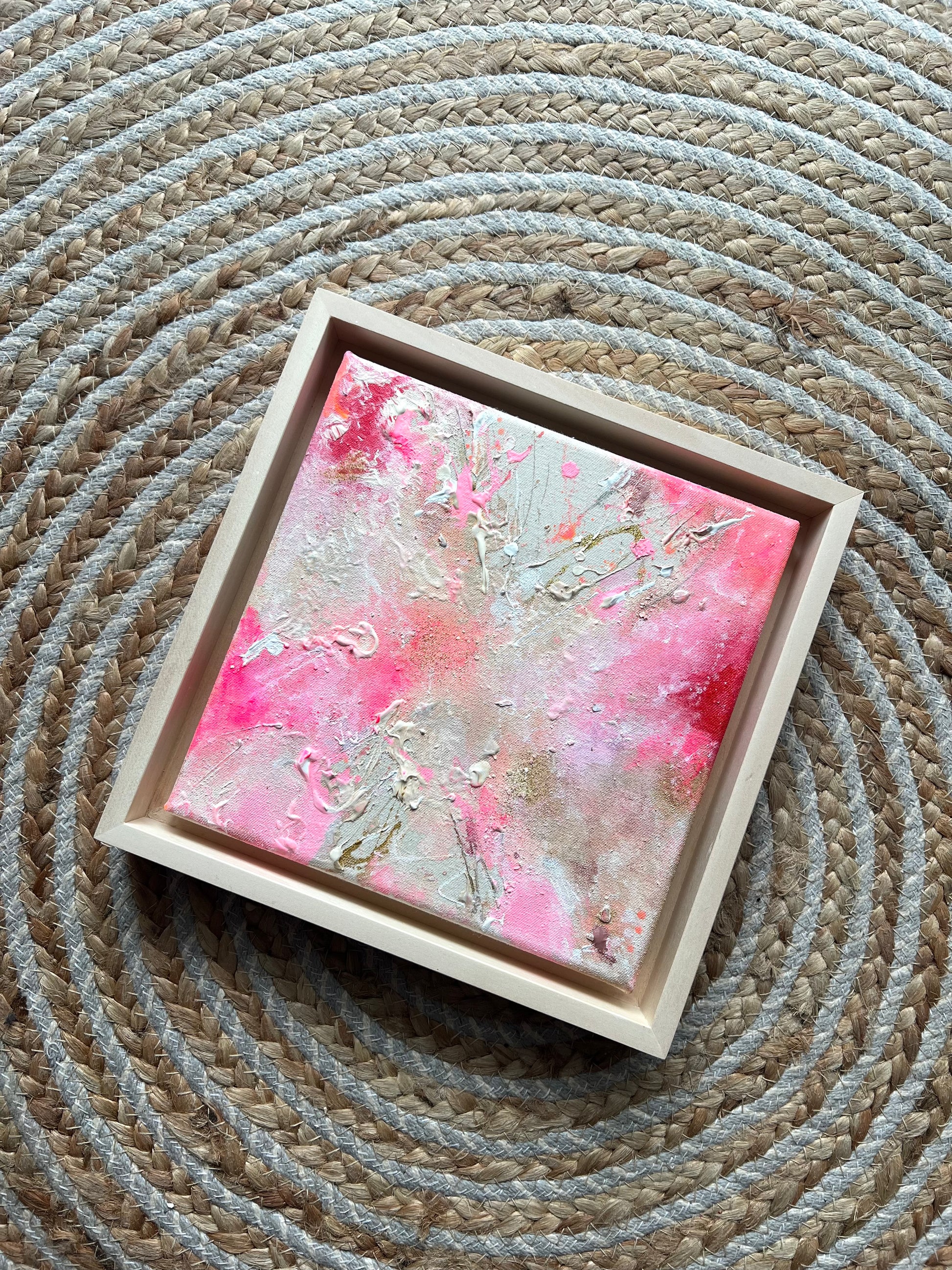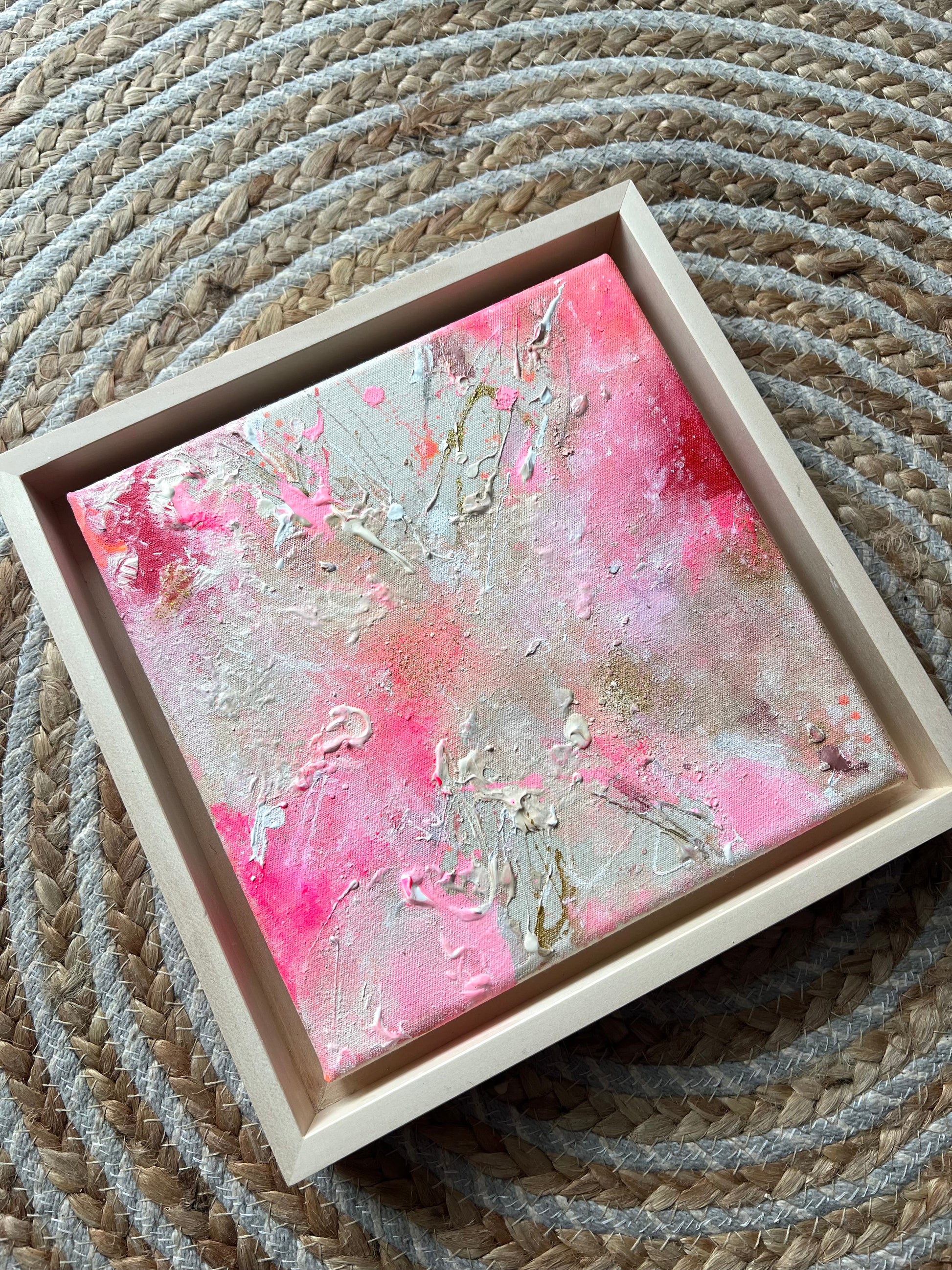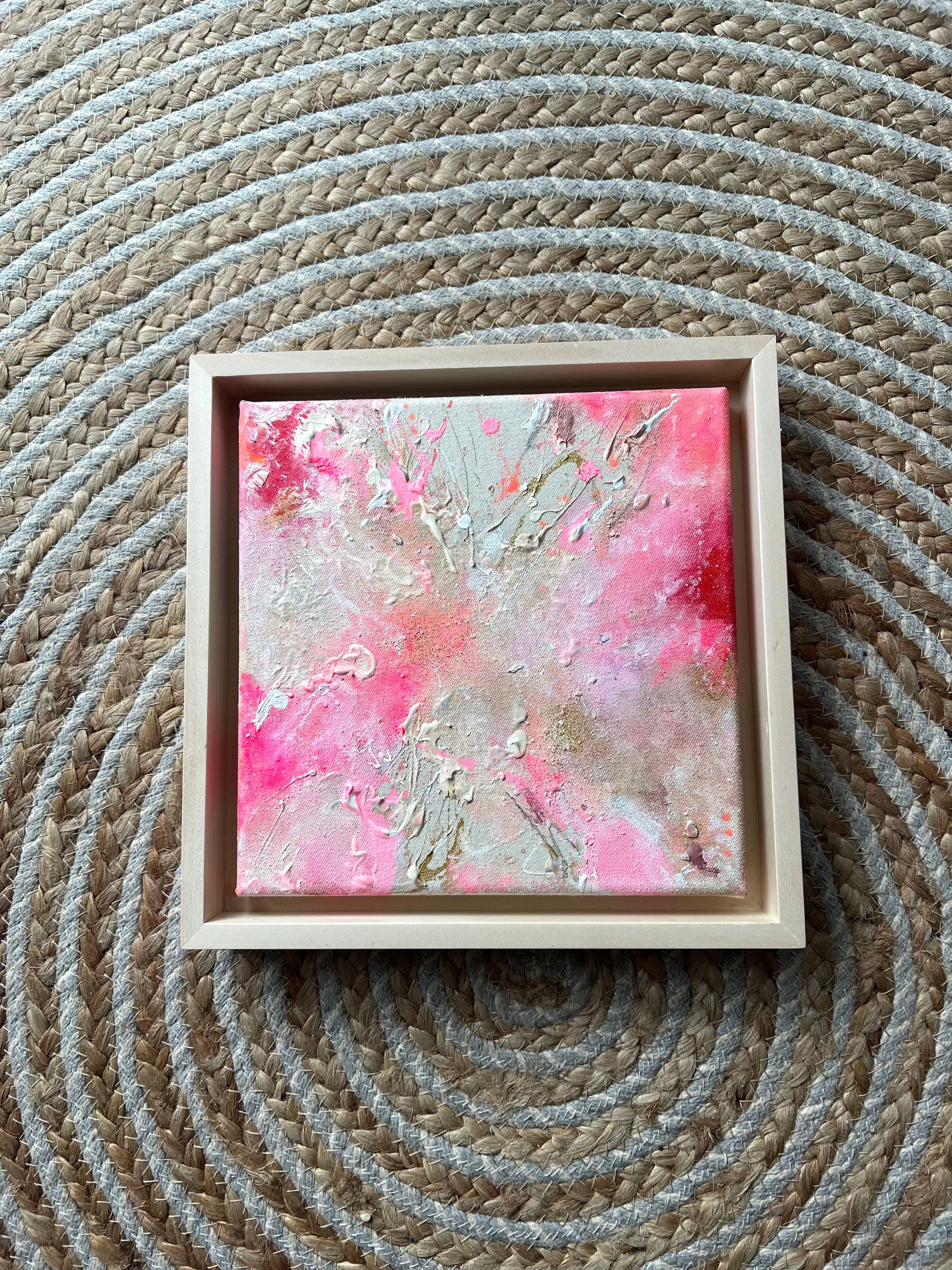 Handgemaltes Acrylgemälde auf Leinwand, inkl. Schattenfugenrahmen aus Lindenholz