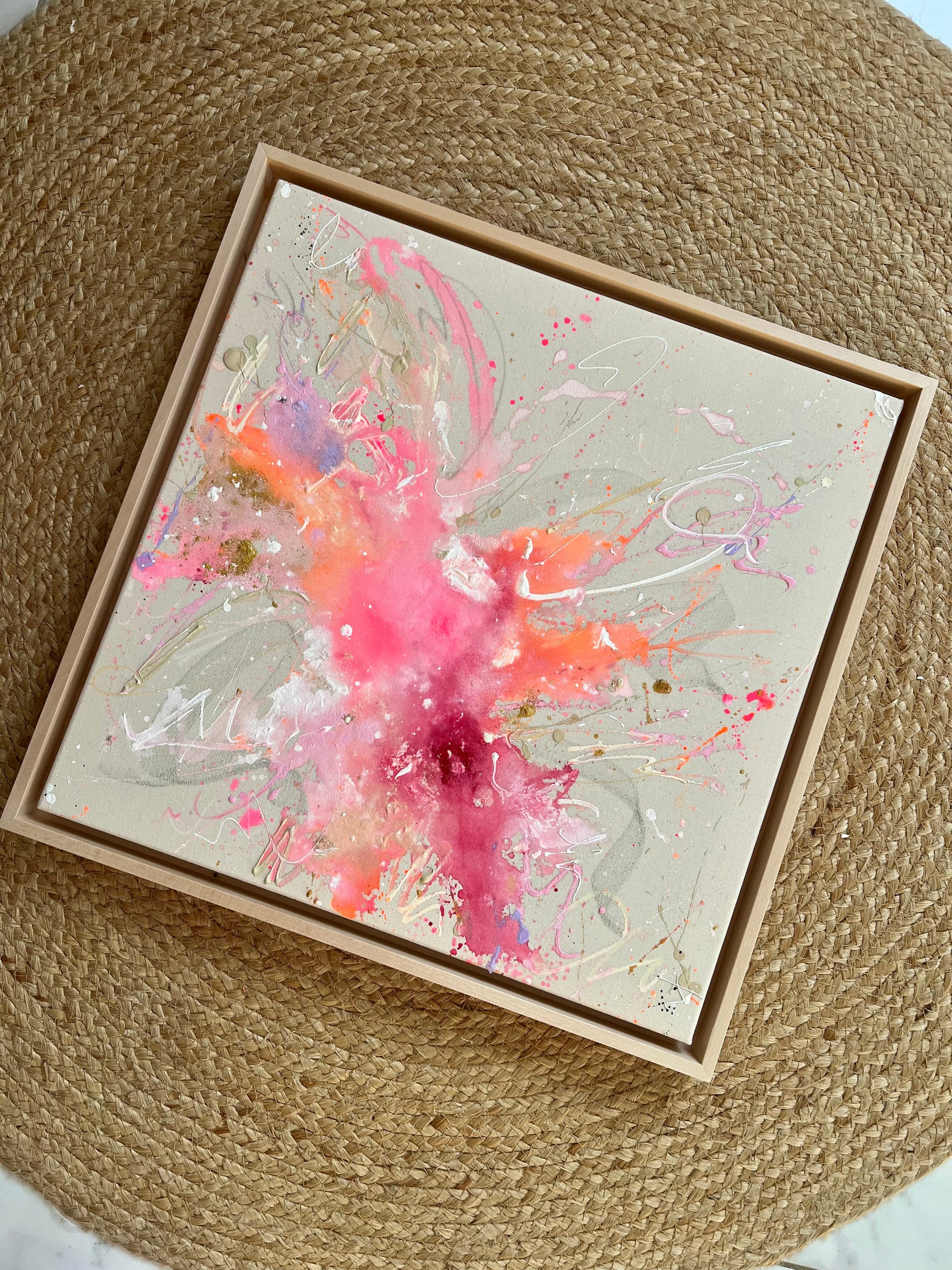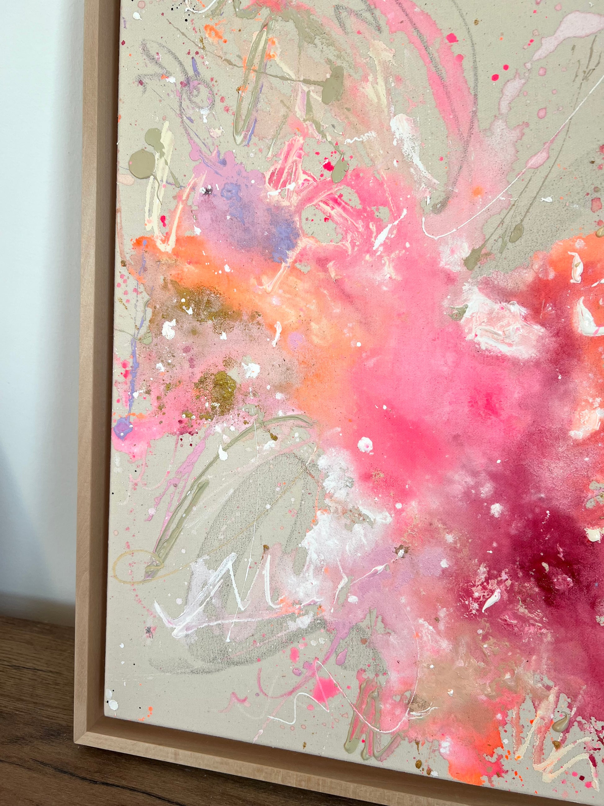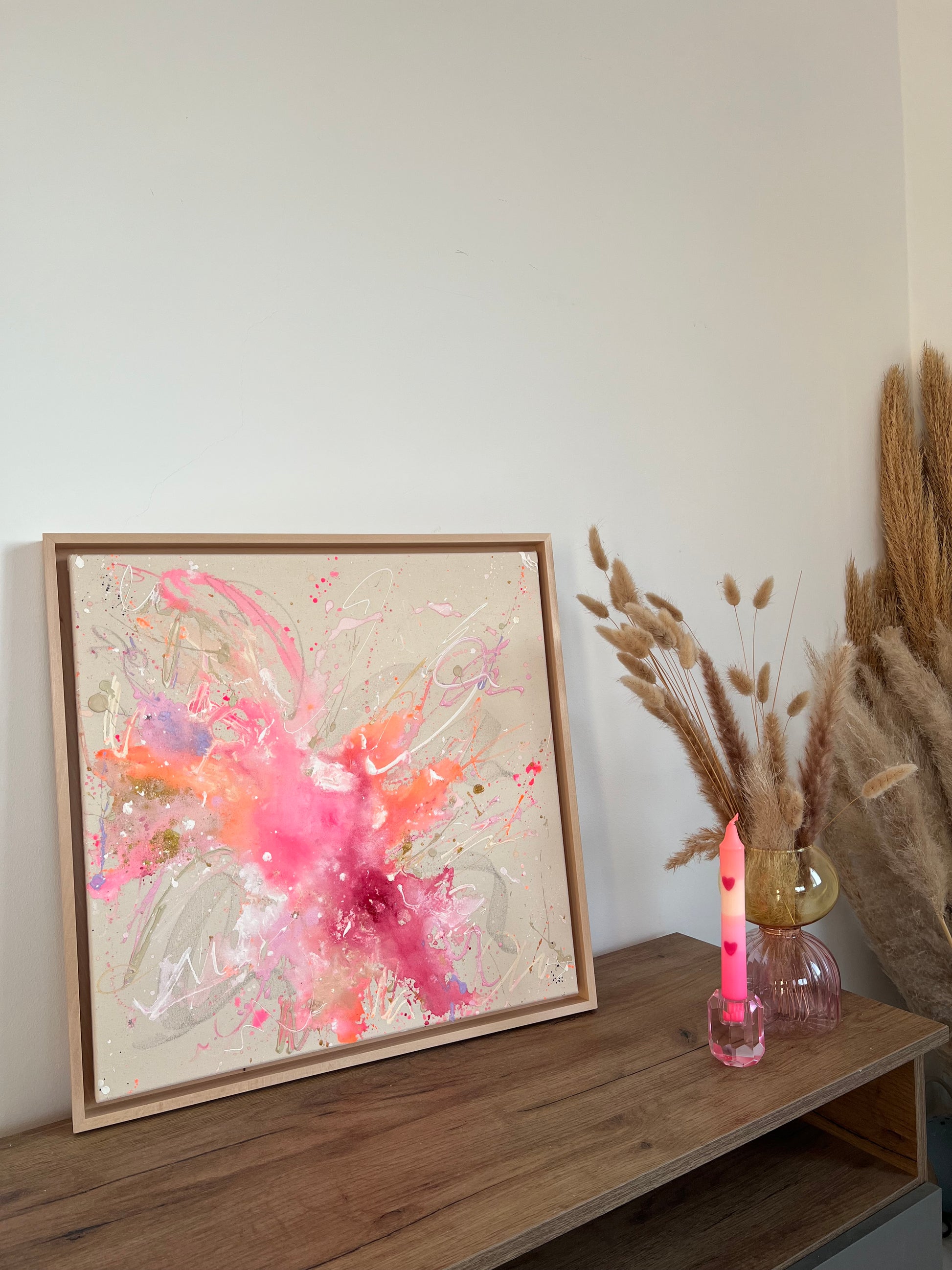 Handgemaltes Acrylgemälde auf Leinwand, inkl. Schattenfugenrahmen aus Lindenholz