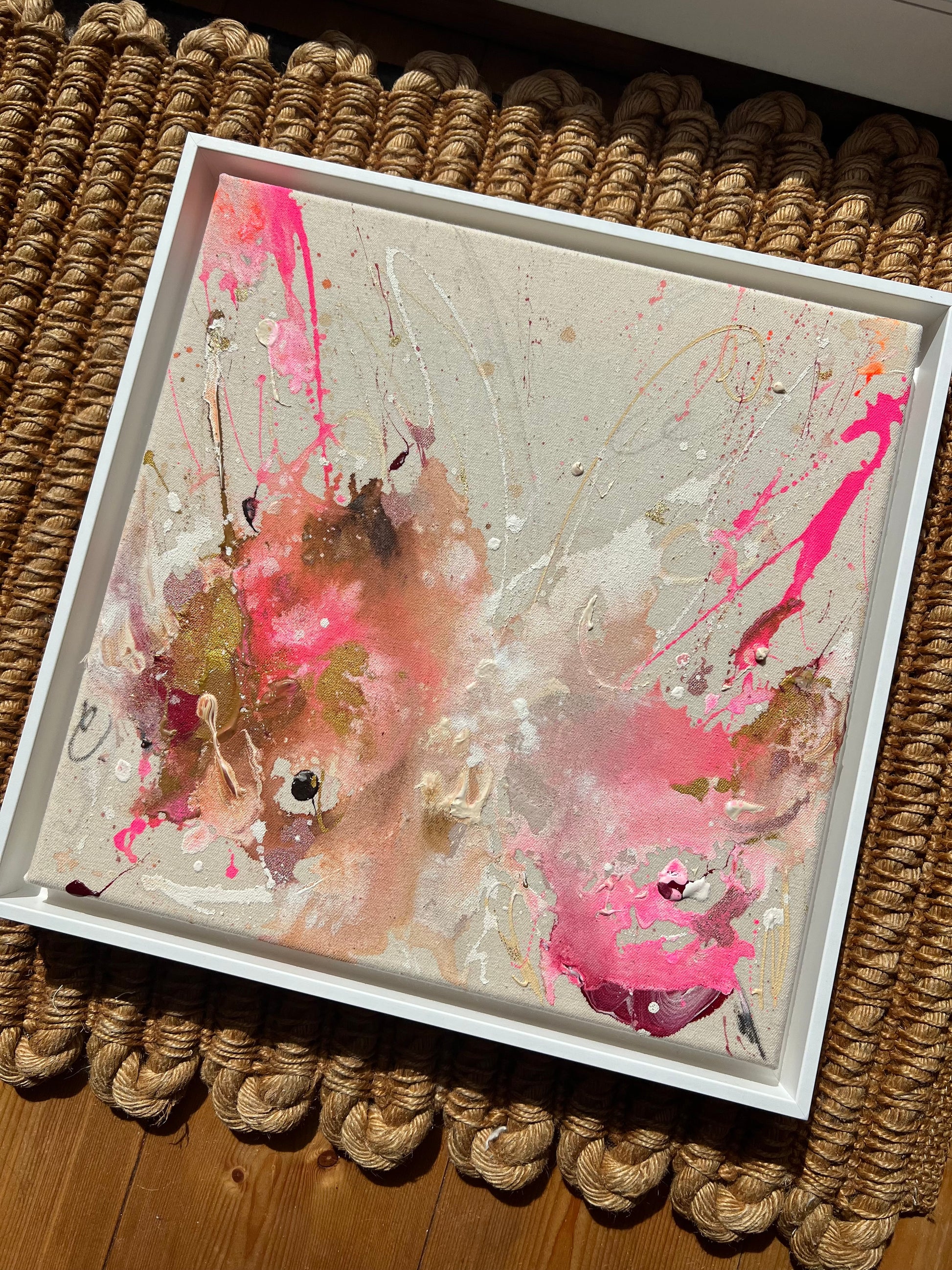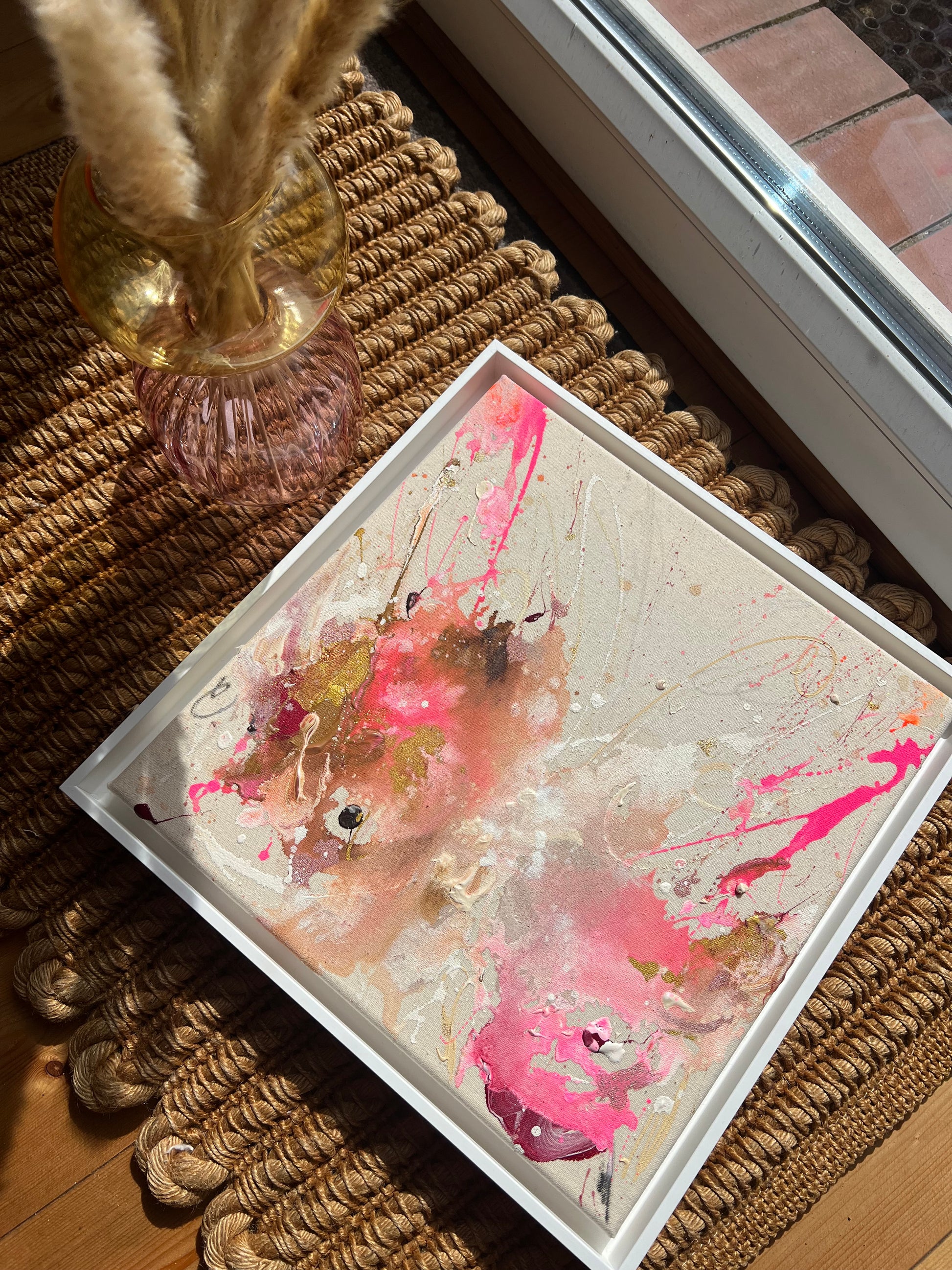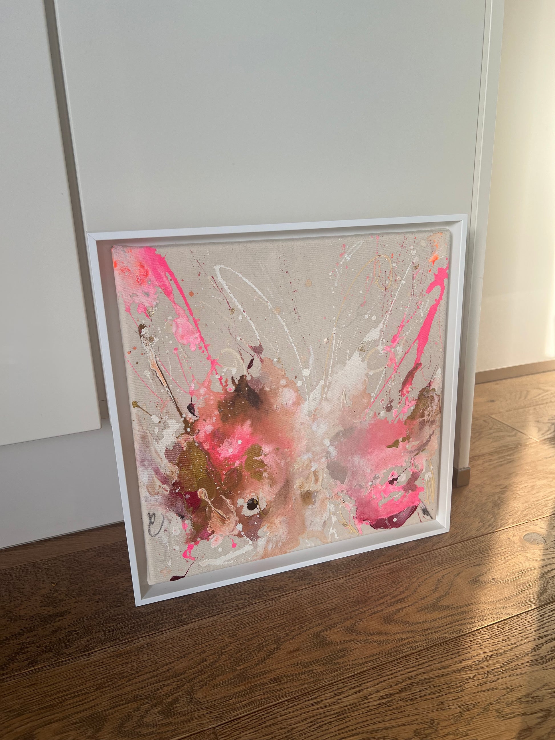 Handgemaltes Acrylgemälde auf Leinwand, inkl. Schattenfugenrahmen in weiß