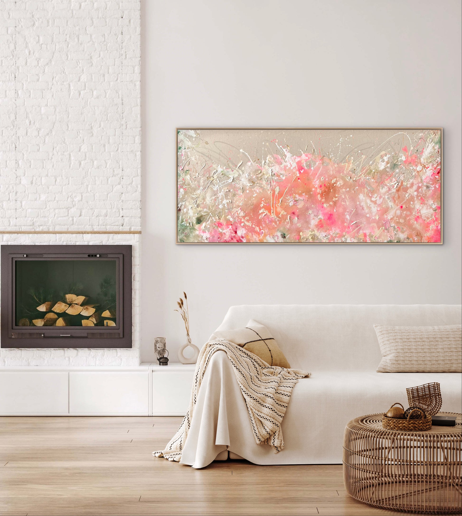 Handgemaltes Acrylgemälde auf Leinwand, inkl. Schattenfugenrahmen in Eichenholz oder in weiß