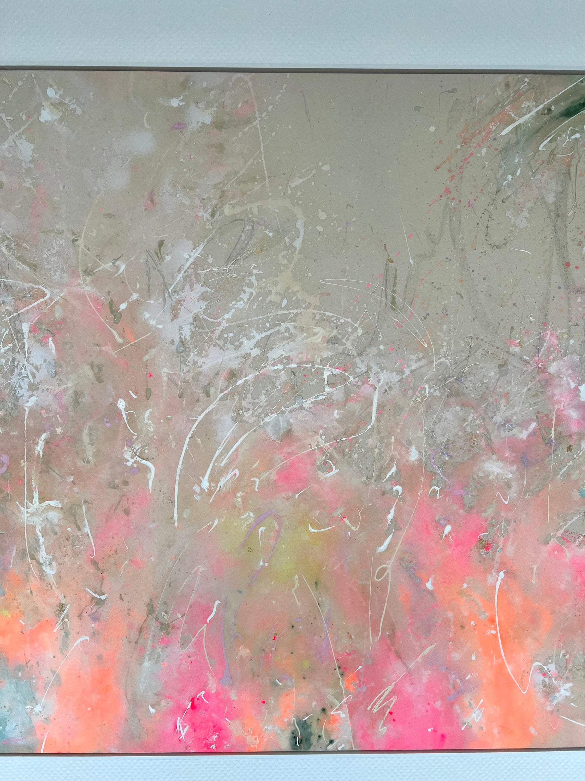 Handgemaltes Acrylgemälde auf Leinwand, inkl. Schattenfugenrahmen in Eichenholz oder in weiß