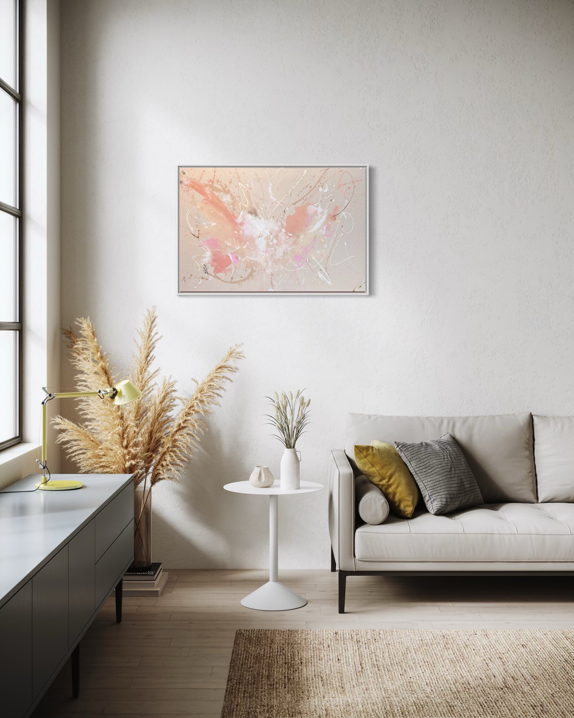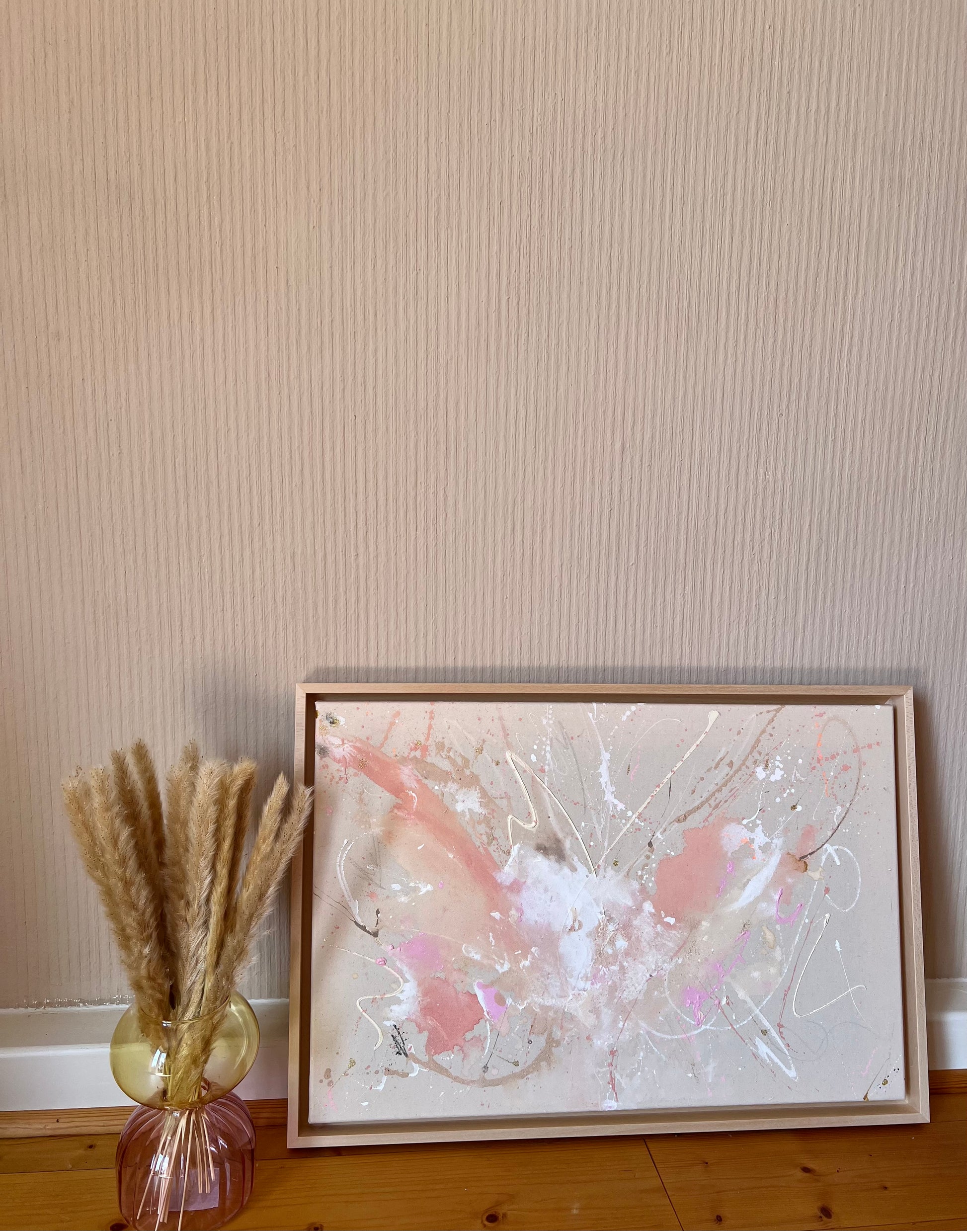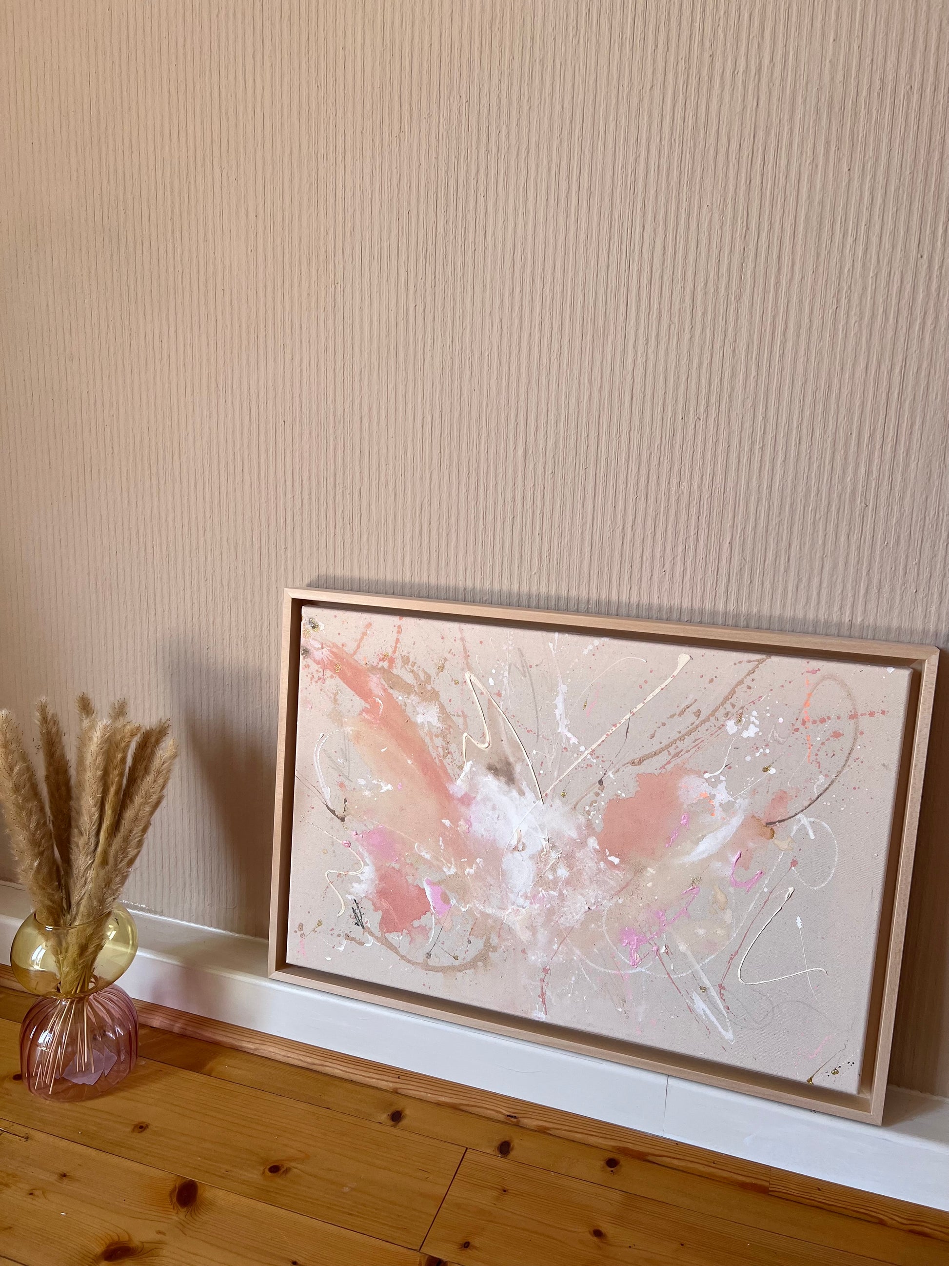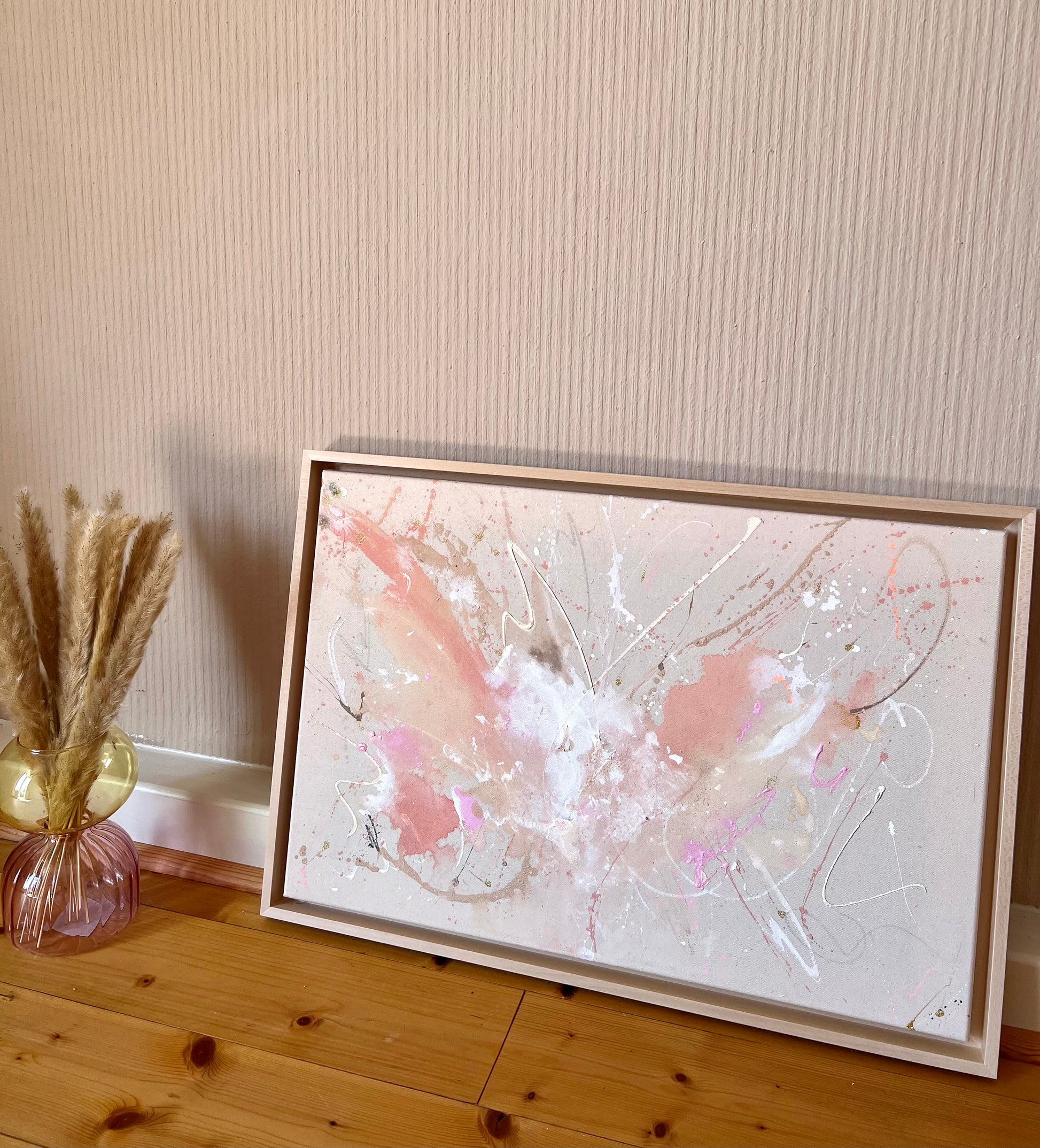 Handgemaltes Acrylgemälde auf Leinwand, inkl. Schattenfugenrahmen aus Lindenholz oder in weiß