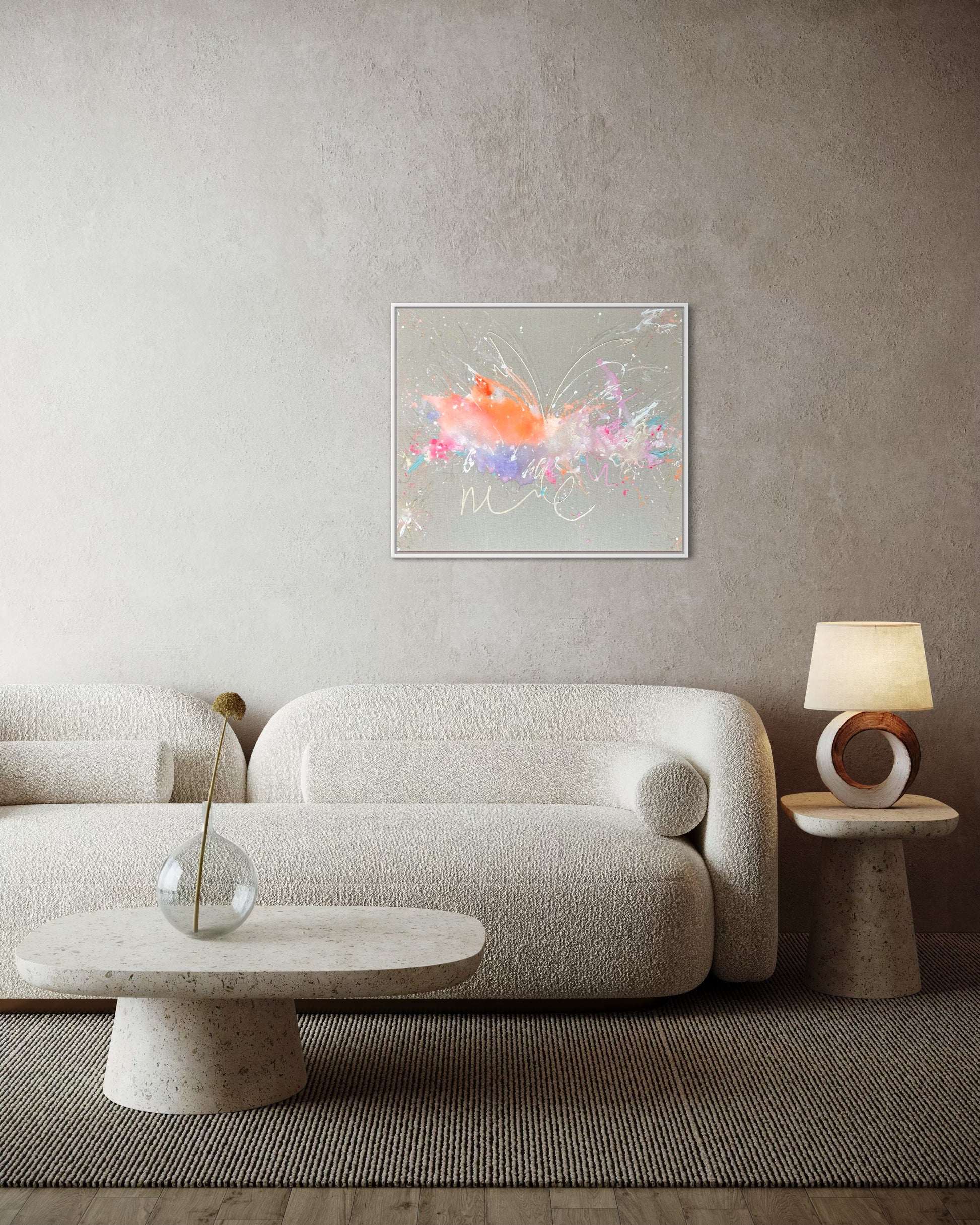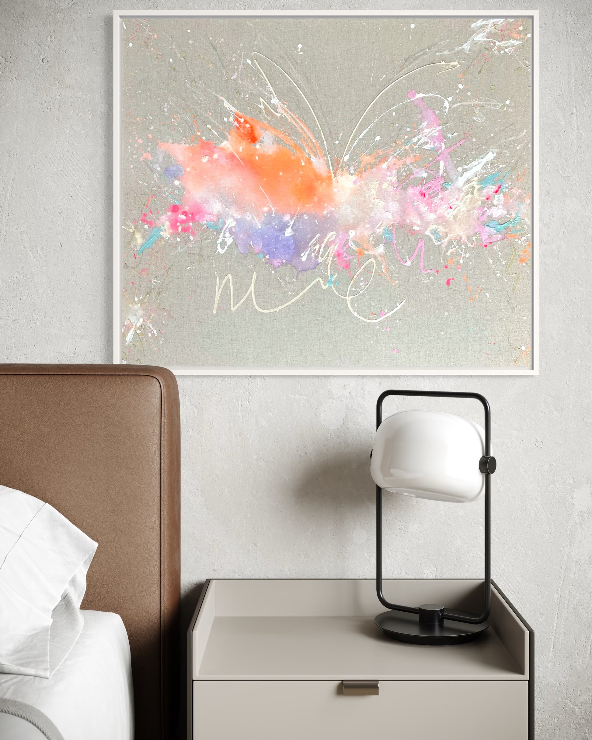 Handgemaltes Acrylgemälde auf Leinwand, inkl. Schattenfugenrahmen in weiß