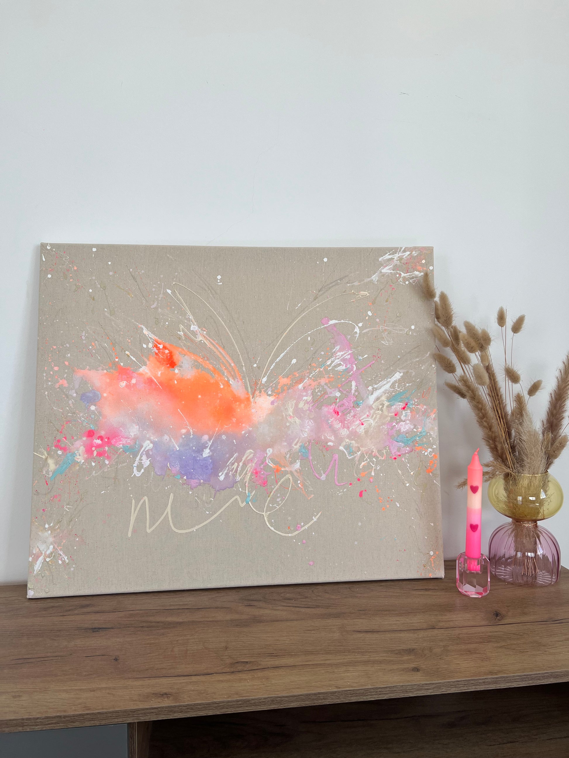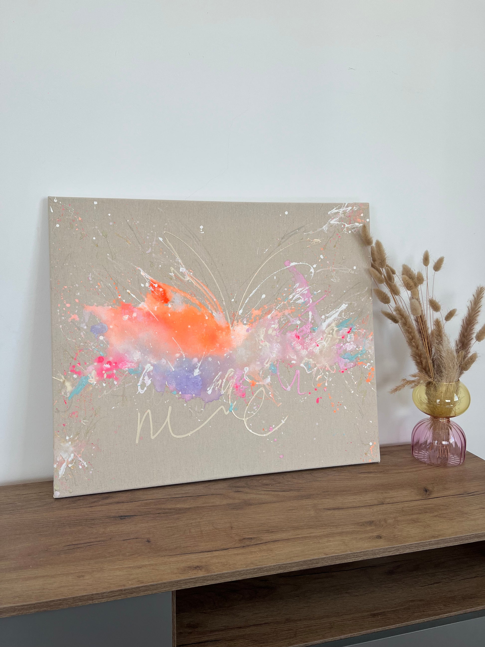 Danke für das Vorbeibringen von meinem Bild! Es passt super, an die vorgesehene Stelle. Dein gemaltes Bild sieht absolut fabelhaft aus. Die Leichtigkeit, die das Bild selbst ausstrahlt, ist es so schön wärmend und gleichzeitig übertragend.