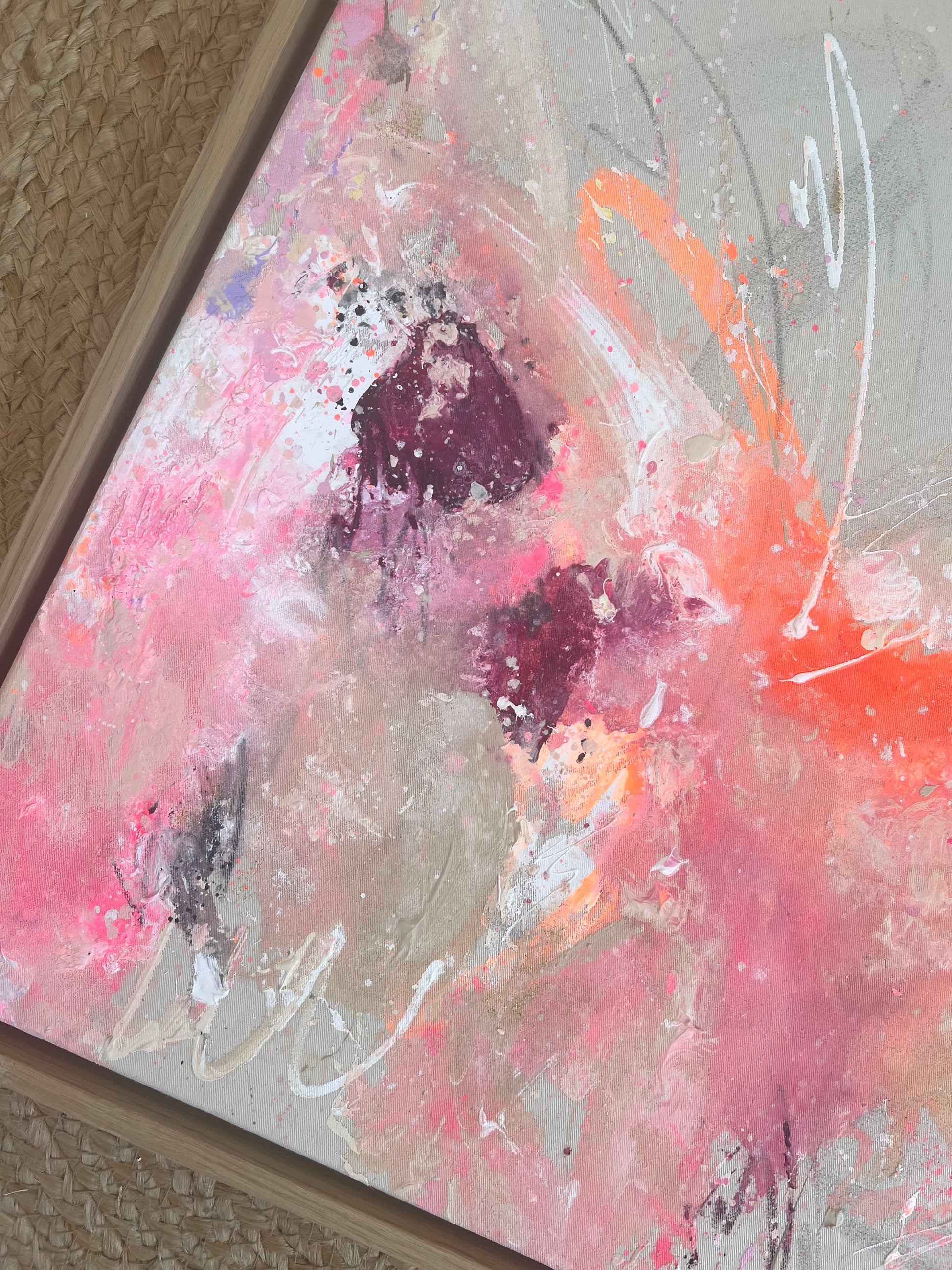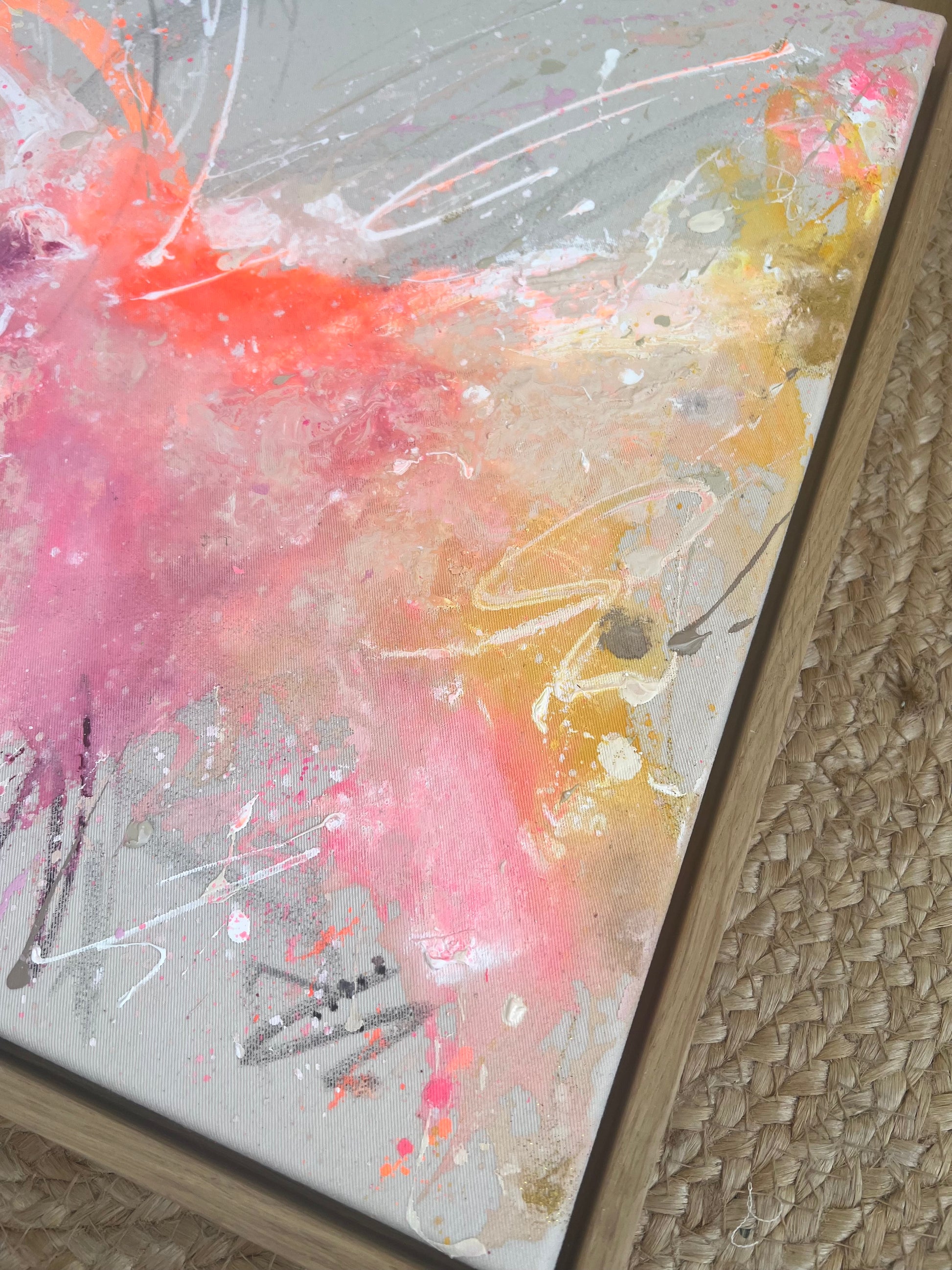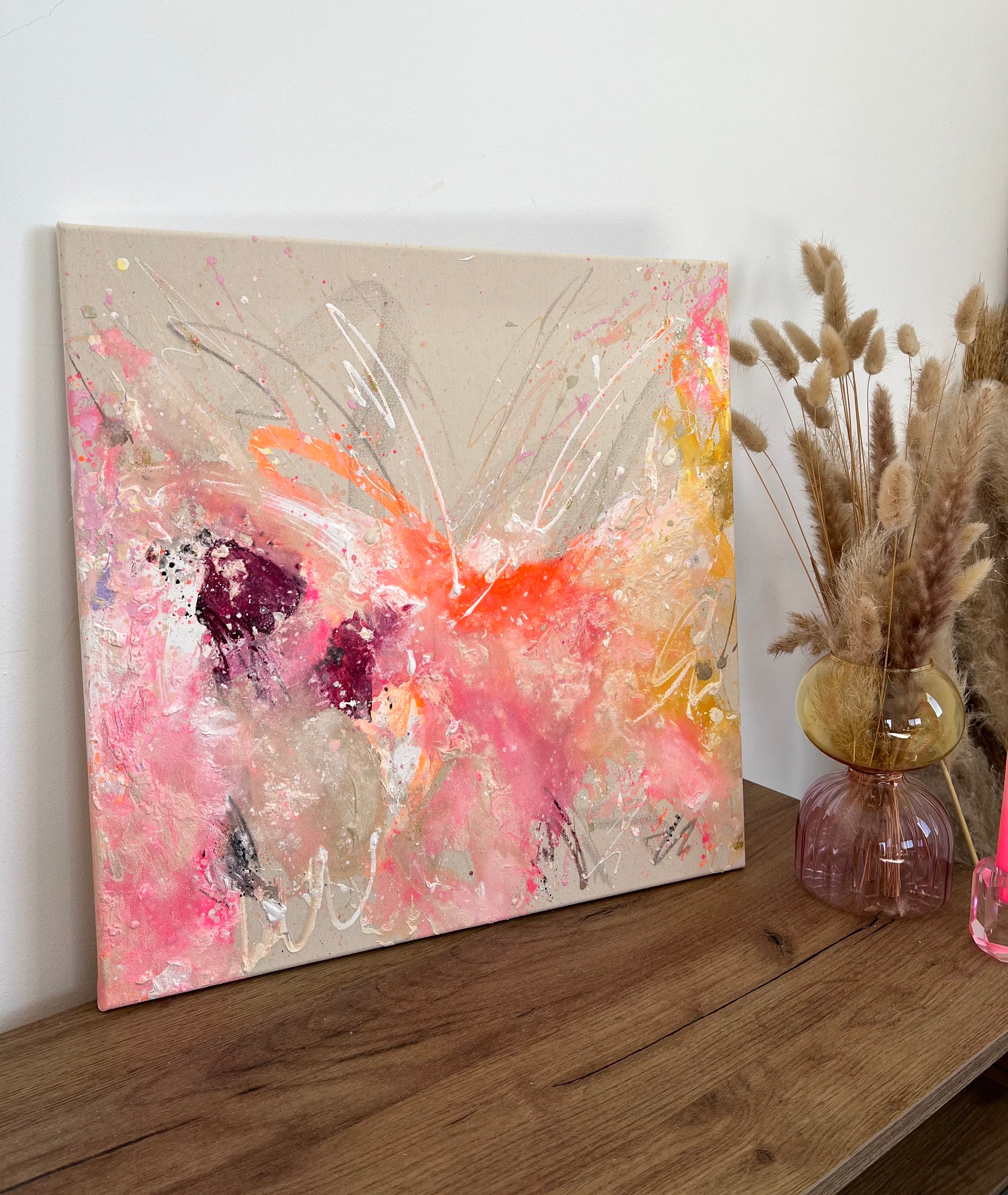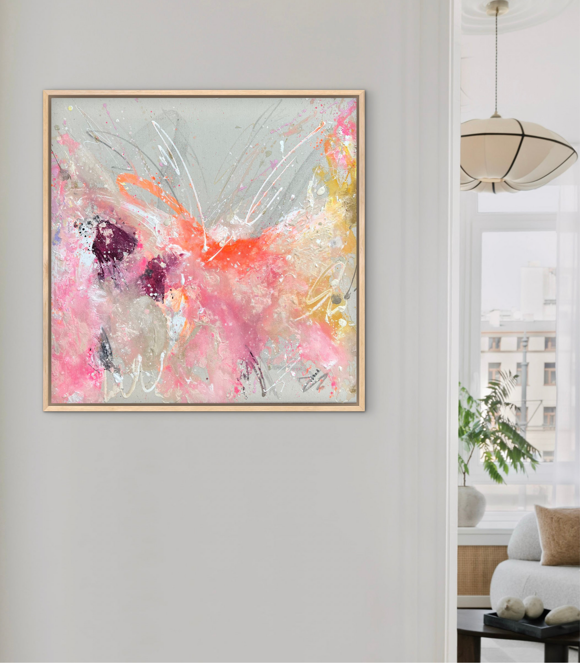 Handgemaltes Acrylgemälde auf Leinwand, inkl. Schattenfugenrahmen aus Lindenholz, Eichenholz oder in weiß