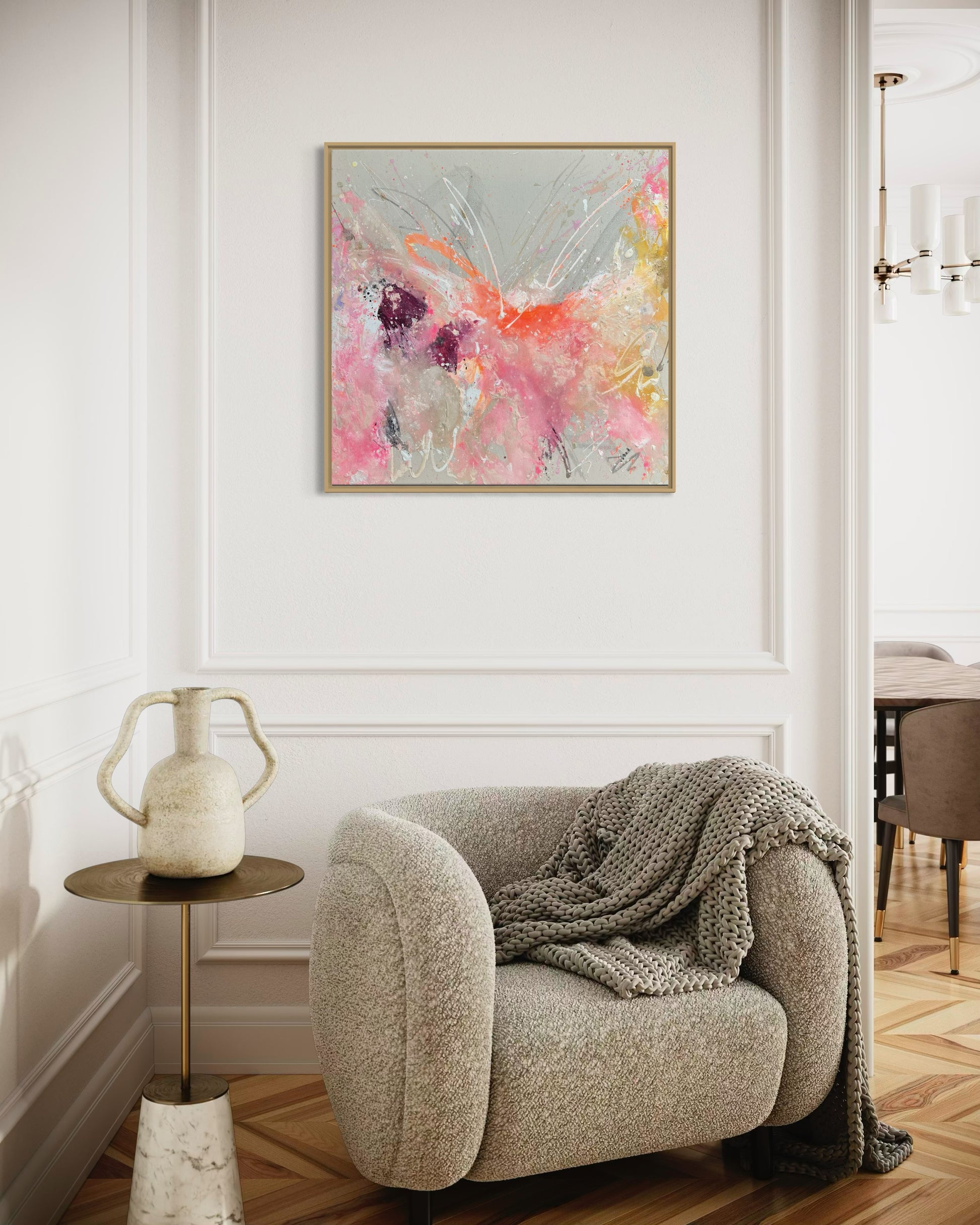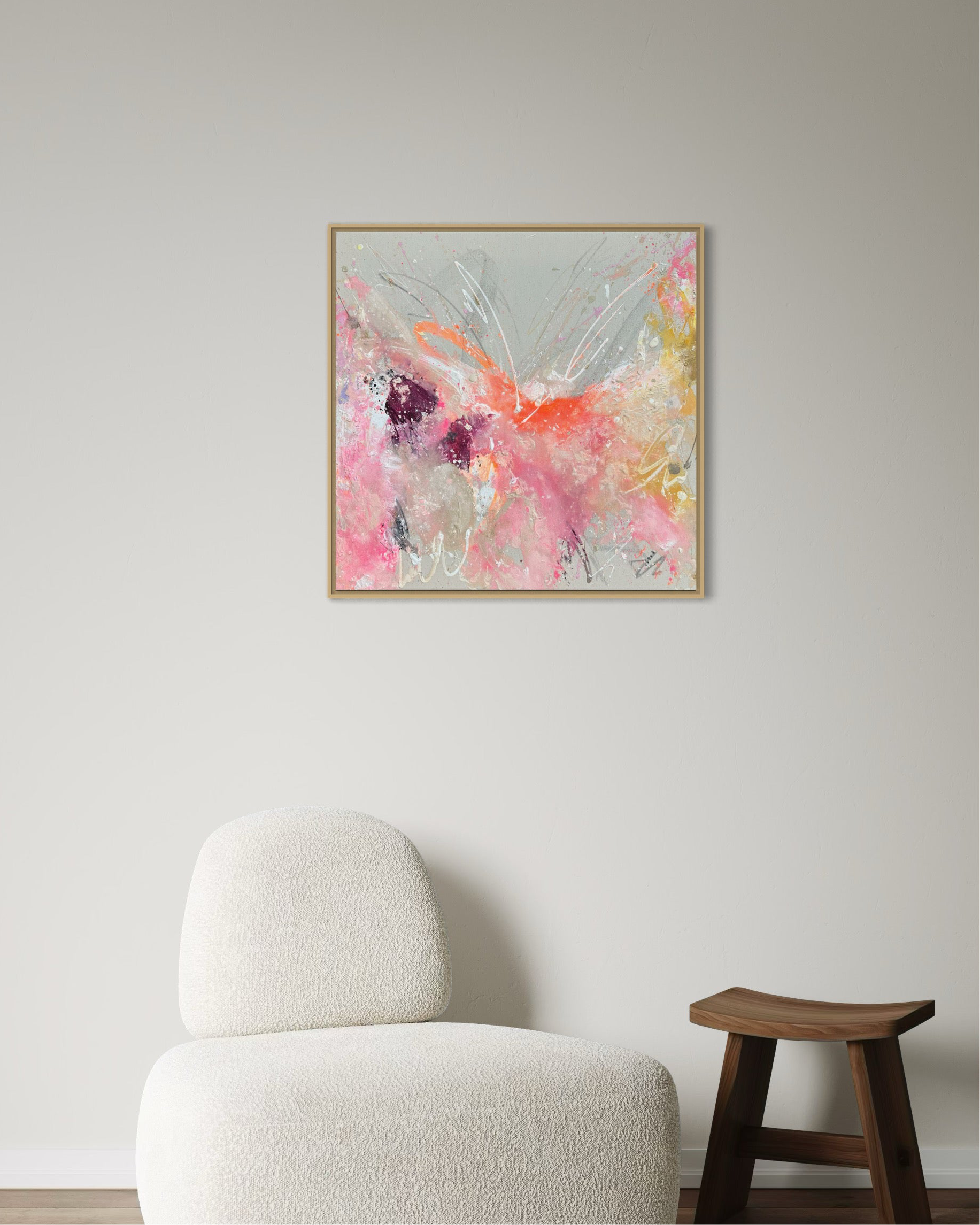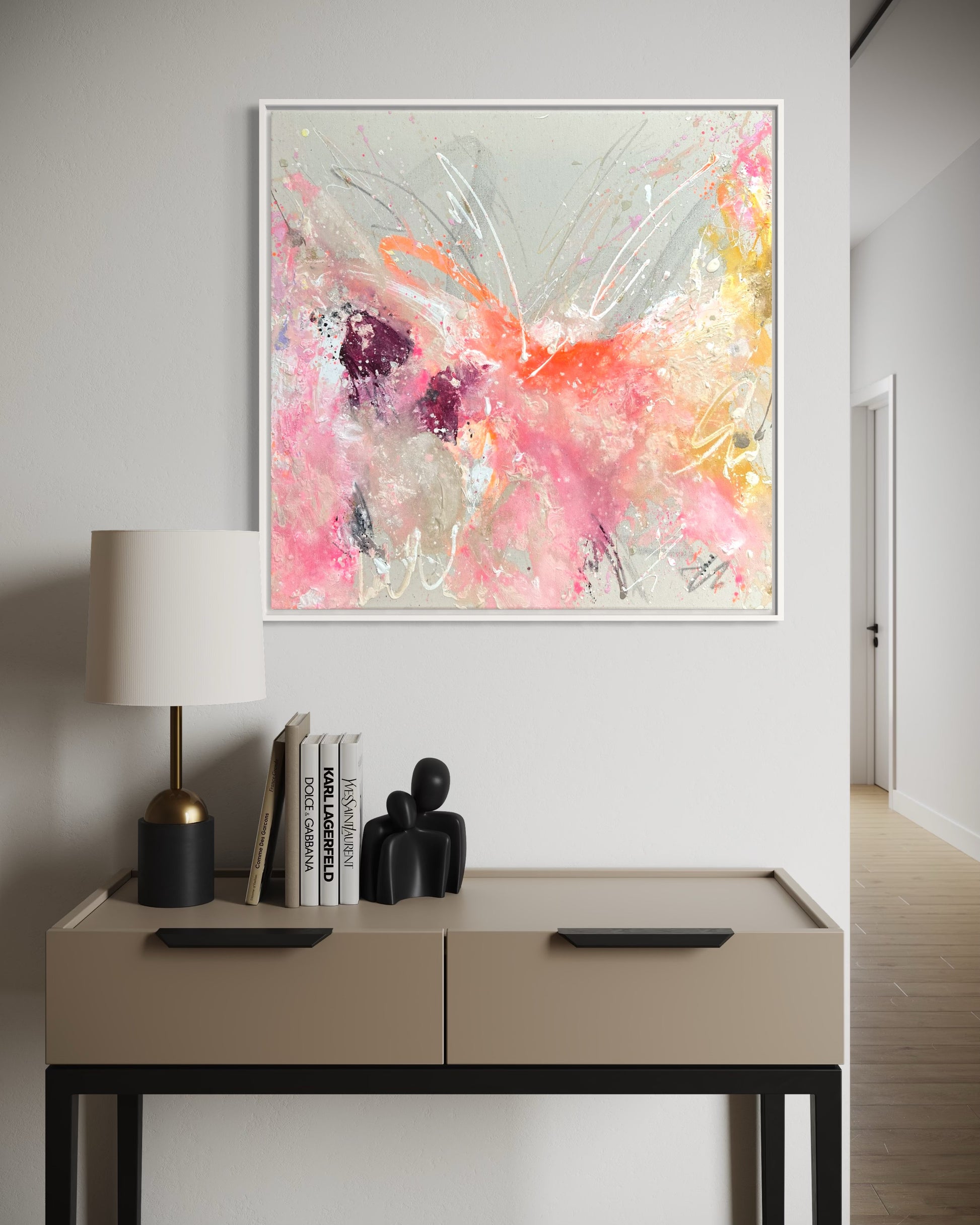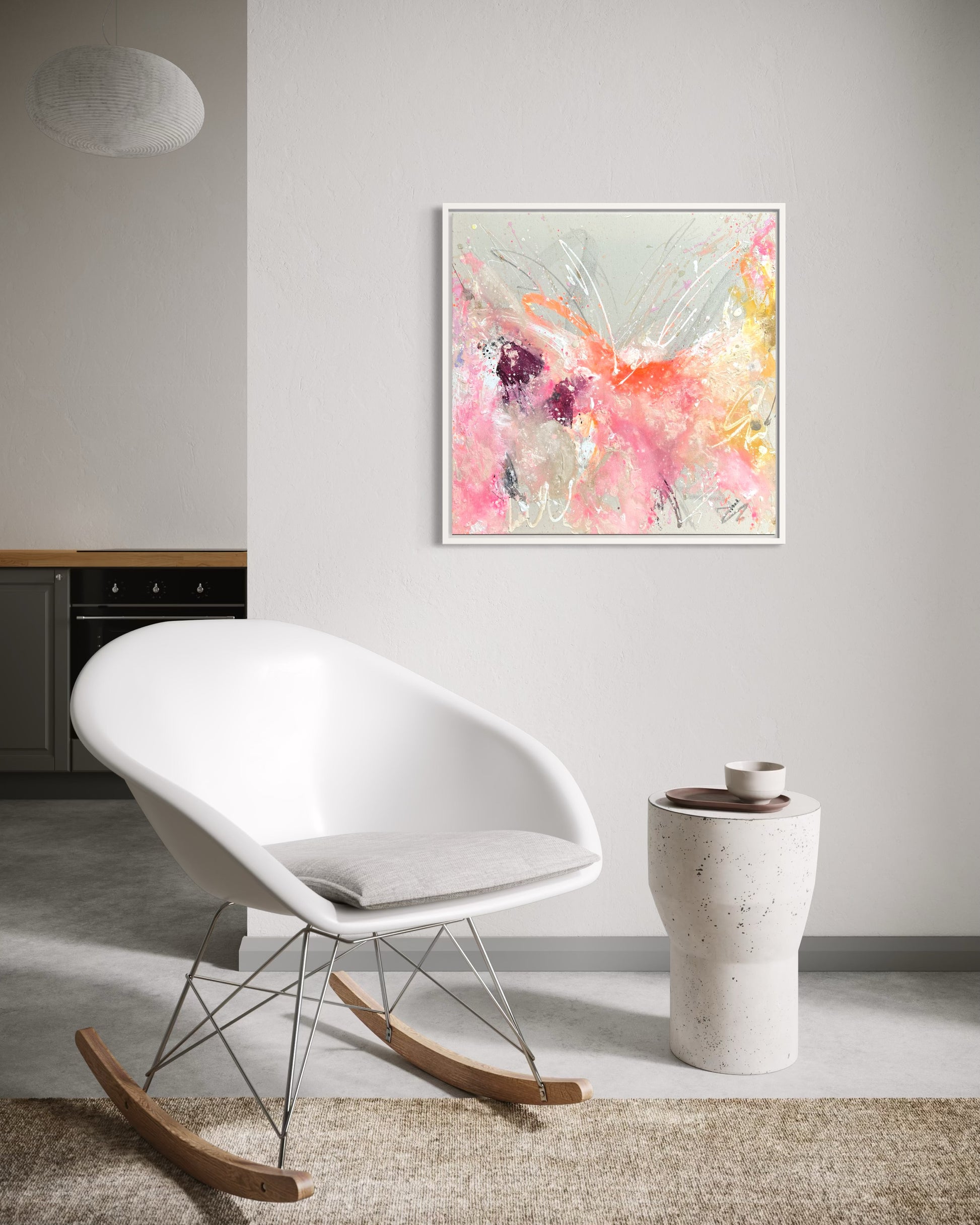 Handgemaltes Acrylgemälde auf Leinwand, inkl. Schattenfugenrahmen aus Lindenholz, Eichenholz oder in weiß