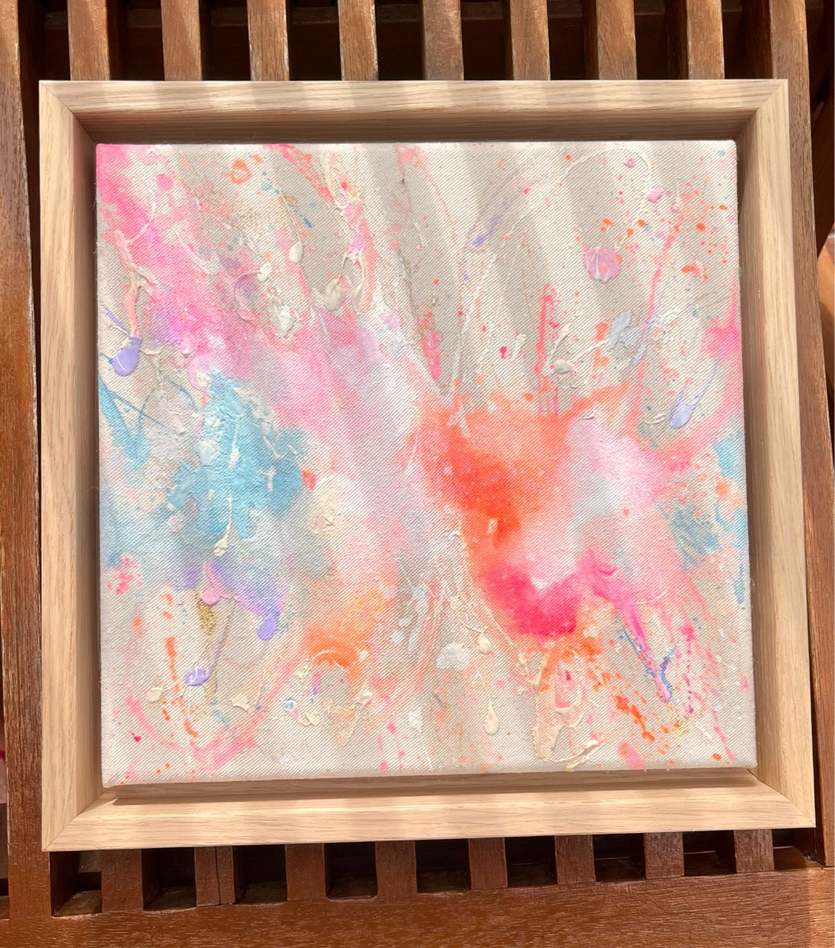Handgemaltes Acrylgemälde auf Leinwand, inkl. Schattenfugenrahmen in Eichenholz