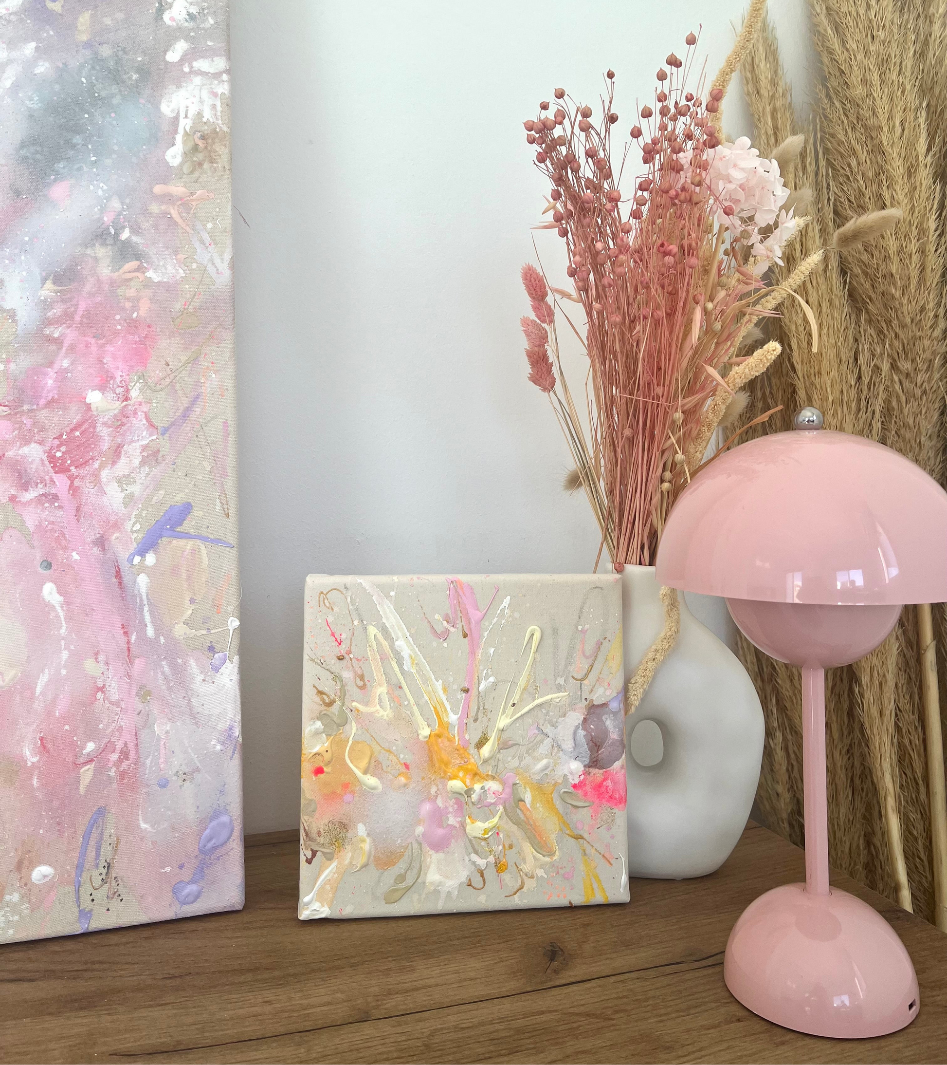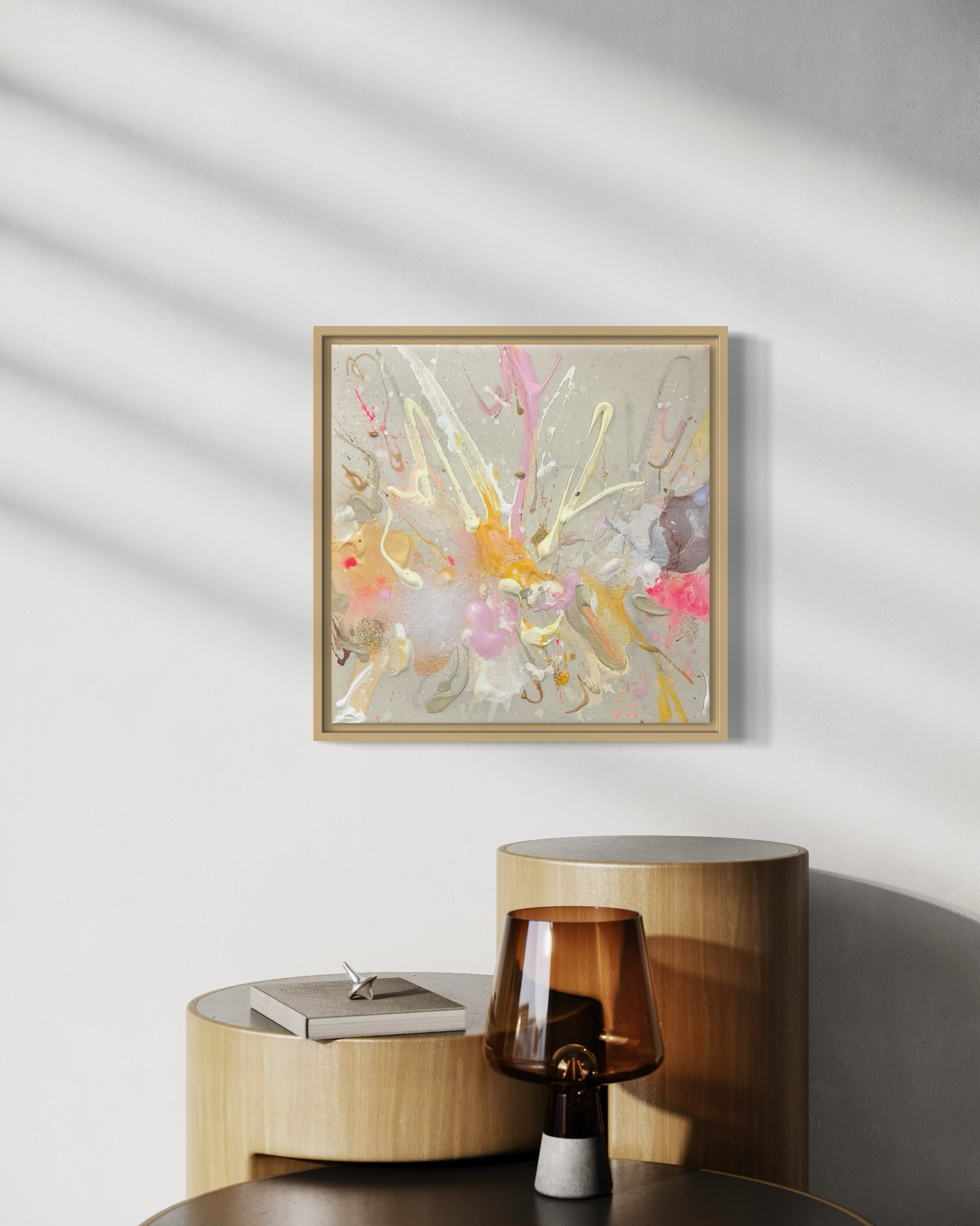Handgemaltes Acrylgemälde auf Leinwand inkl. Schattenfugenrahmen in Lindenholz
